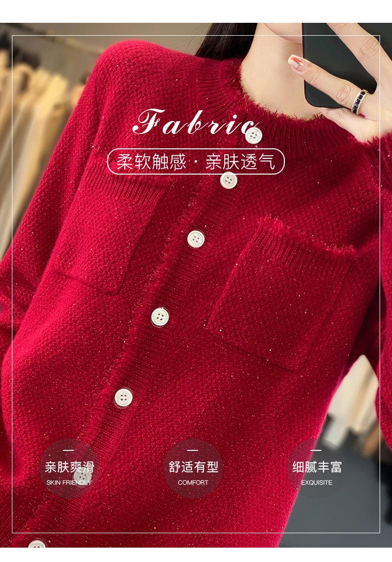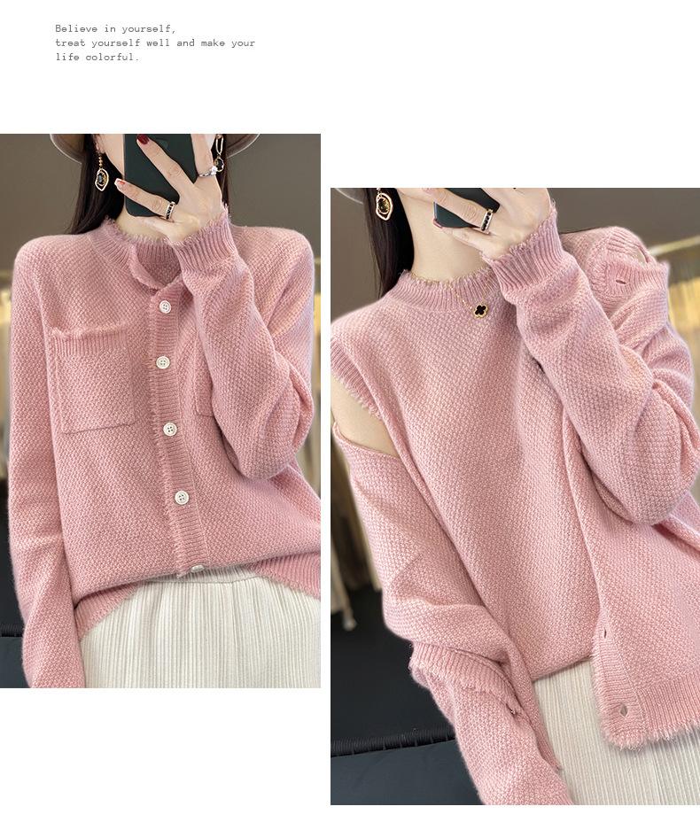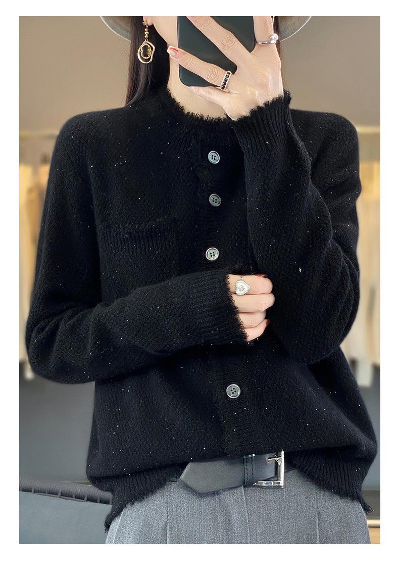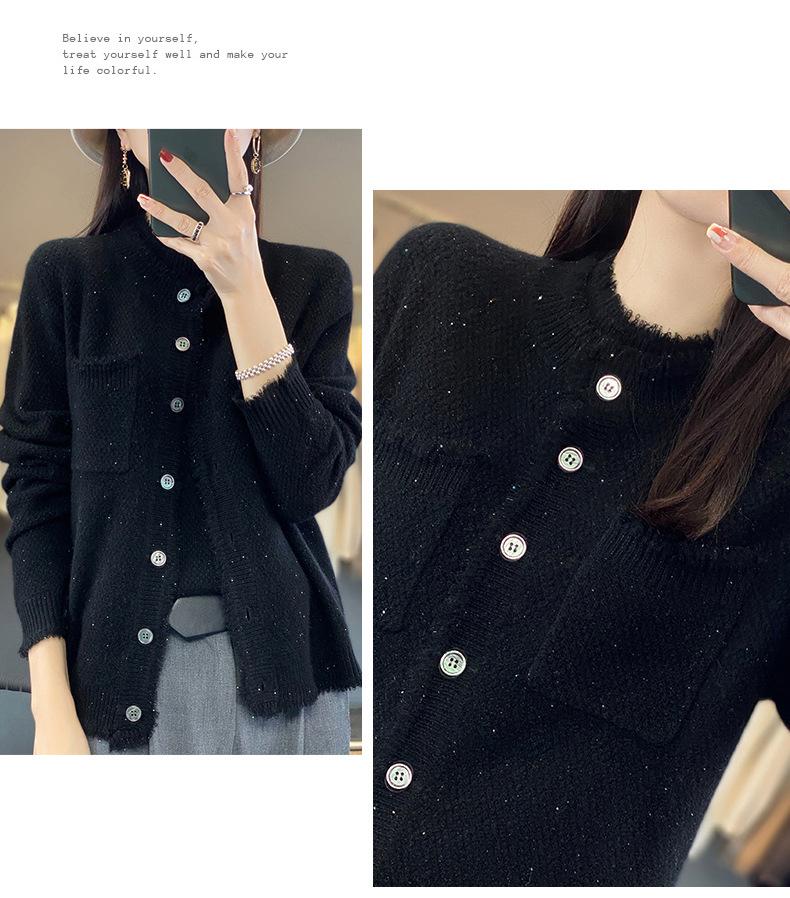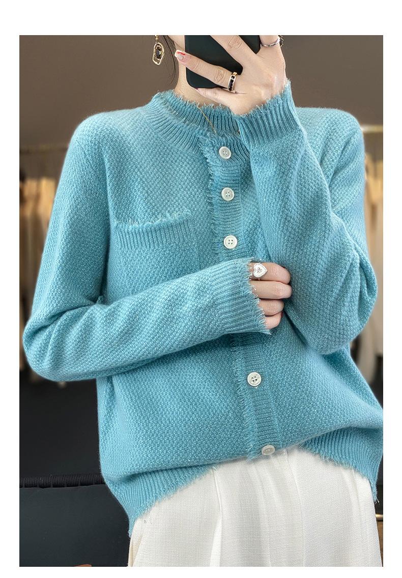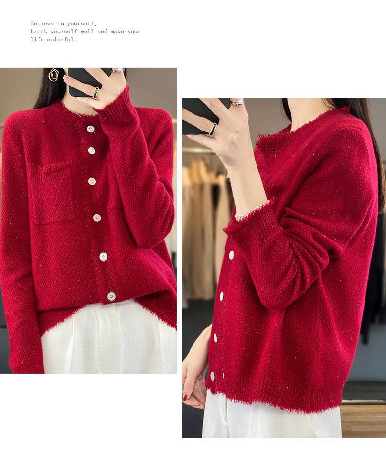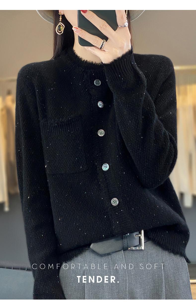 Cárdigan de Punto de Lana Pura para Mujer 100% Lana Pura Otoño e Invierno Nuevo Top con Borlas Chaqueta de Lujo Ligero para Mujer a la Moda con Bolsillo