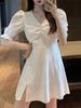 Vestido negro floral estilo francés retro estilo Hepburn 2024, nuevo vestido largo ajustado con escote en V y diseño sencillo a la moda.