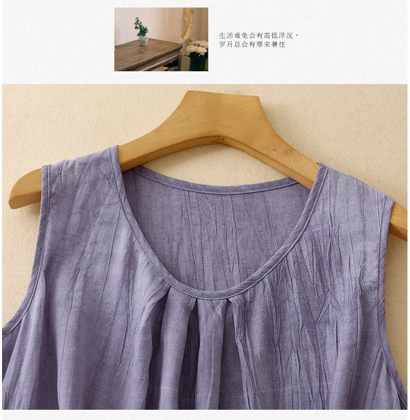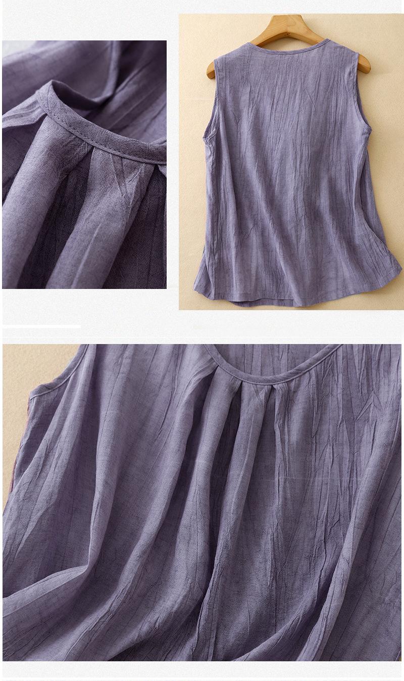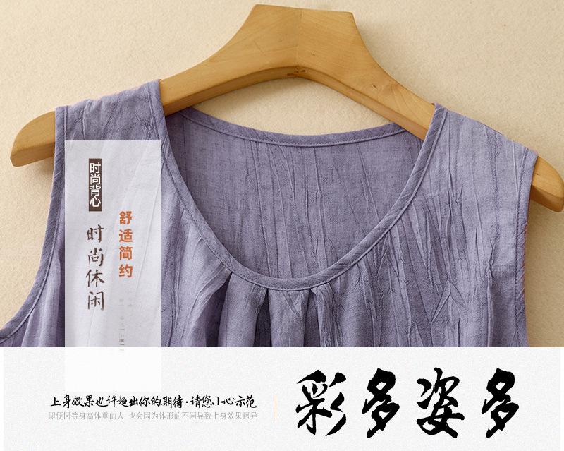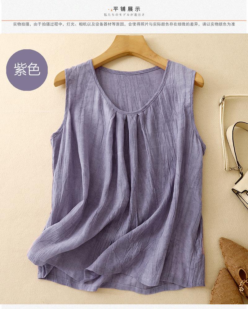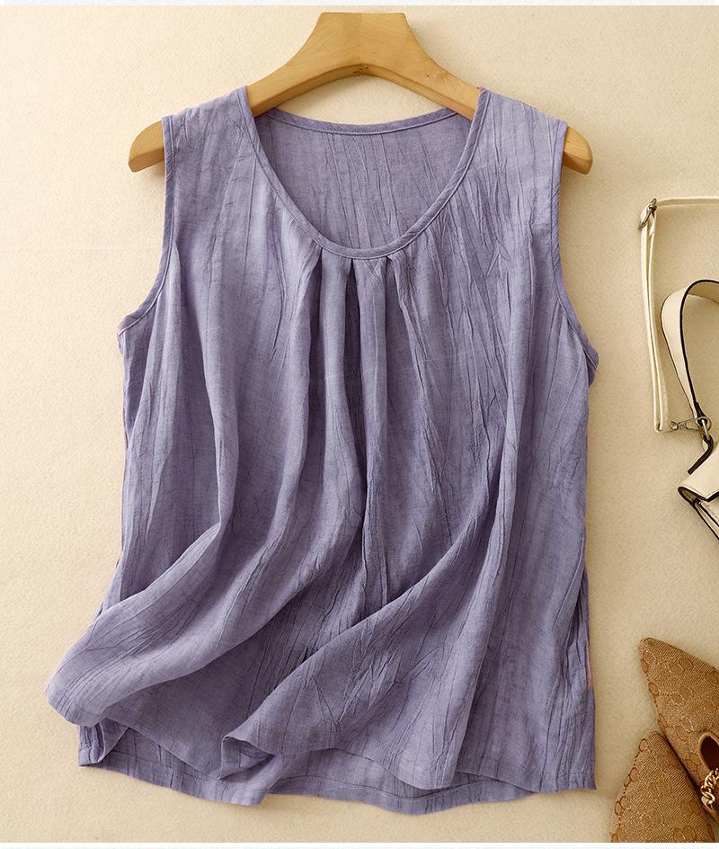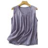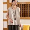 Camisa holgada de cuello redondo para mujer, chaleco sin mangas de lino y algodón, de verano 2024, para mujer, corta, combinable