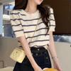 Camisa de manga corta con burbujas y rayas vintage para mujer, diseño nuevo de verano, camisa holgada y ajustada con estilo Sense Niche.