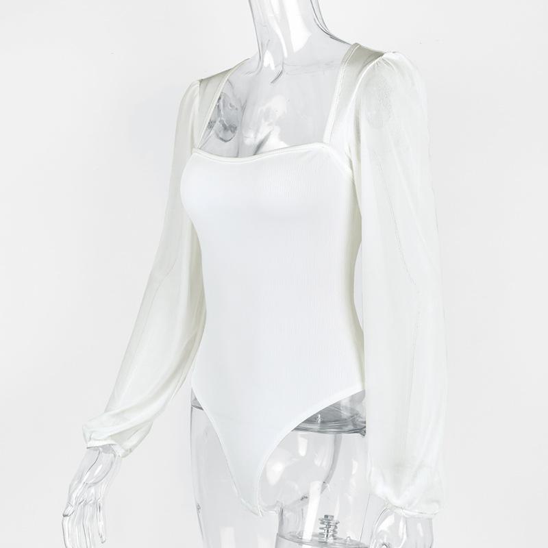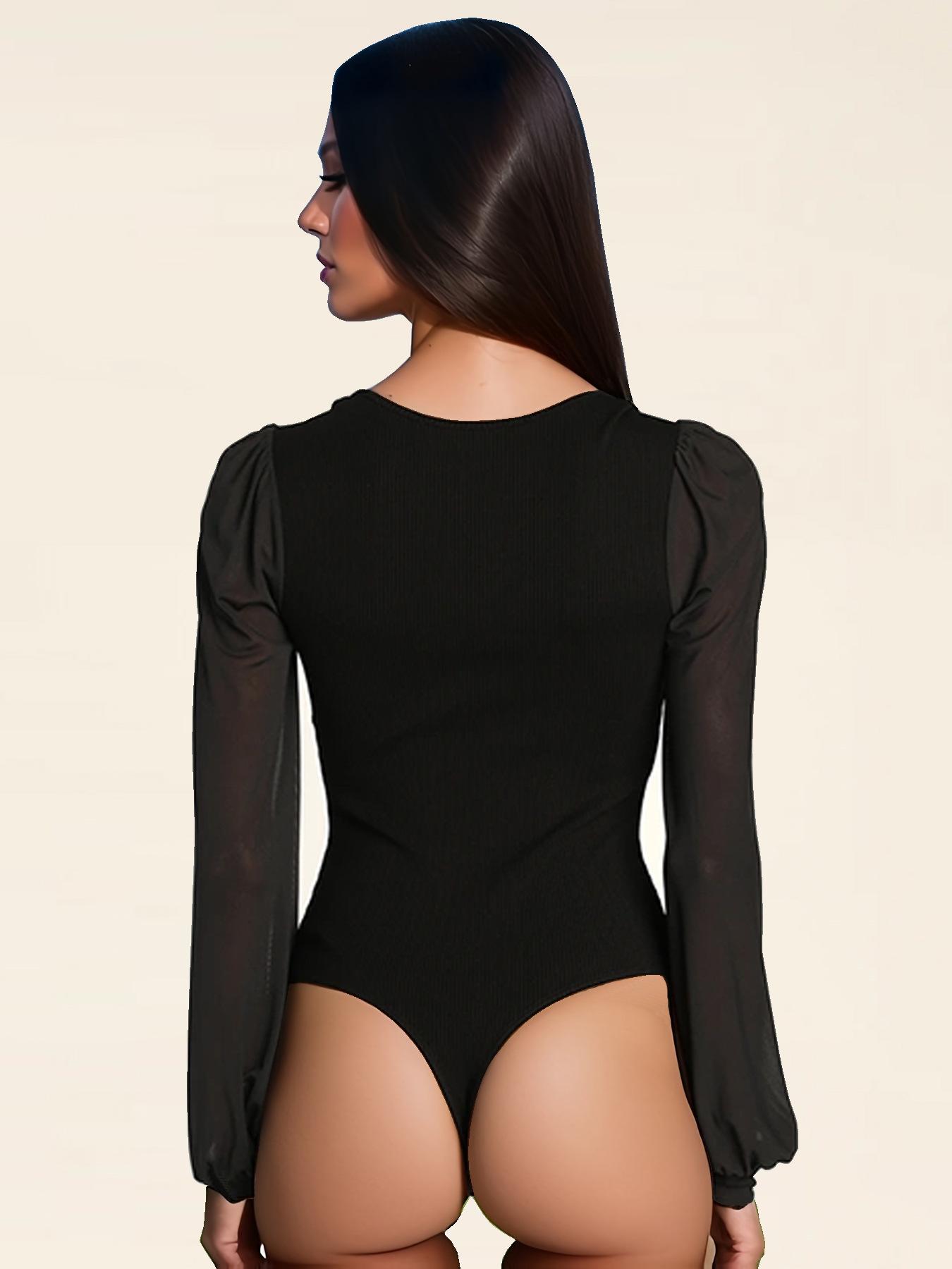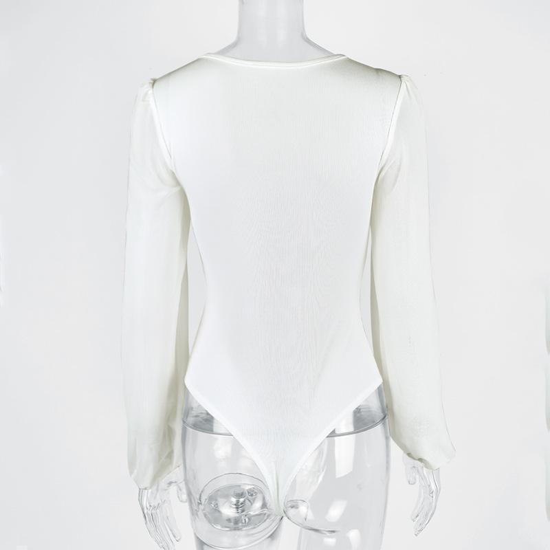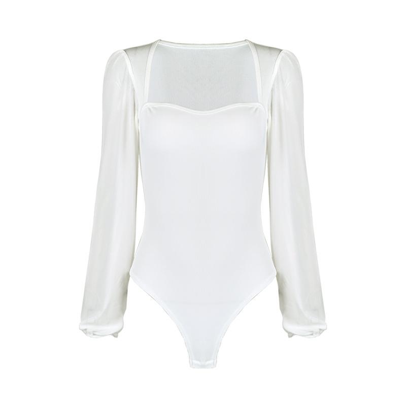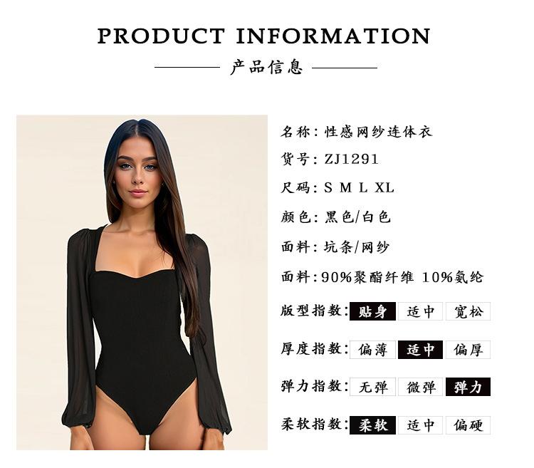 Otoño 2025 nuevo mallas europeas y americanas sexy moda costuras malla manga linterna mono body de mujer
