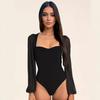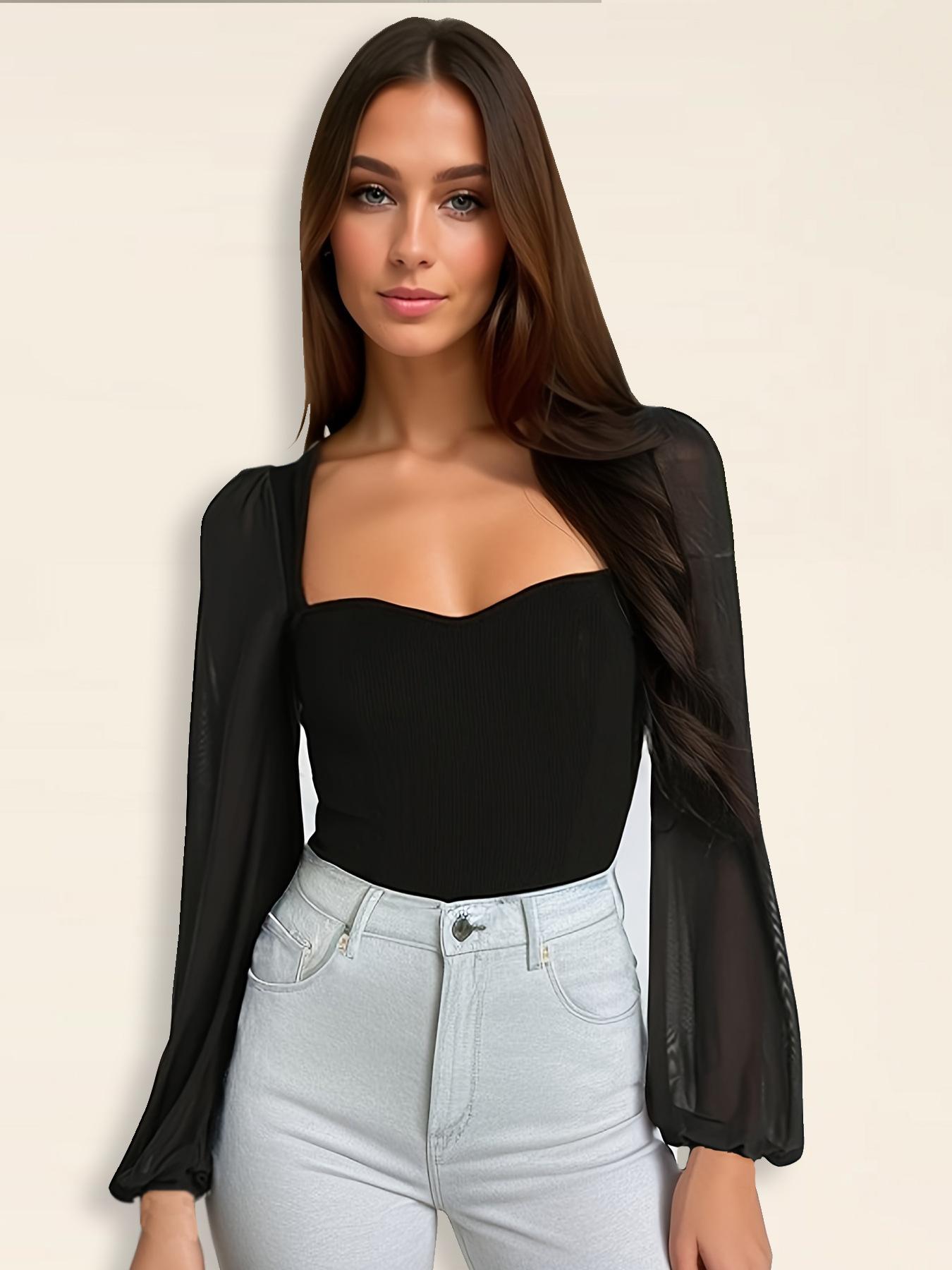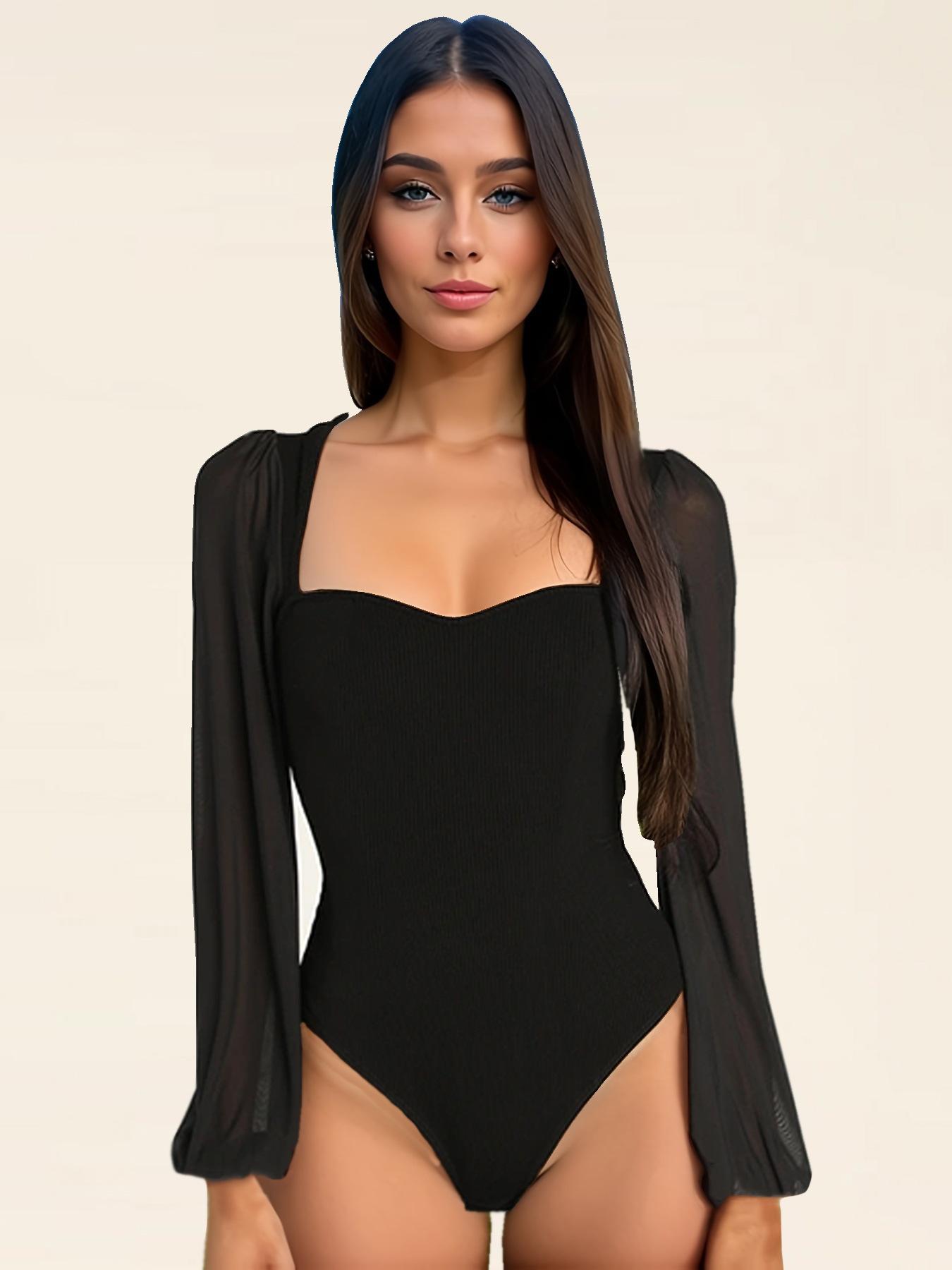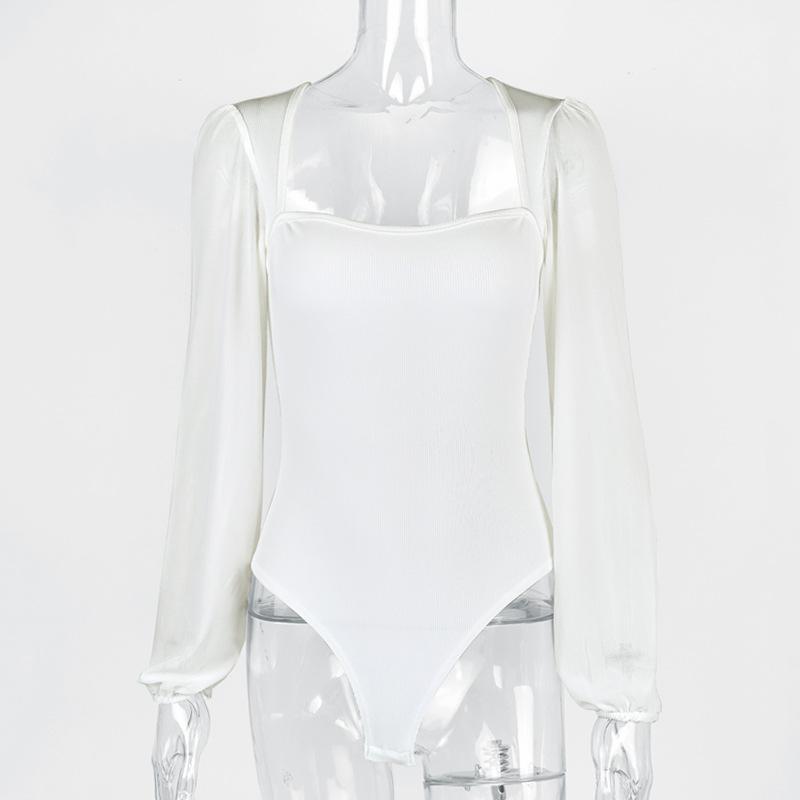 Otoño 2025 nuevo mallas europeas y americanas sexy moda costuras malla manga linterna mono body de mujer