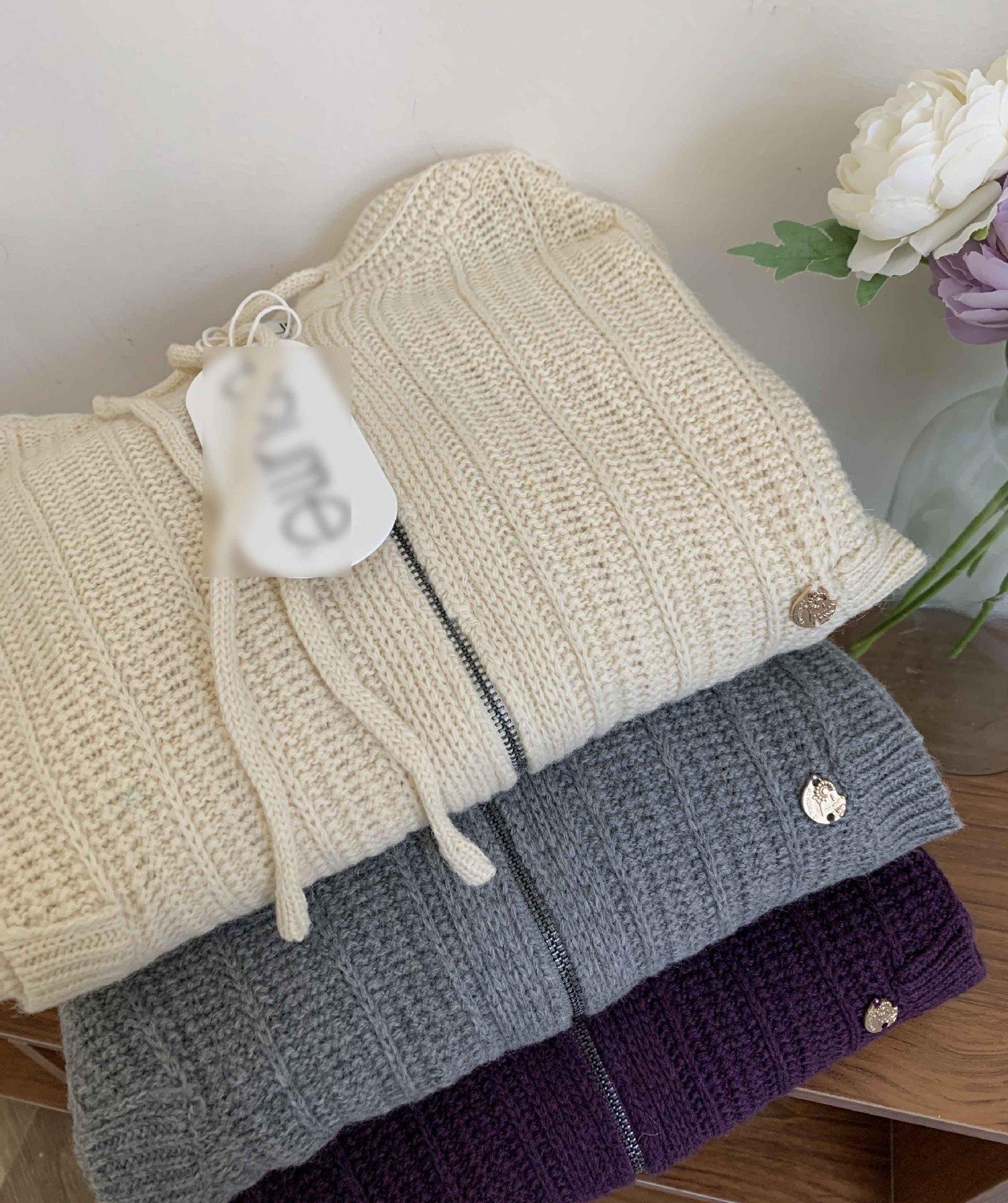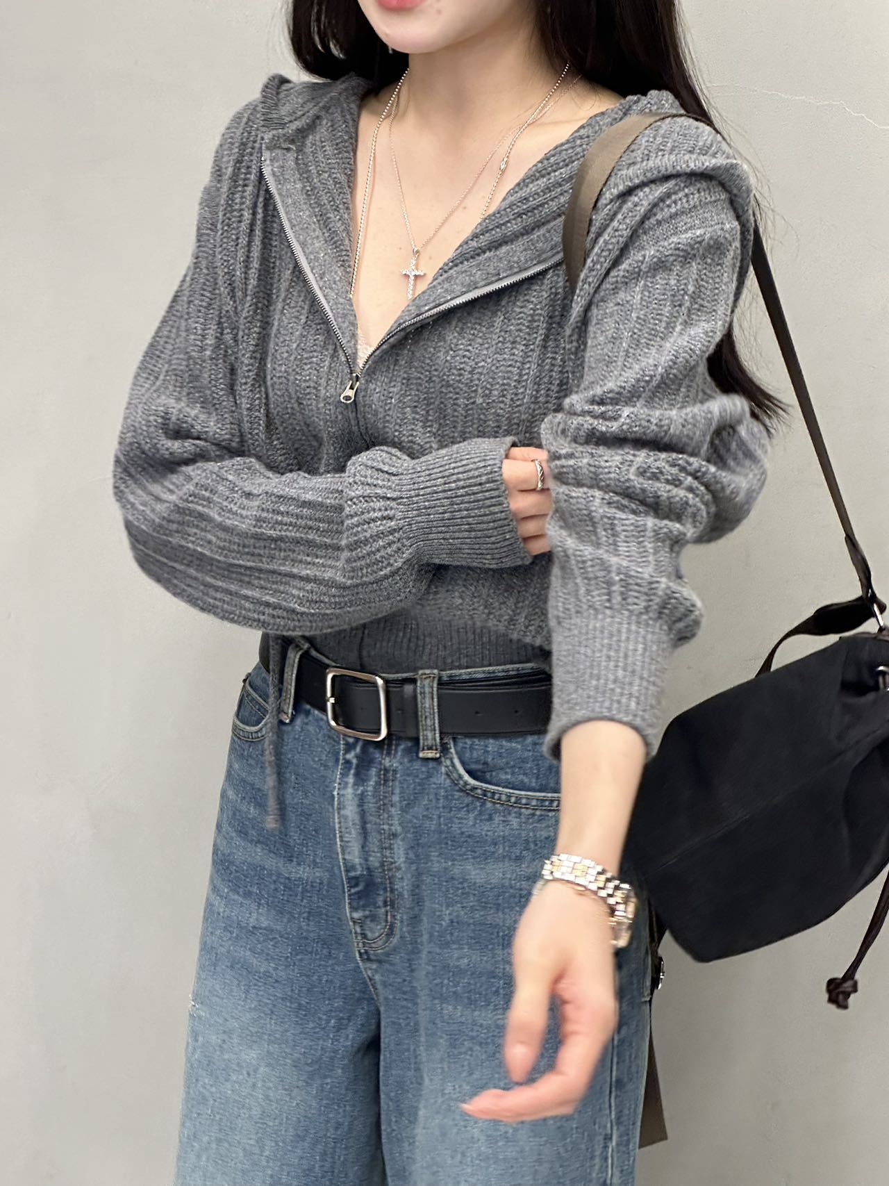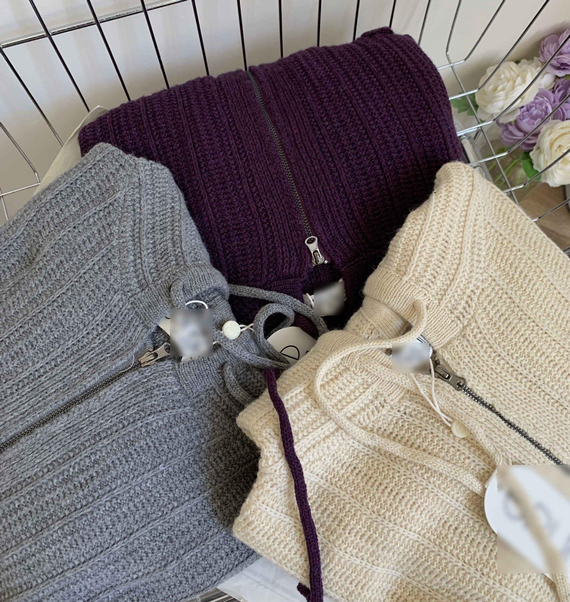 En stock Cárdigan de punto con cremallera y capucha Nuevo suéter para mujer de alta costura de principios de otoño Suéter de punto coreano