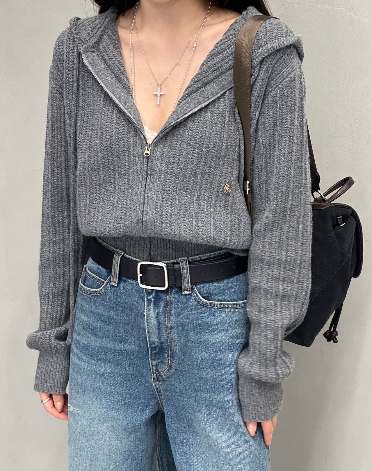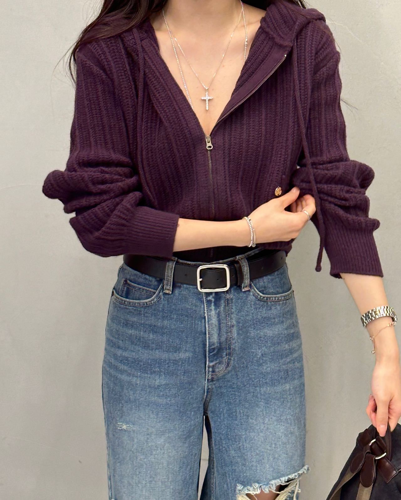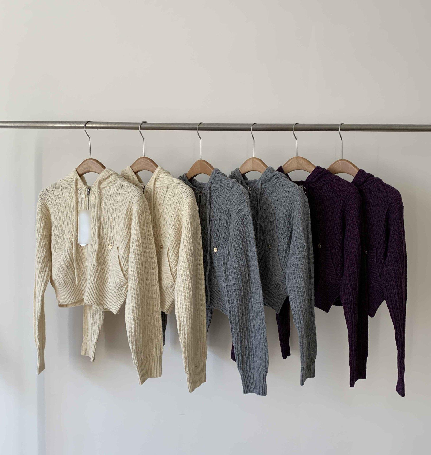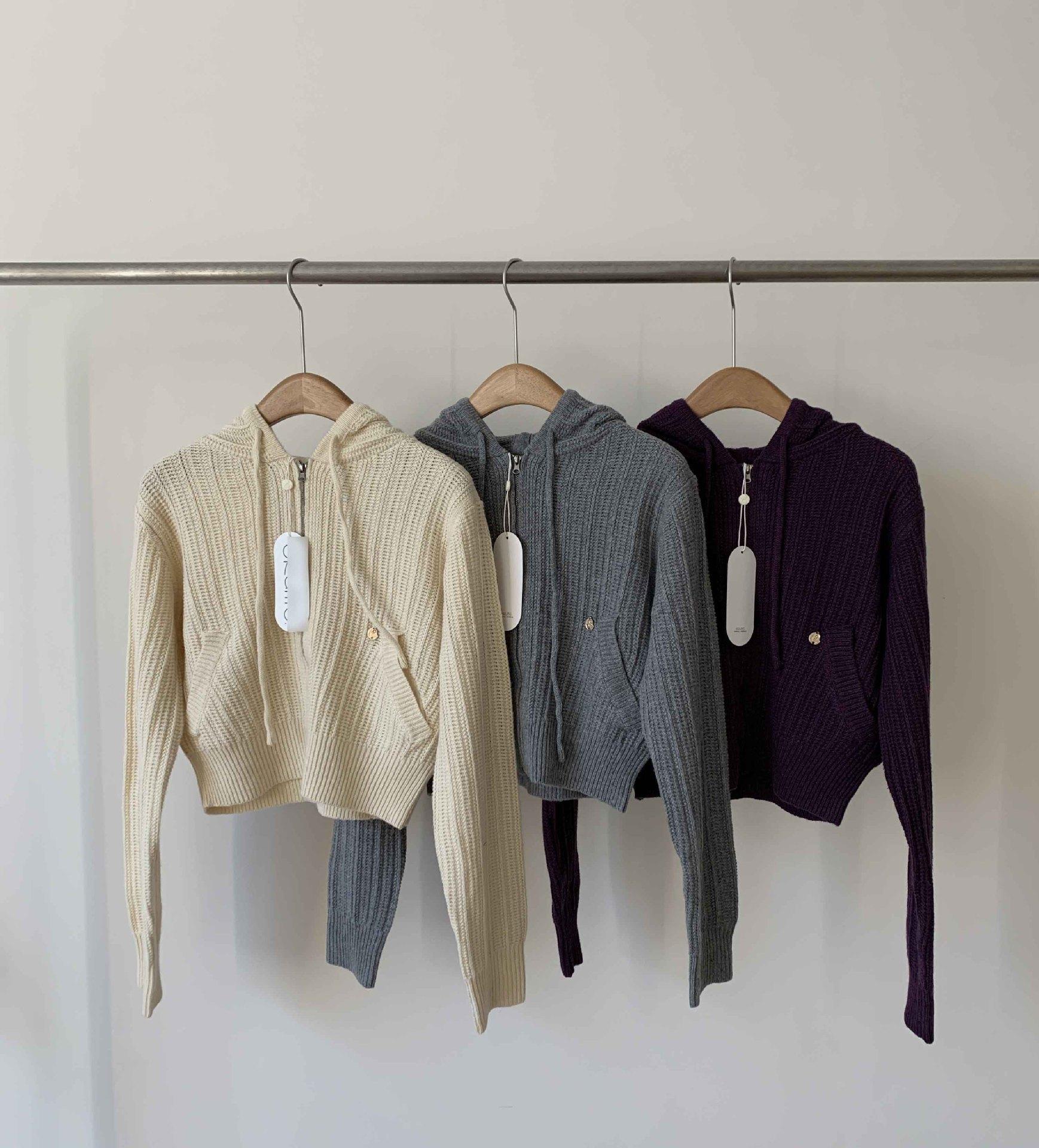 En stock Cárdigan de punto con cremallera y capucha Nuevo suéter para mujer de alta costura de principios de otoño Suéter de punto coreano