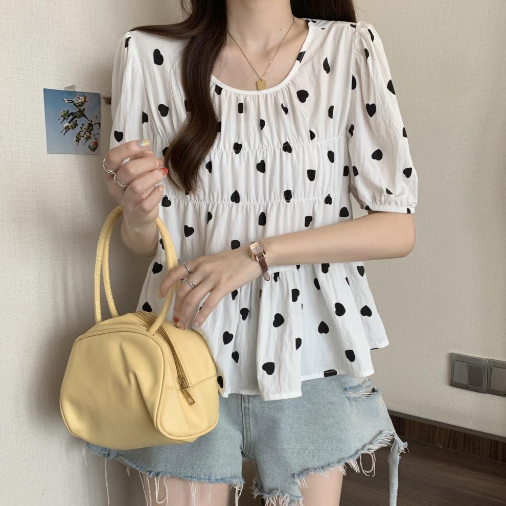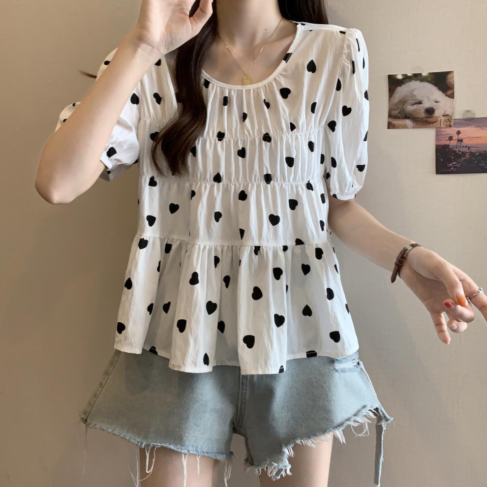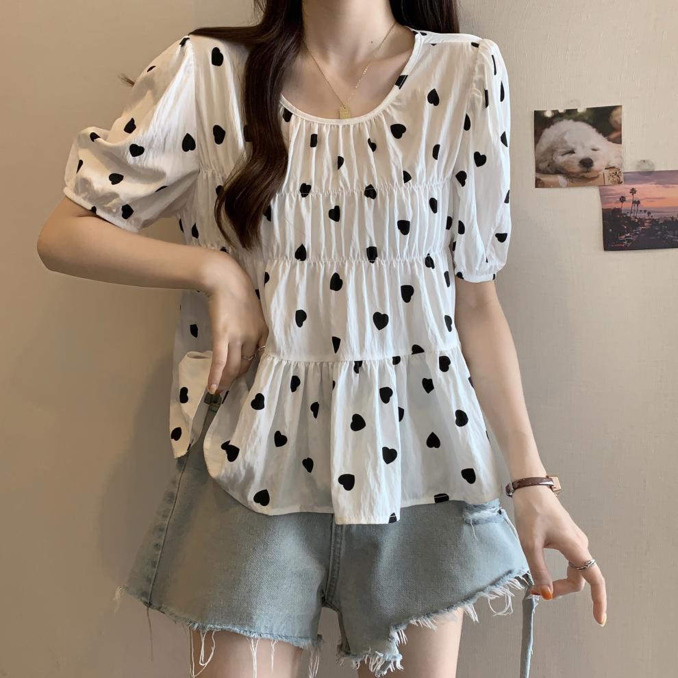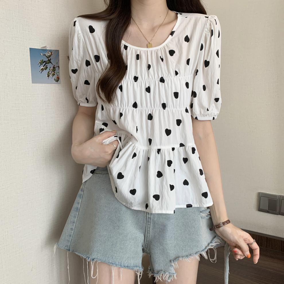 2025 Nuevo Diseño de Verano Estilo Corazón Camisa de Manga Corta para Mujer Top Dulce Plisado Francés Ropa de Mujer