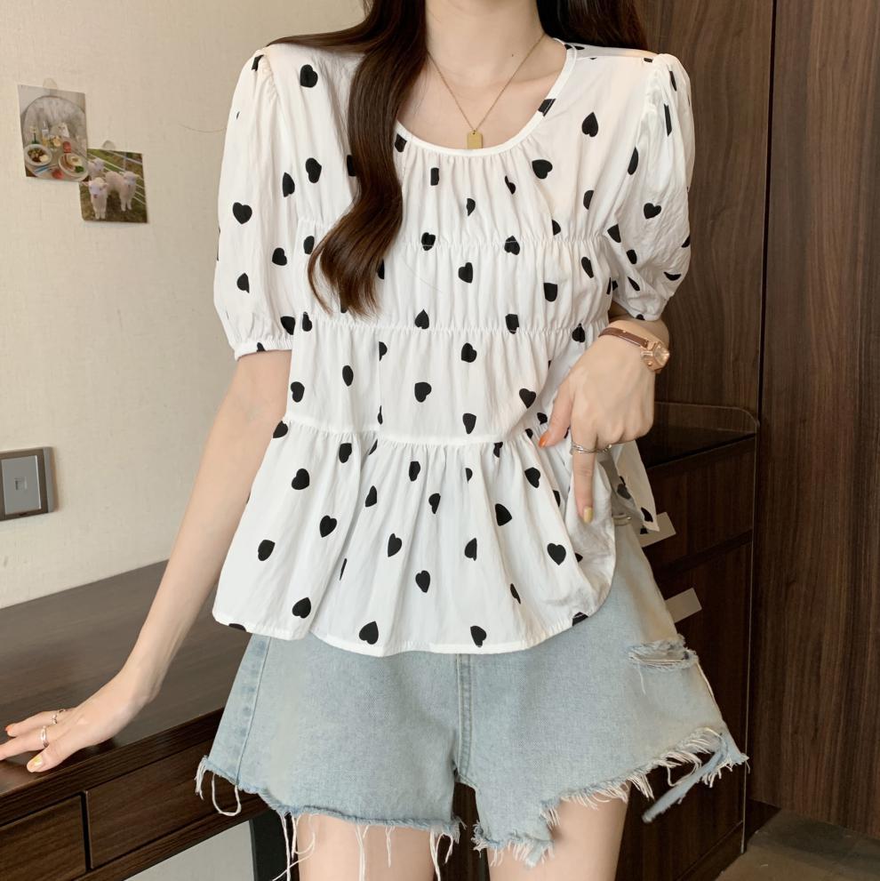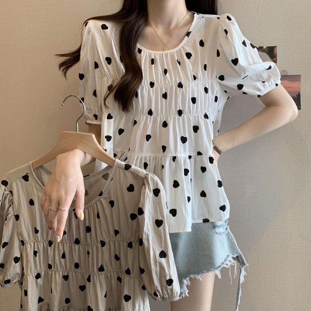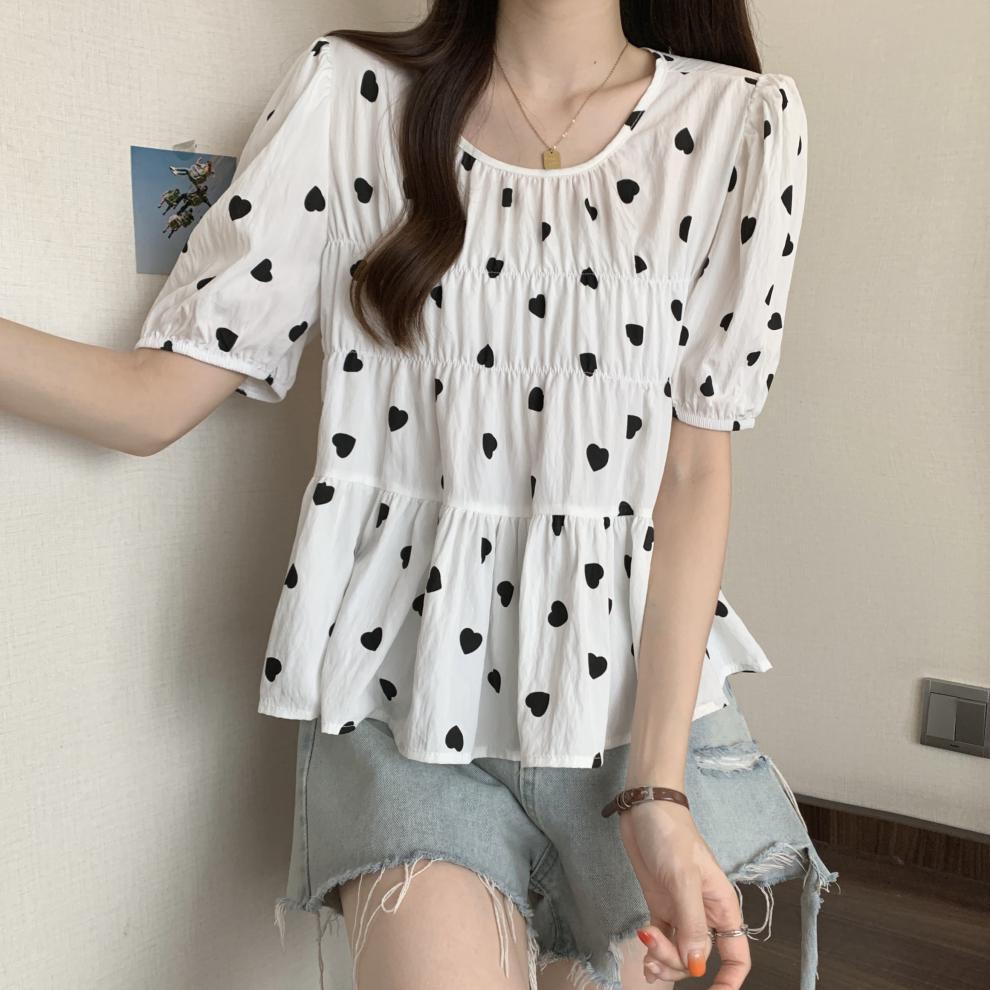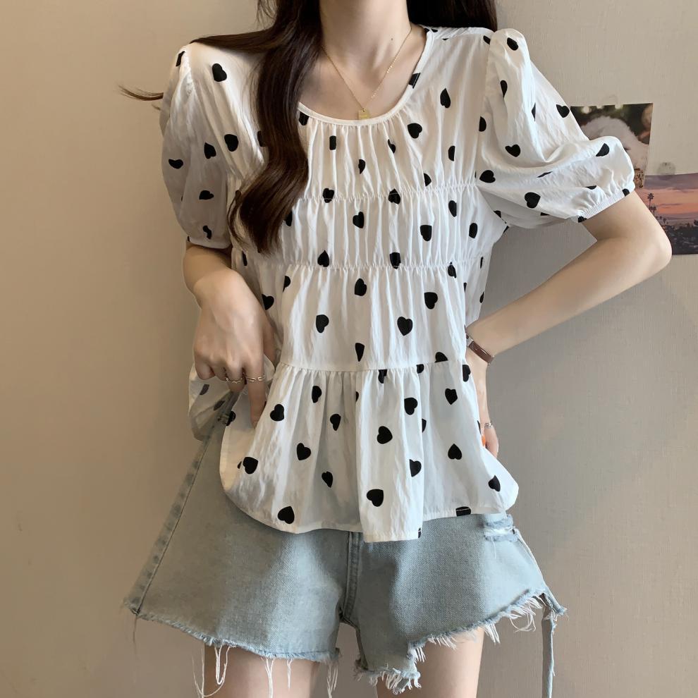2025 Nuevo Diseño de Verano Estilo Corazón Camisa de Manga Corta para Mujer Top Dulce Plisado Francés Ropa de Mujer