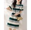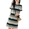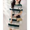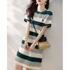 Vestido de verano 2023 con rayas de colores contrastantes, falda sencilla informal coreana, vestido adelgazante y agradable para la piel para mujer