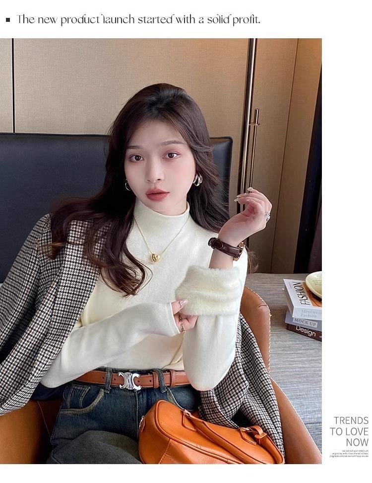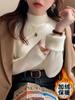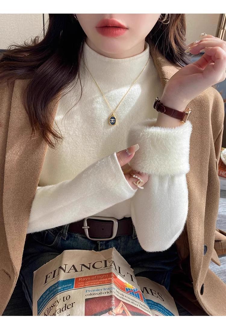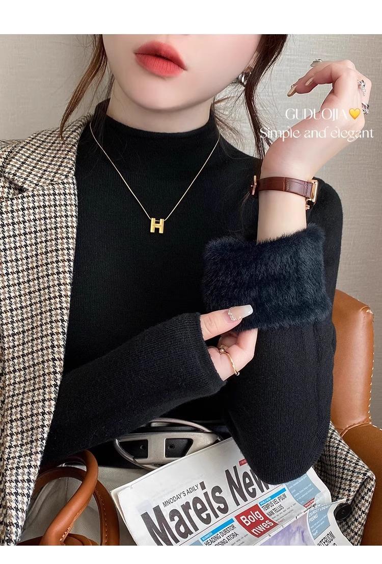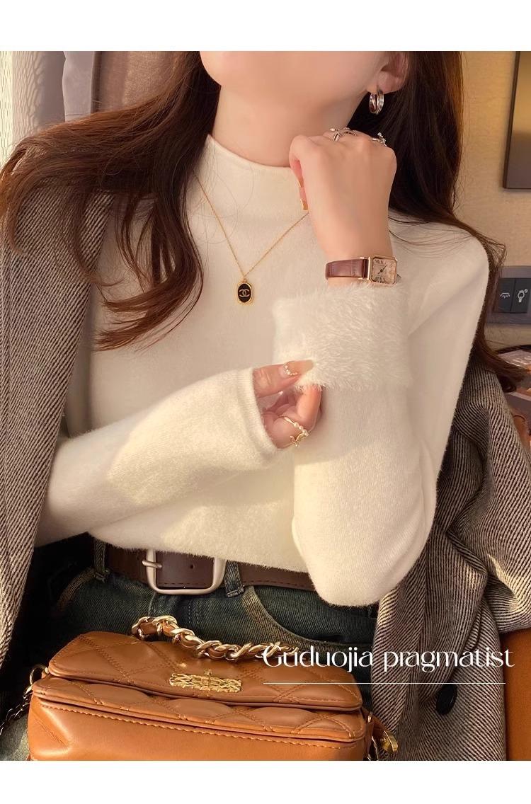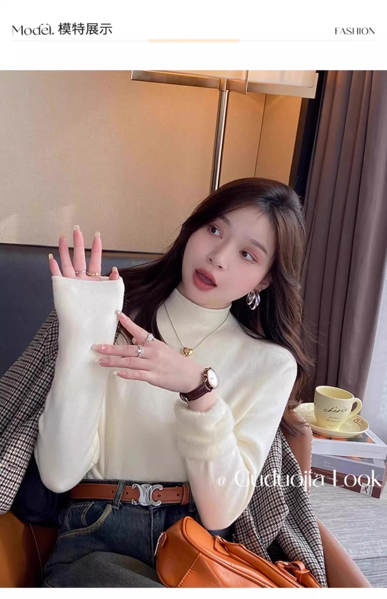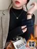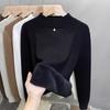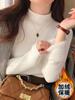 Suéter de cuello alto de una pieza con base de terciopelo grueso y forro polar para mujer, otoño e invierno 2024, parte superior interior de manga larga de primavera