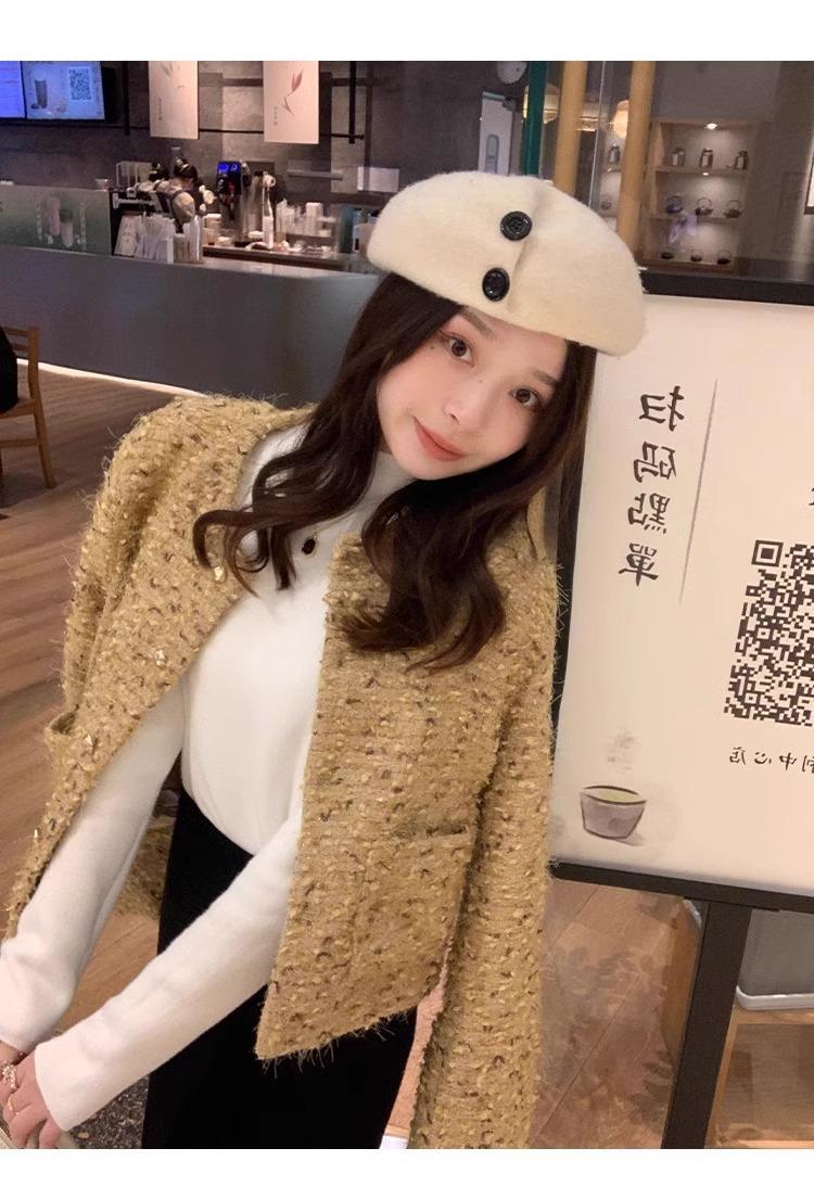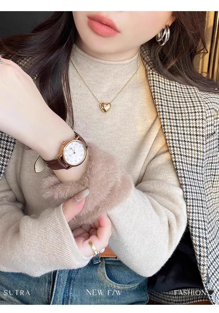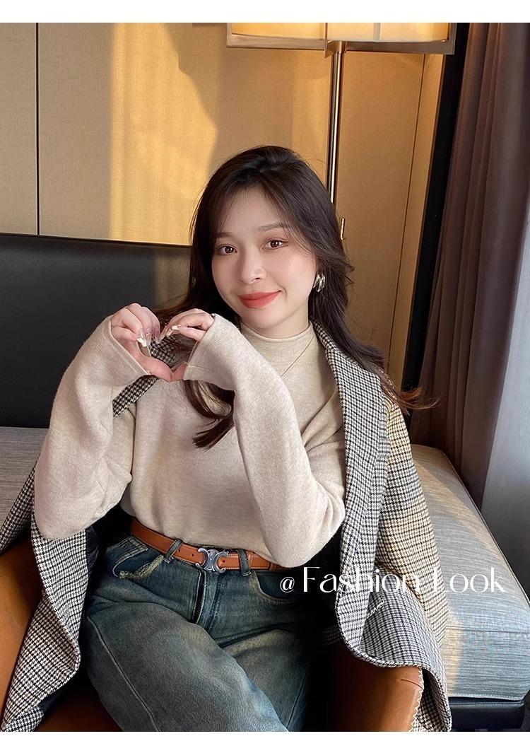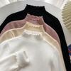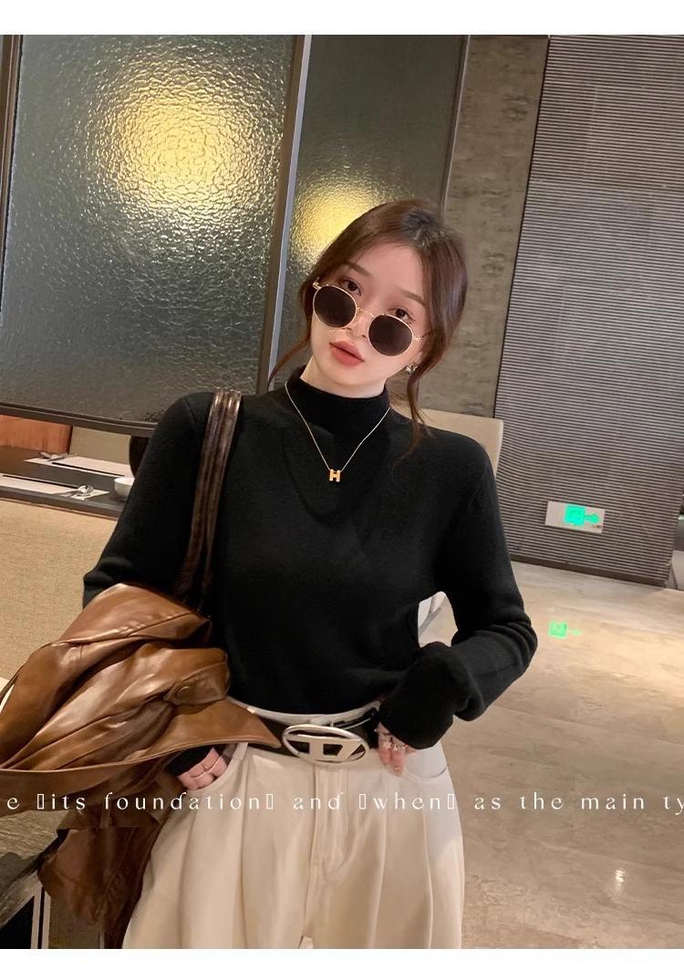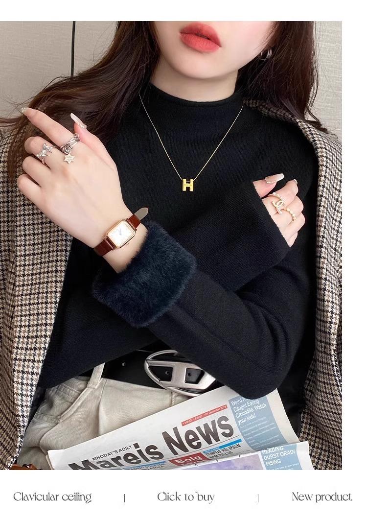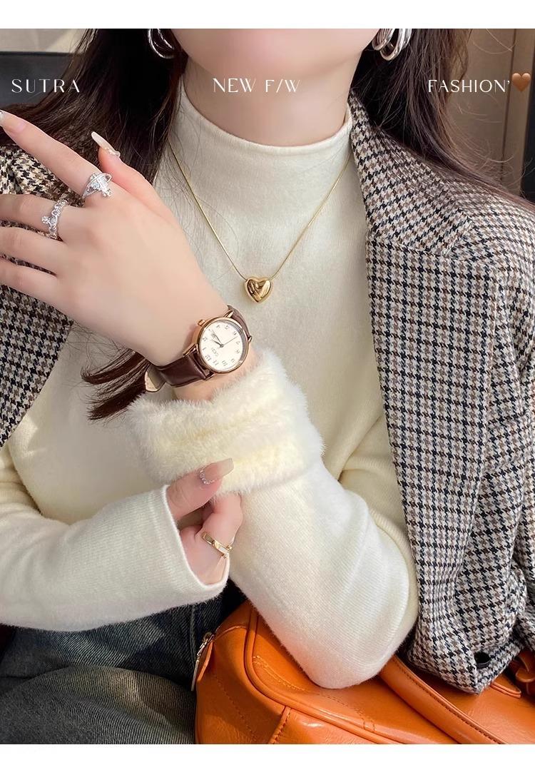 Suéter de cuello alto de una pieza con base de terciopelo grueso y forro polar para mujer, otoño e invierno 2024, parte superior interior de manga larga de primavera