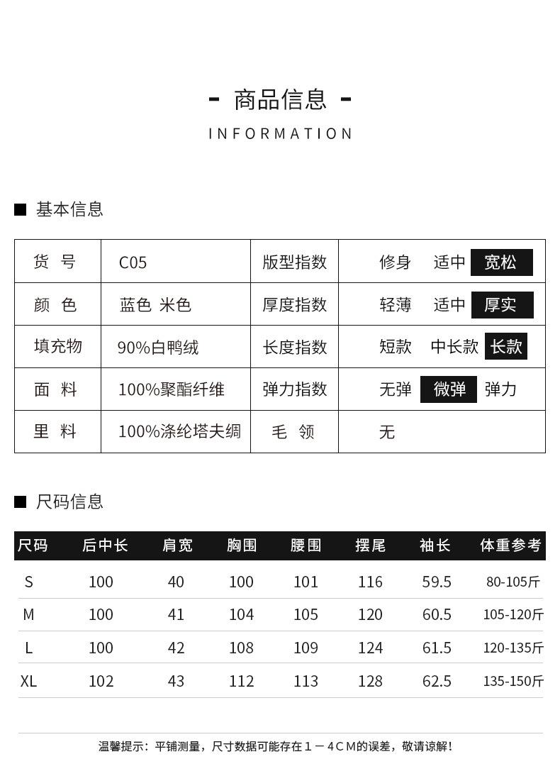 Chaqueta de plumón 90 de grosor medio popular y cálida para mujer