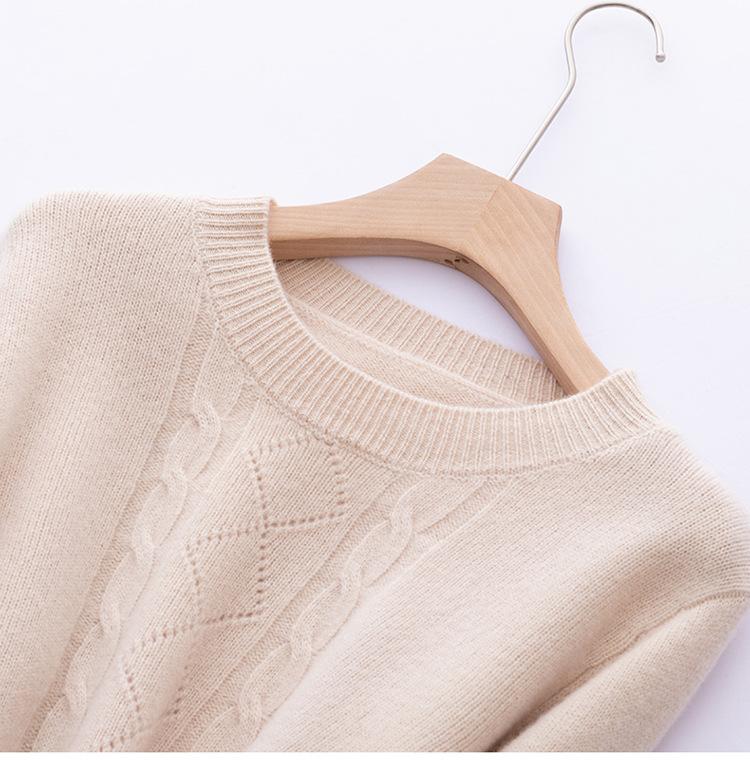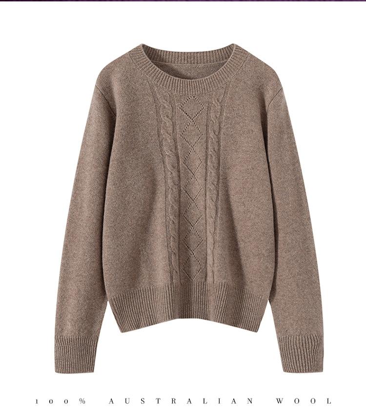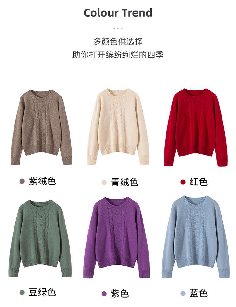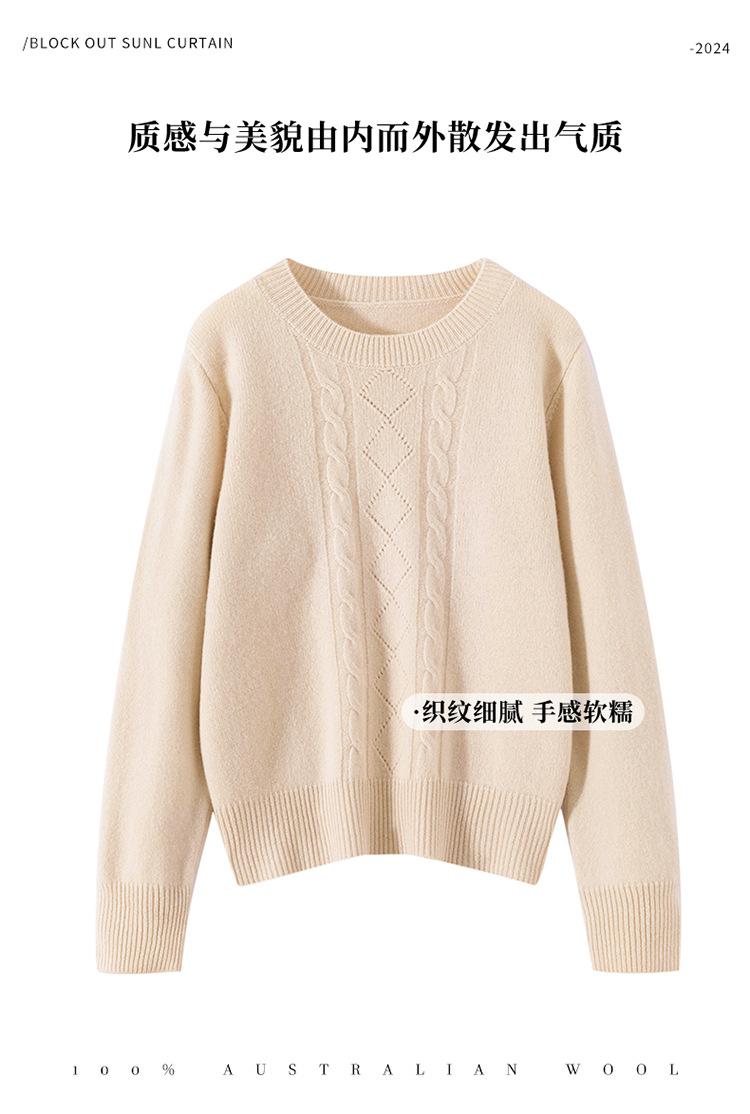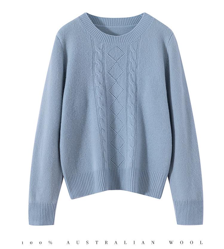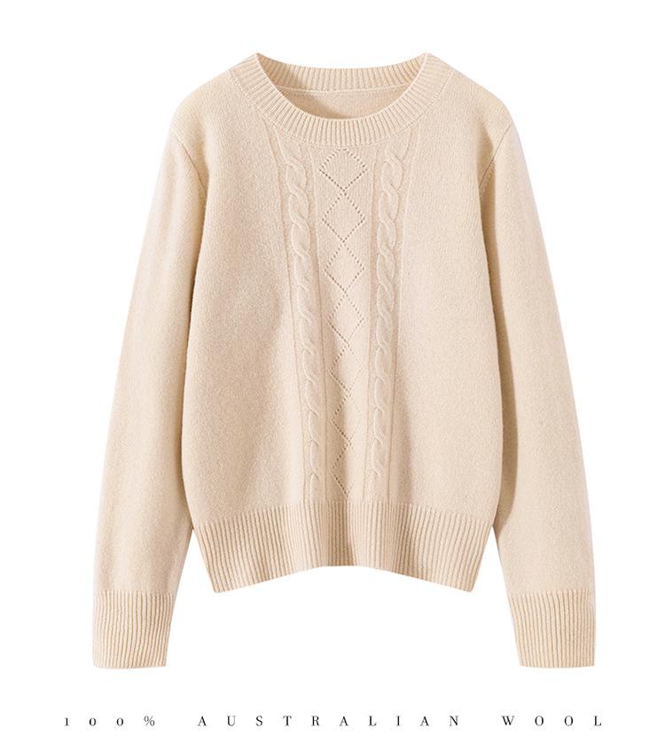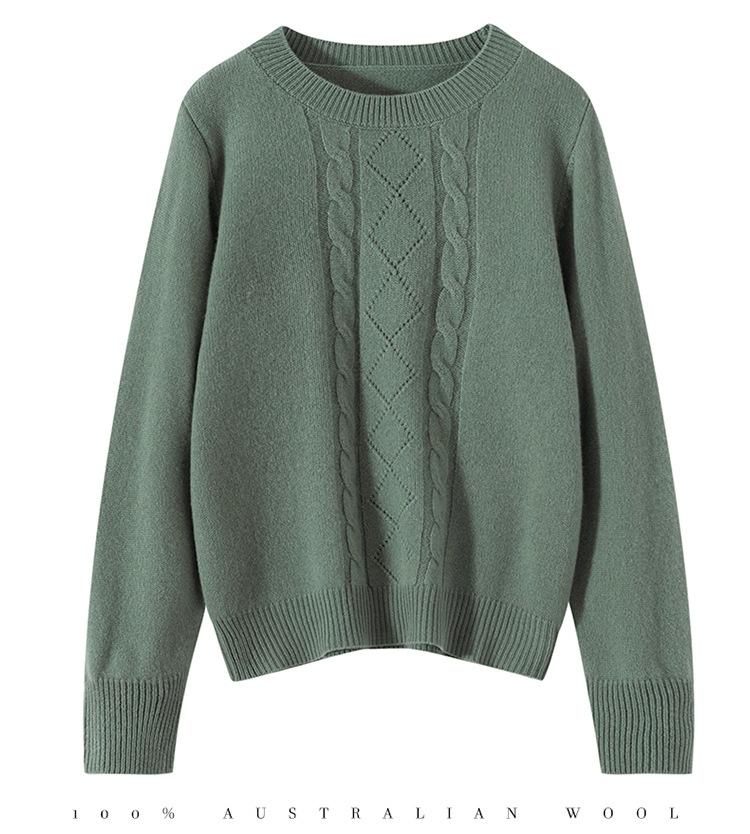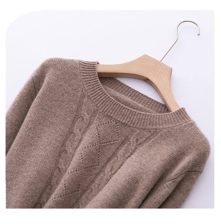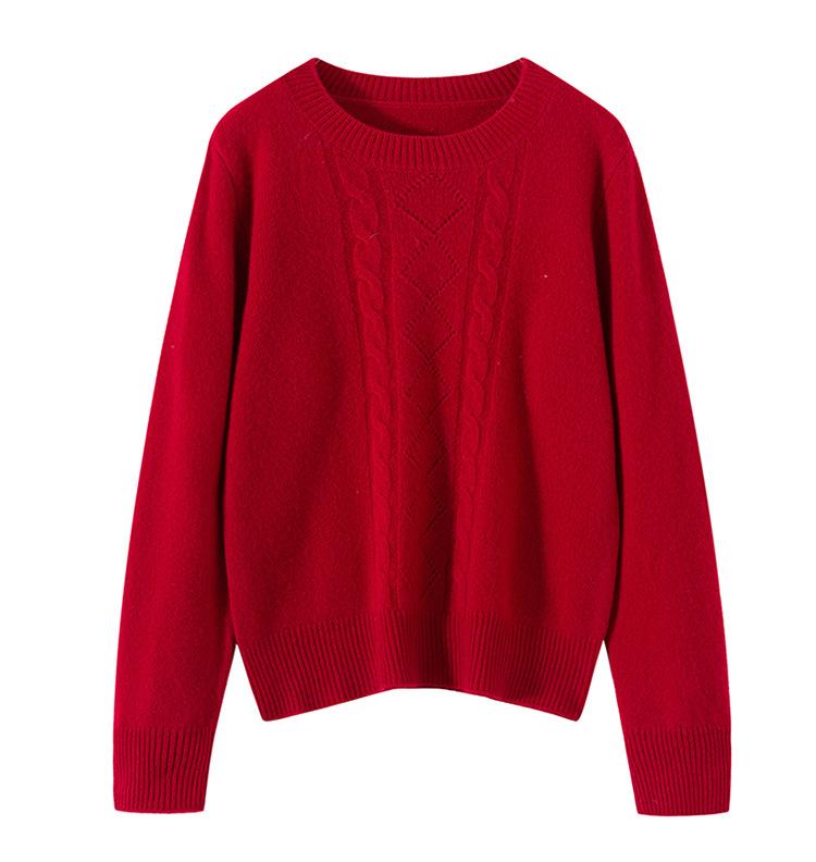 Suéter de punto de lana para mujer, cuello redondo, jacquard, manga larga, cálido, para exteriores, con base para combinar con todo, nuevo suéter