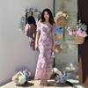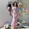 Vestido ajustado con cuello cuadrado elegante y estampado de moda para mujer, novedad de verano de 2024, disponible en Europa y América, con Amazon transfronterizo.