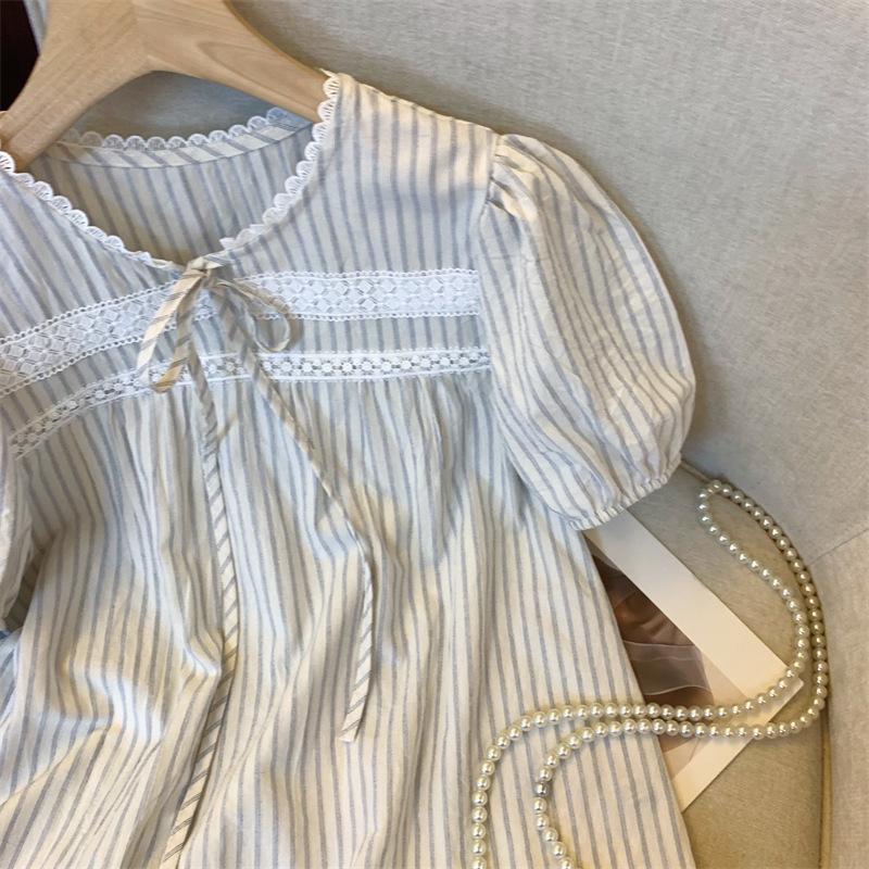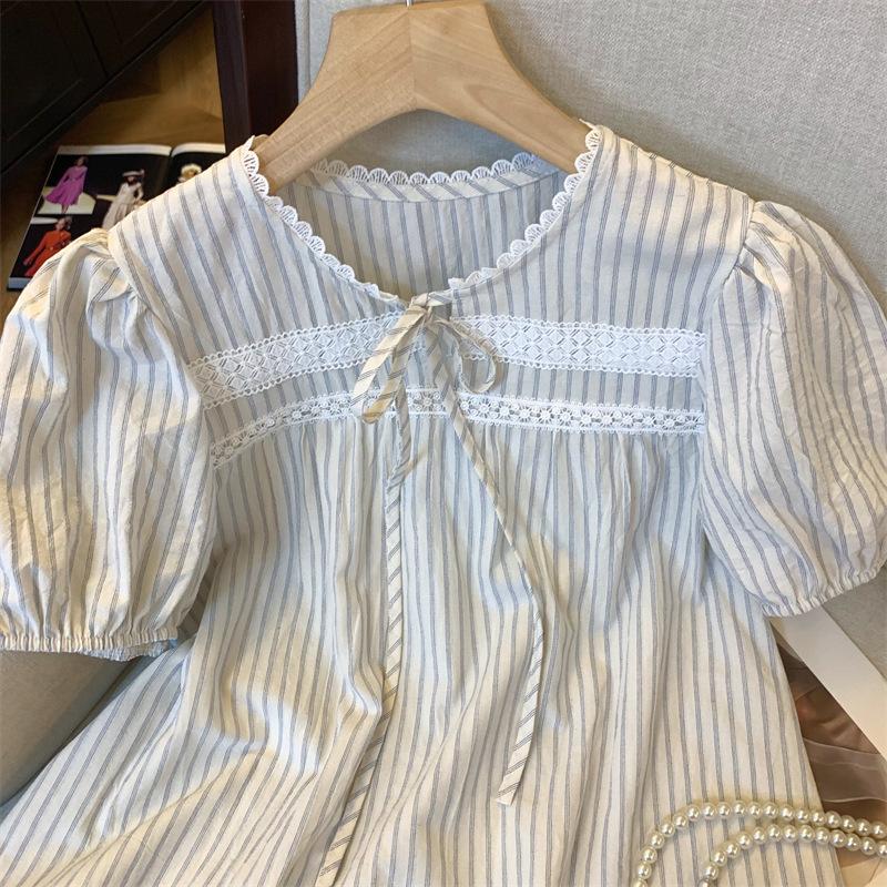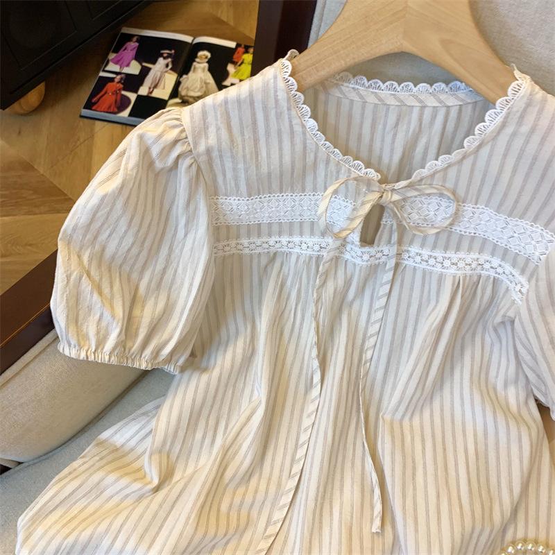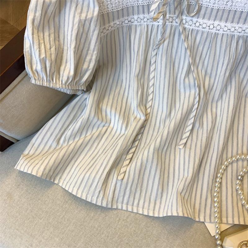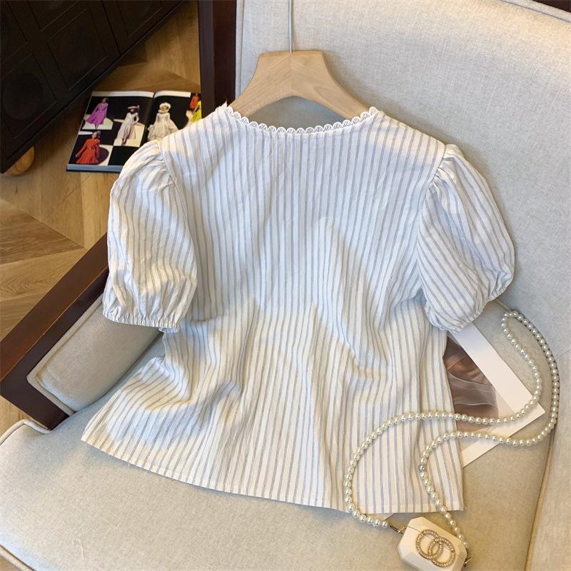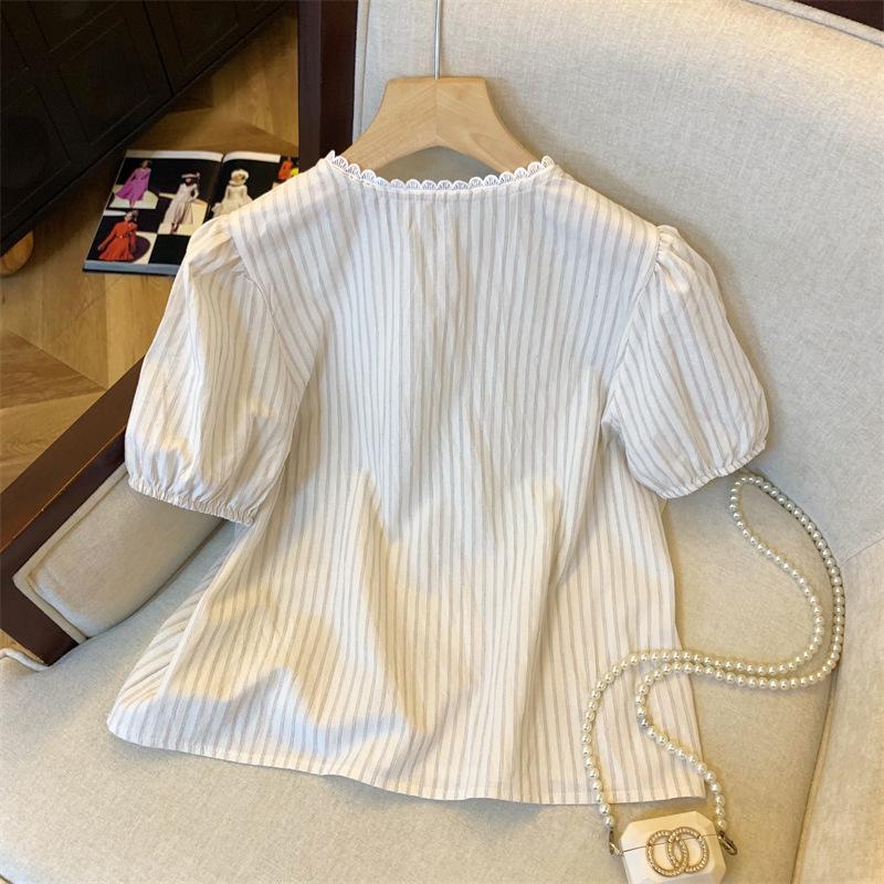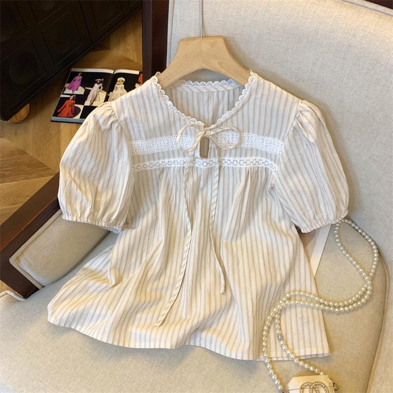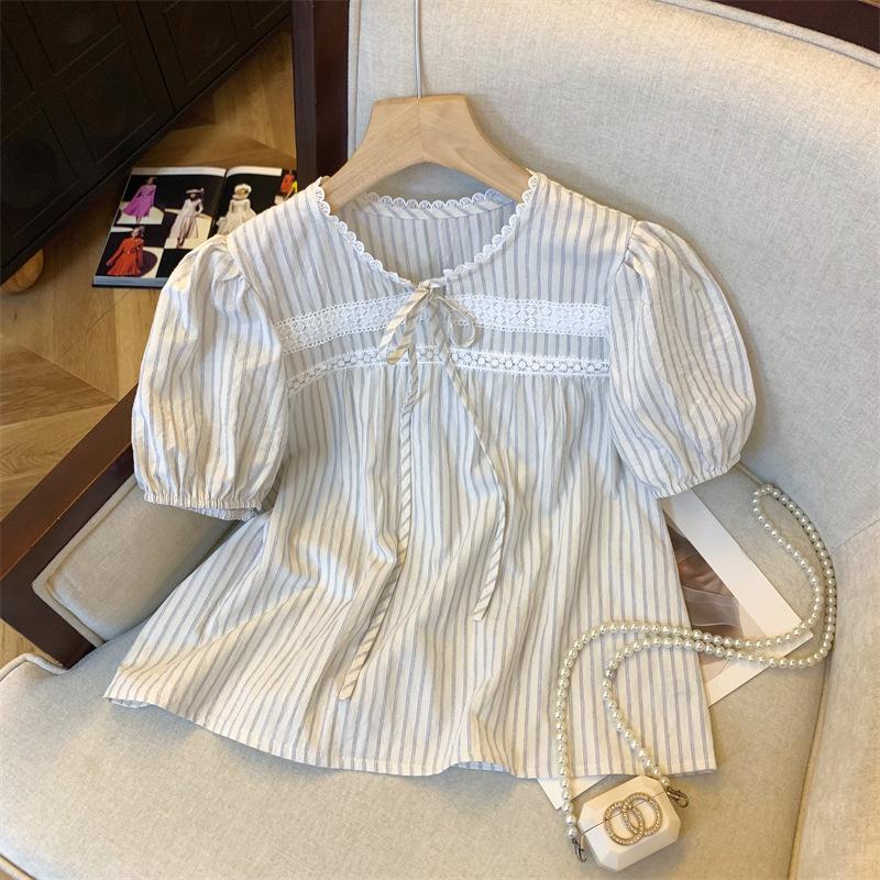 Camisa de manga abullonada fina para mujer, diseño francés hueco, estilo real, novedad de verano de 2024