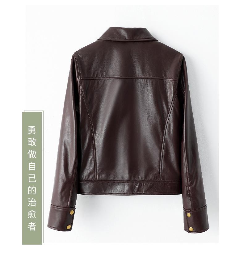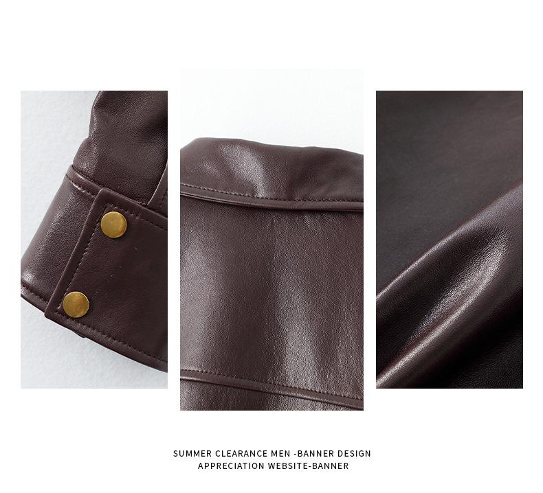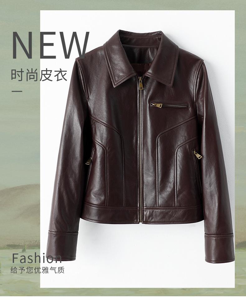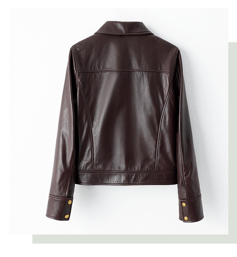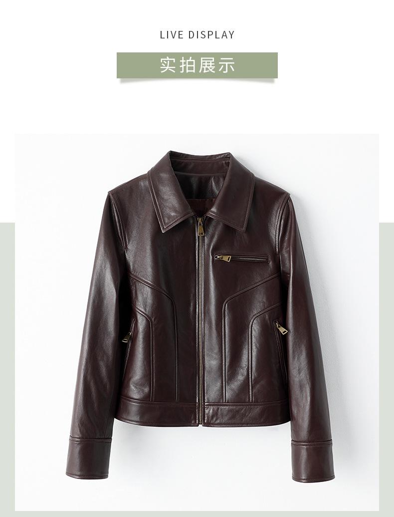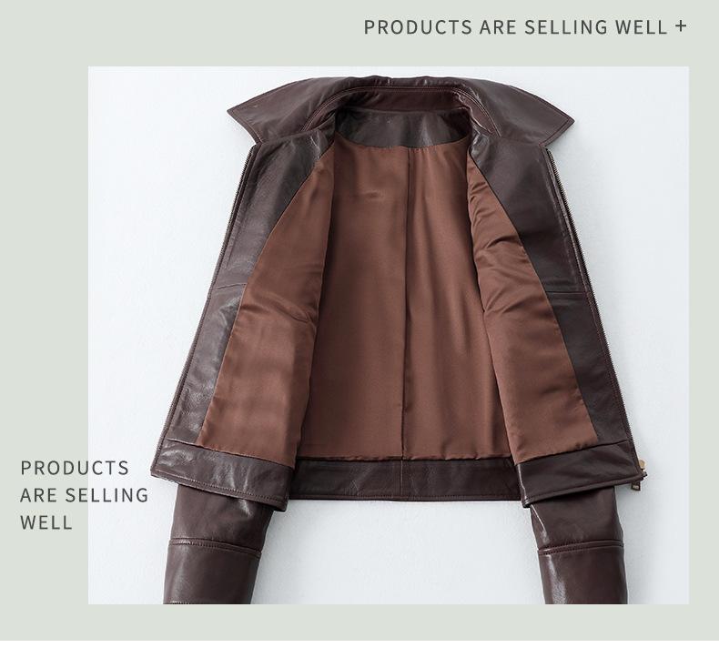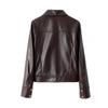 Chaqueta de Cuero Genuino Marrón para Mujer 2025 Primavera Nueva Holgada Adelgazante Estilo Hong Kong Retro Chaqueta Biker Ajustada