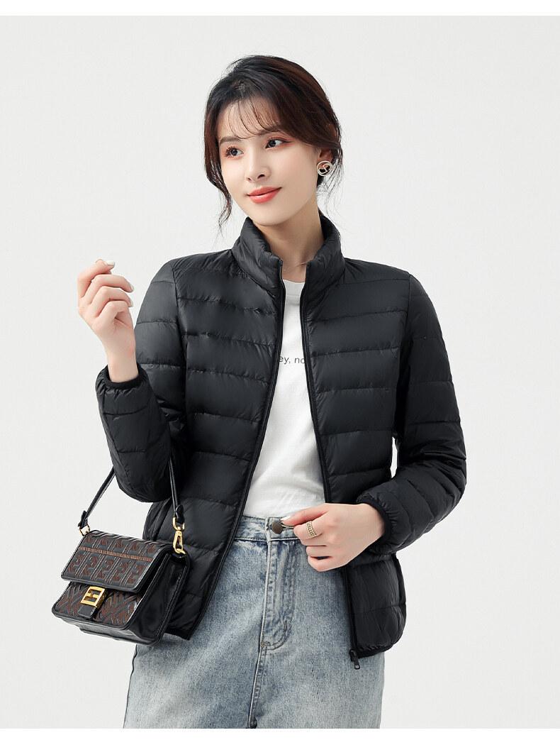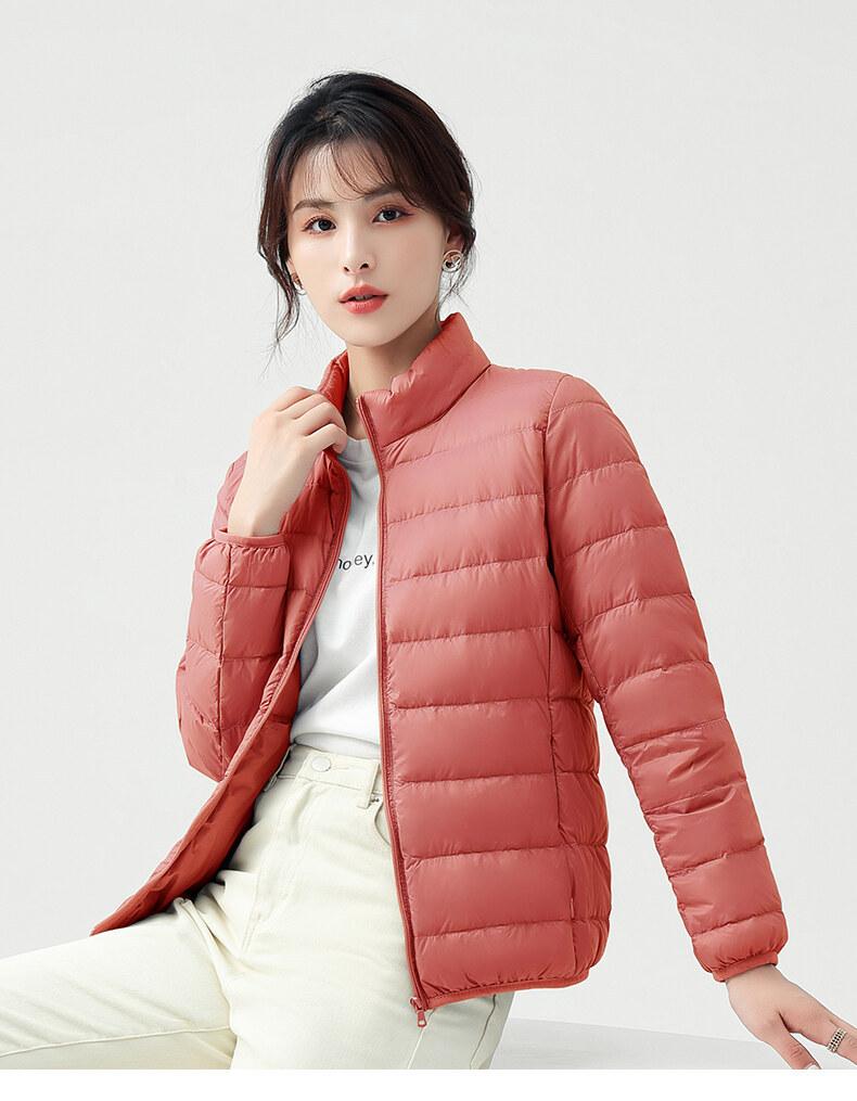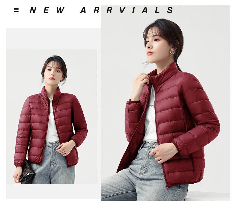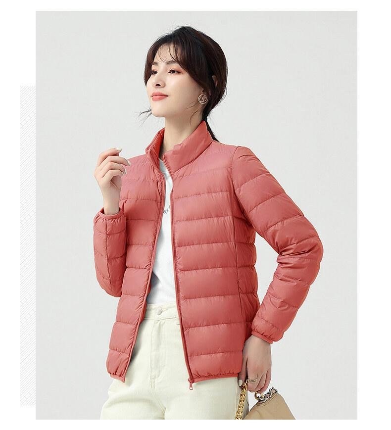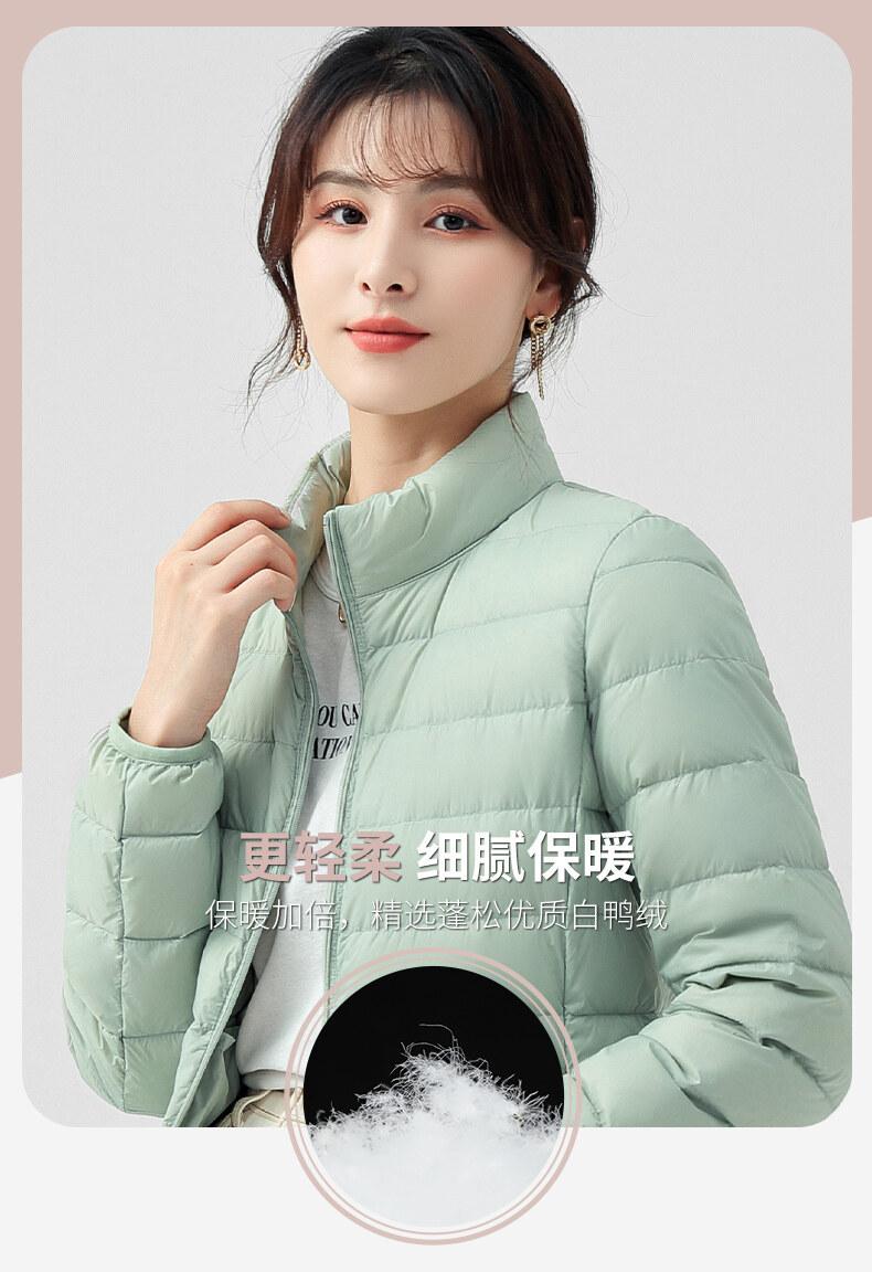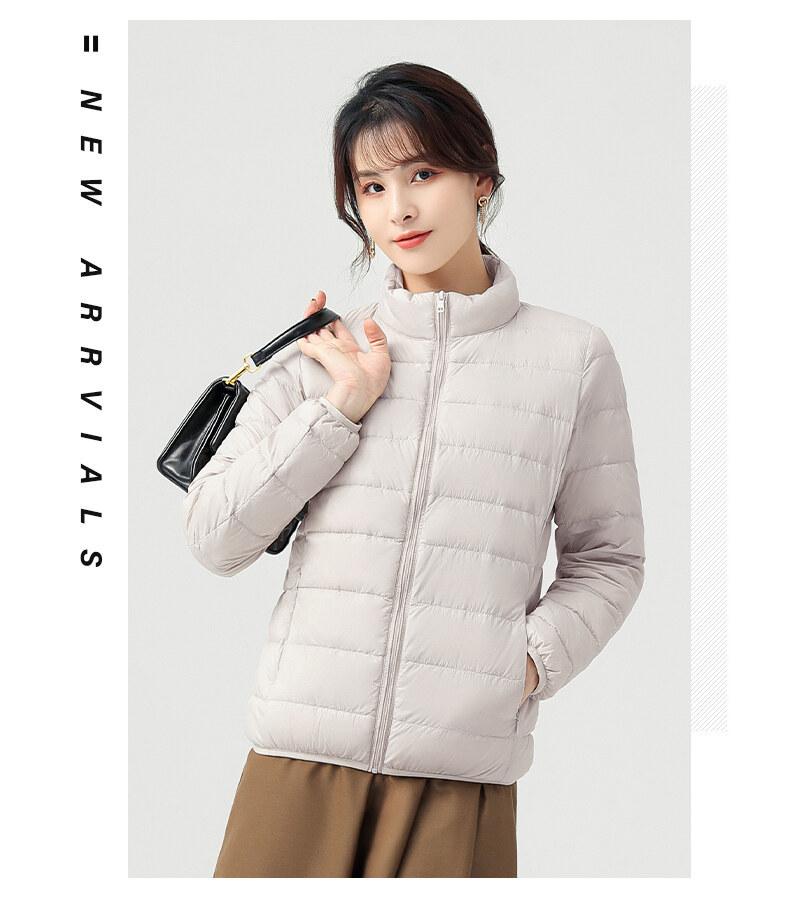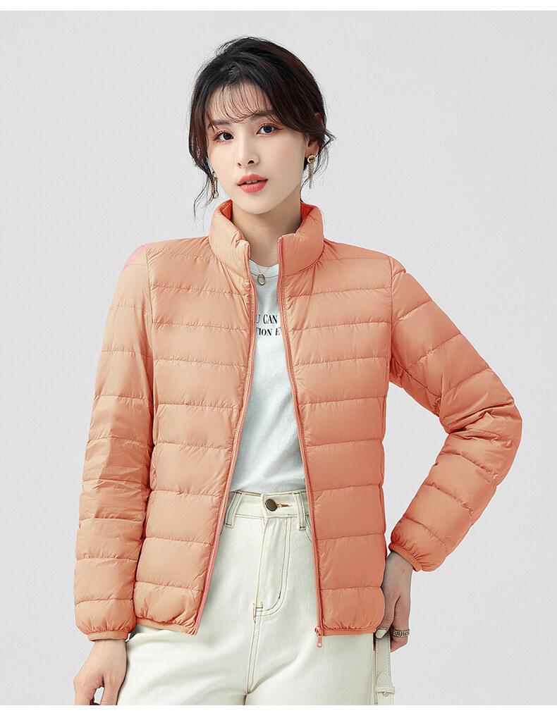 Chaqueta ligera de plumón para primavera y otoño, cálida, nueva, 2023, para mujer, cuello redondo corto, corte ajustado, color camello.