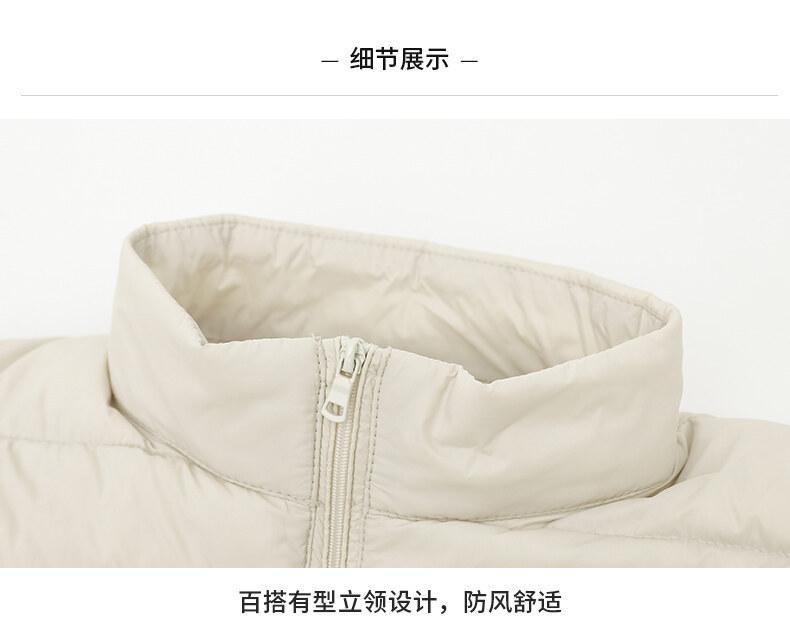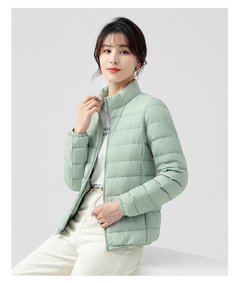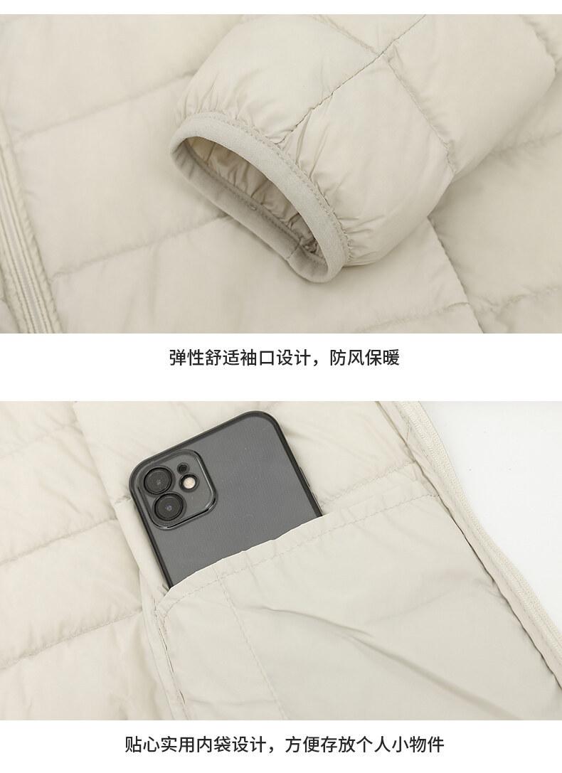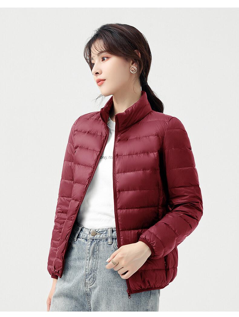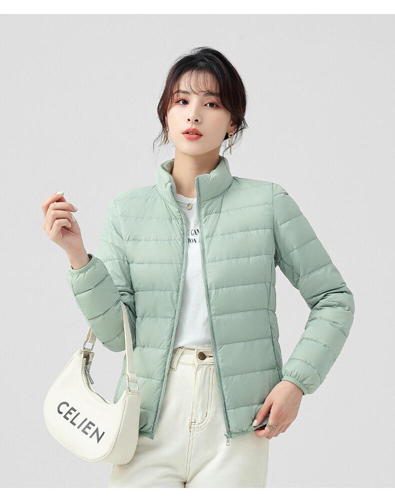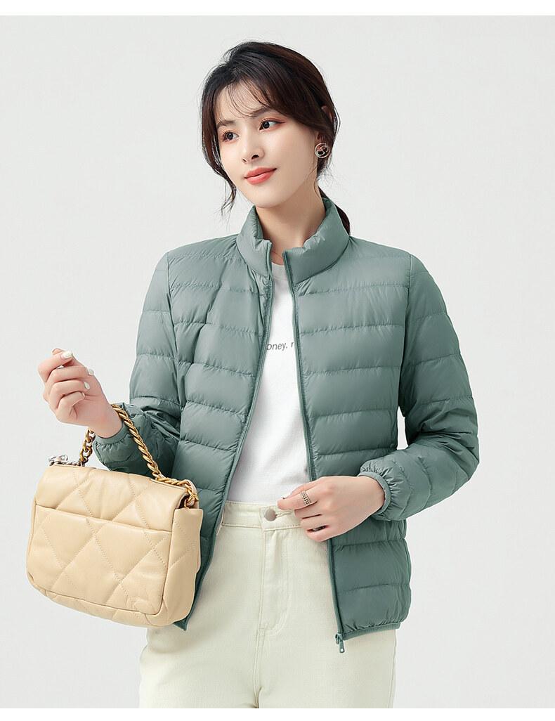 Chaqueta ligera de plumón para primavera y otoño, cálida, nueva, 2023, para mujer, cuello redondo corto, corte ajustado, color camello.