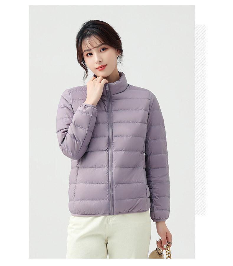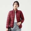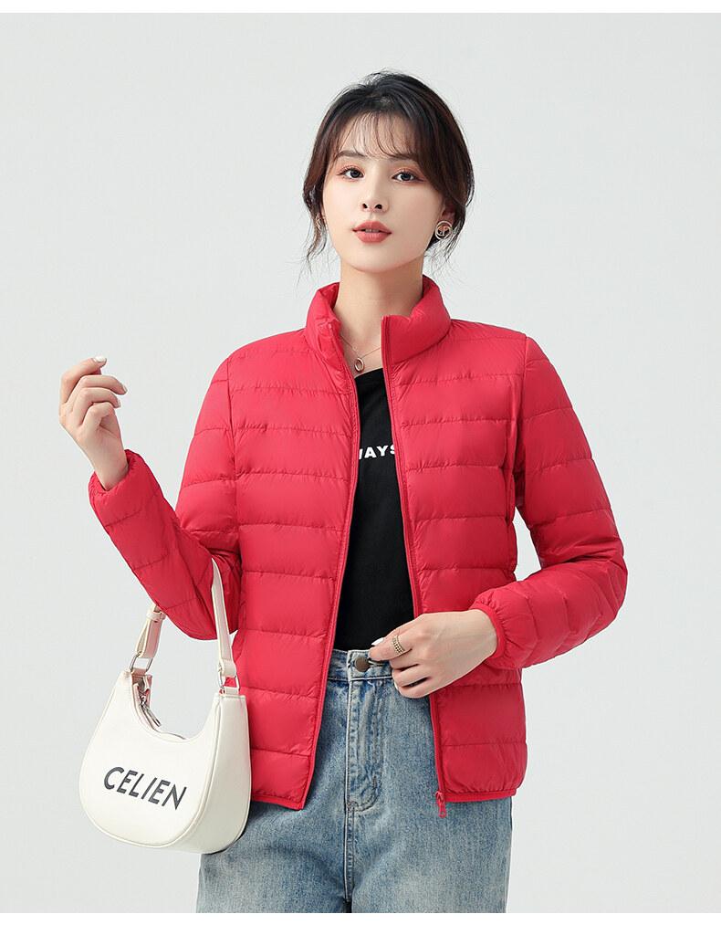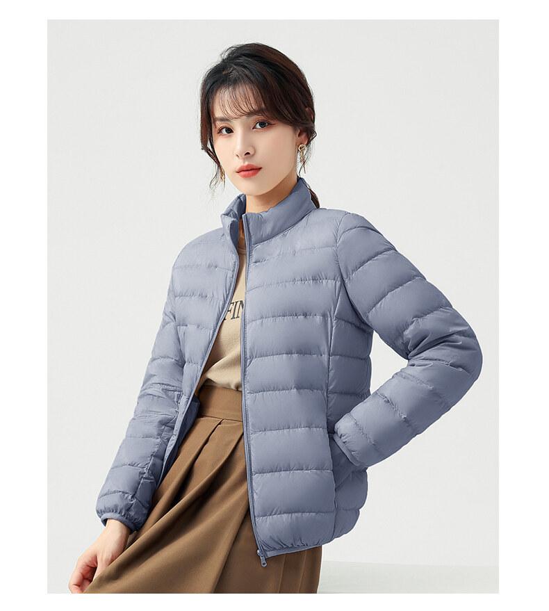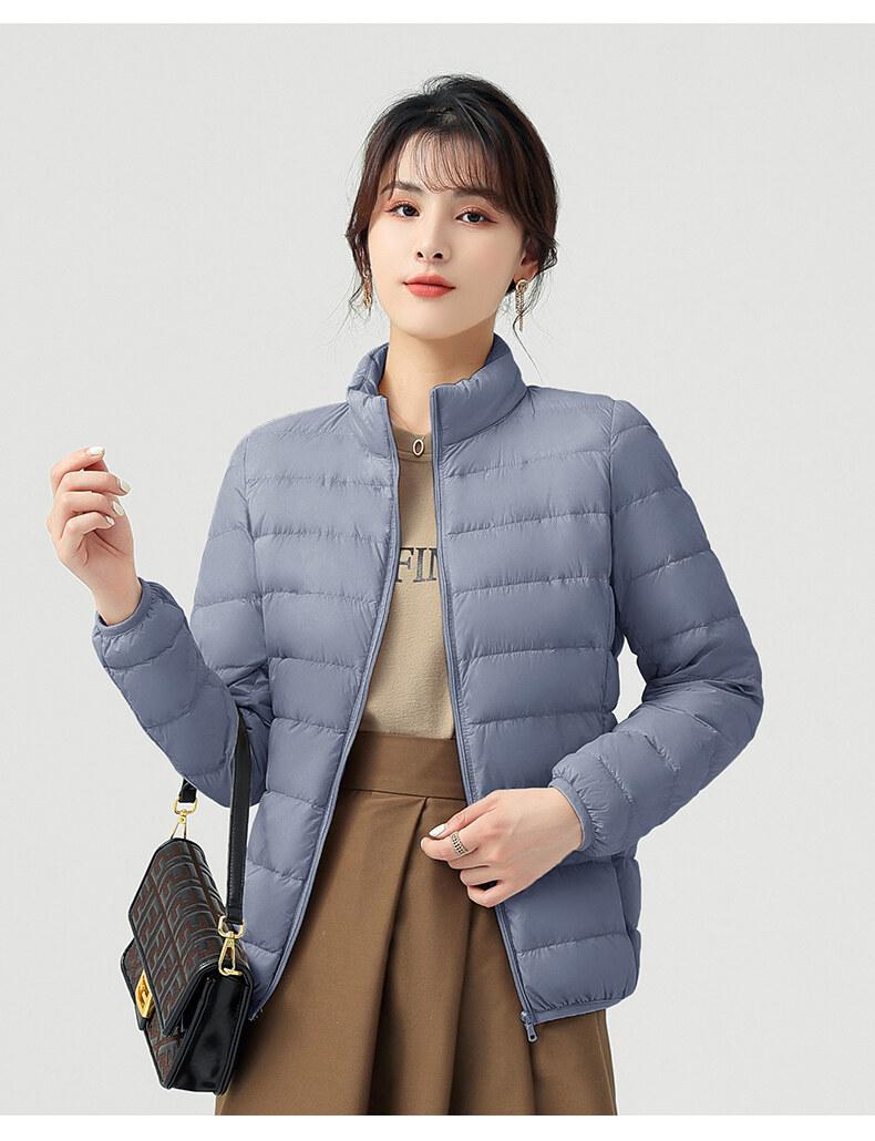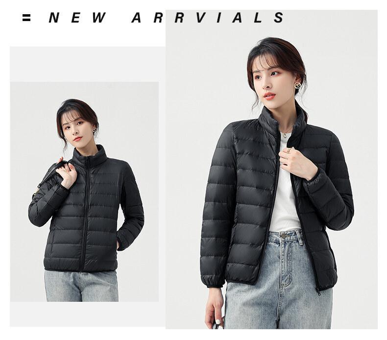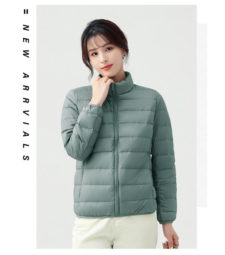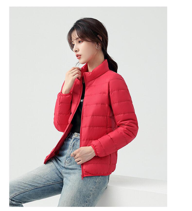 Chaqueta ligera de plumón para primavera y otoño, cálida, nueva, 2023, para mujer, cuello redondo corto, corte ajustado, color camello.