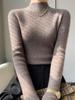 Jersey de cuello alto medio estilo K-Style 24 para otoño e invierno, nuevo estilo, jersey de punto de manga larga, camisa ajustada para mujer, jersey de color puro