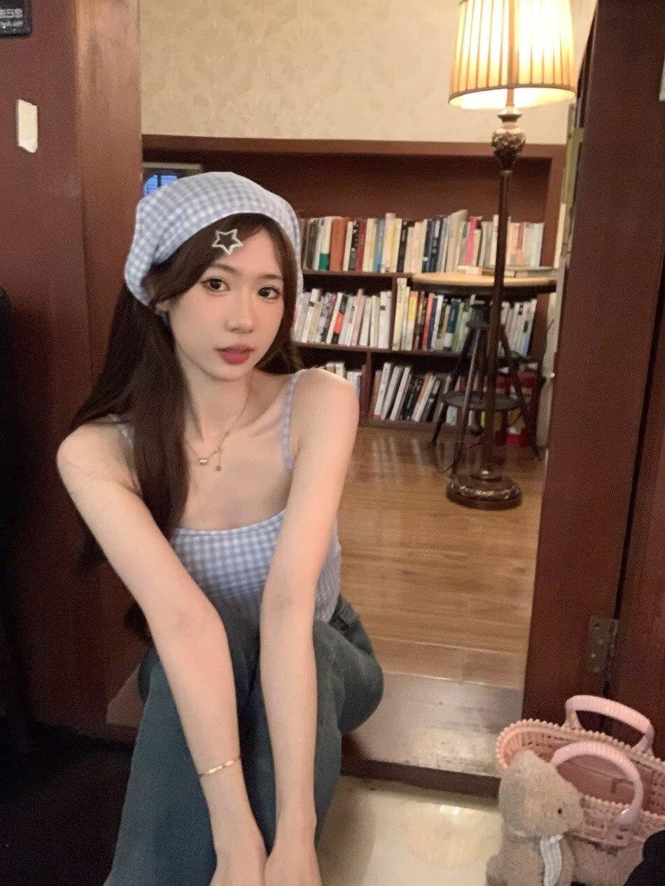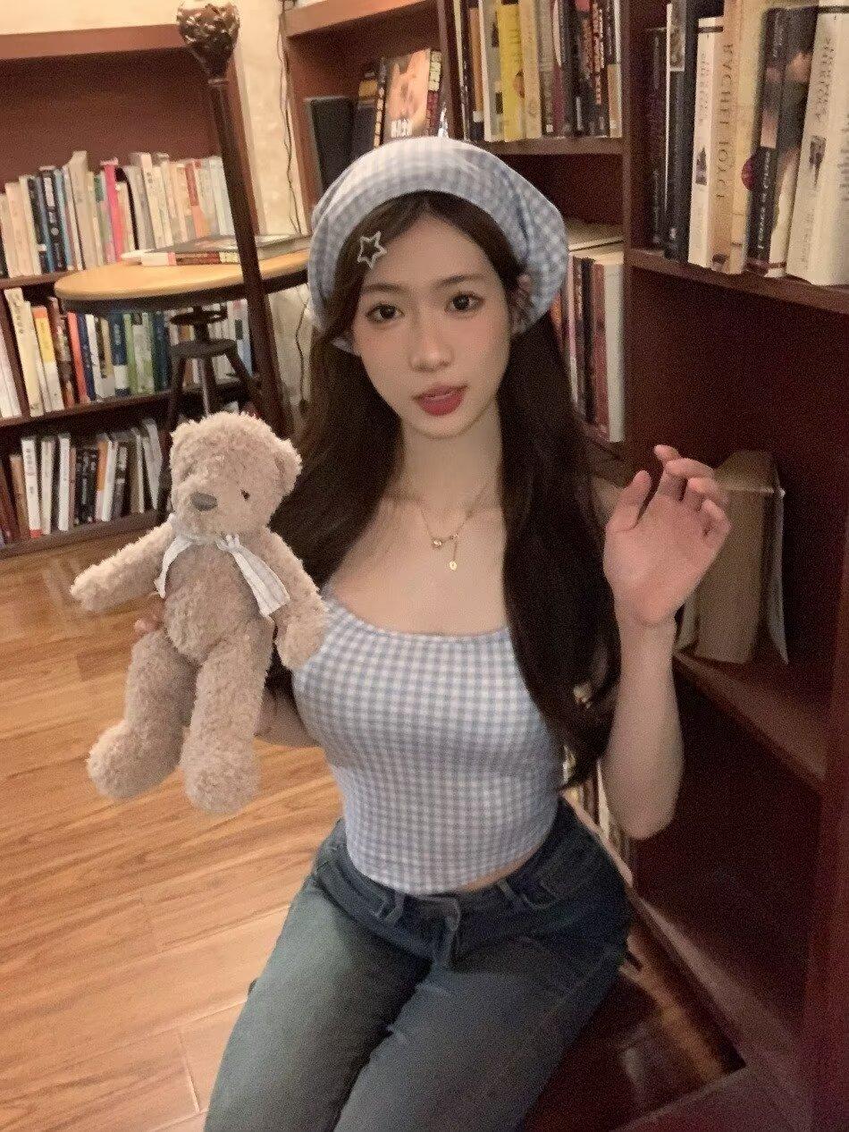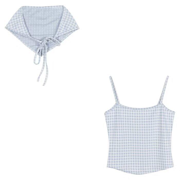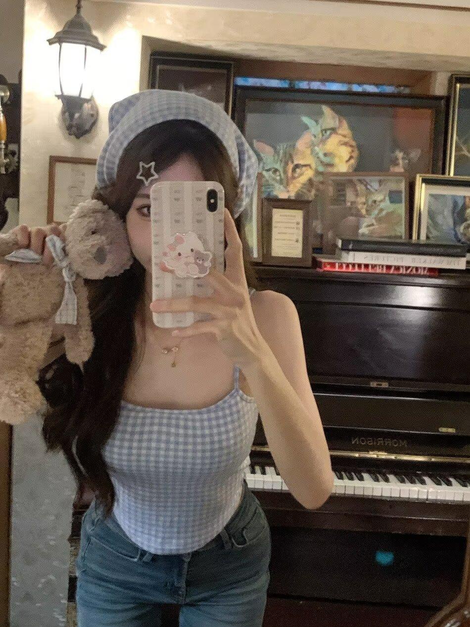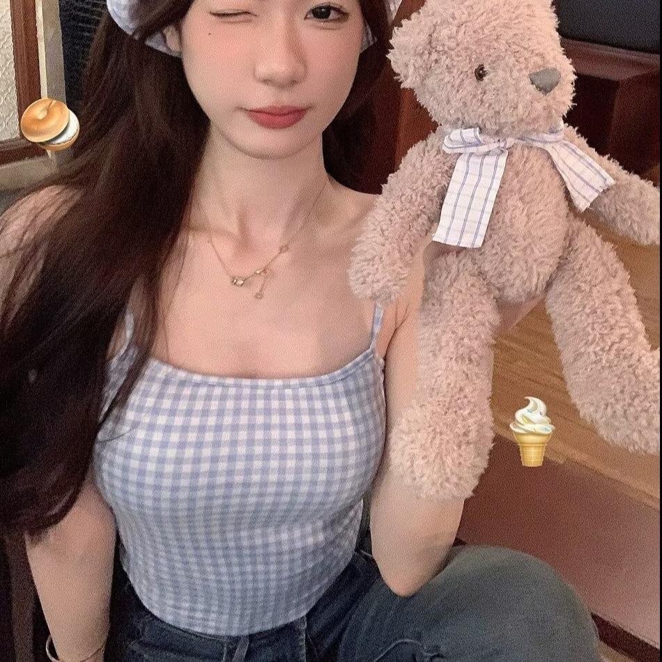 Camisola de Cuadros Sweet Spice Girl para Mujer Verano Puro Fresco Sexy Elástica Corta Interior para Ropa Exterior