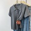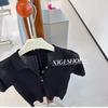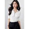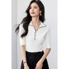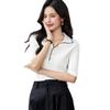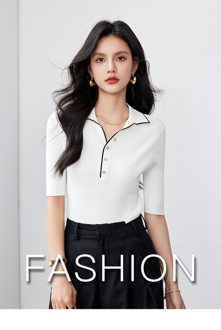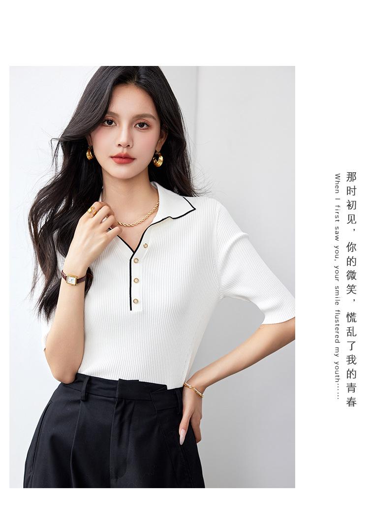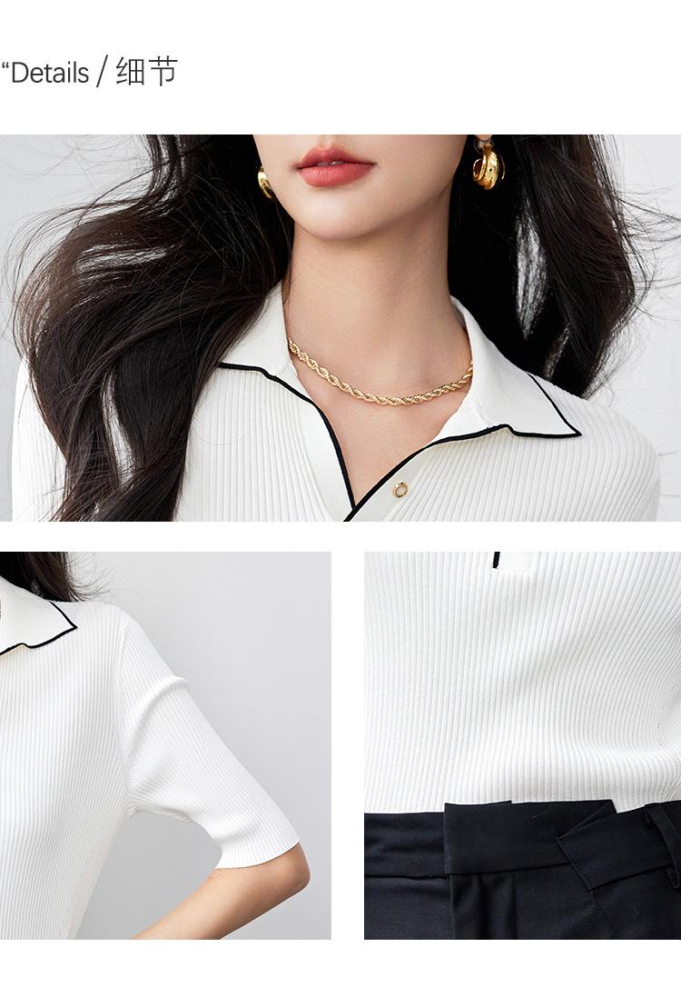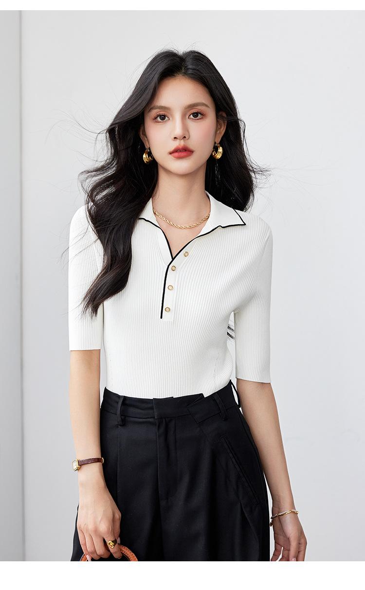 Suéter de verano de manga corta con solapa vertical y combinación de colores para mujer, top adelgazante estilo francés, polo estilo americano