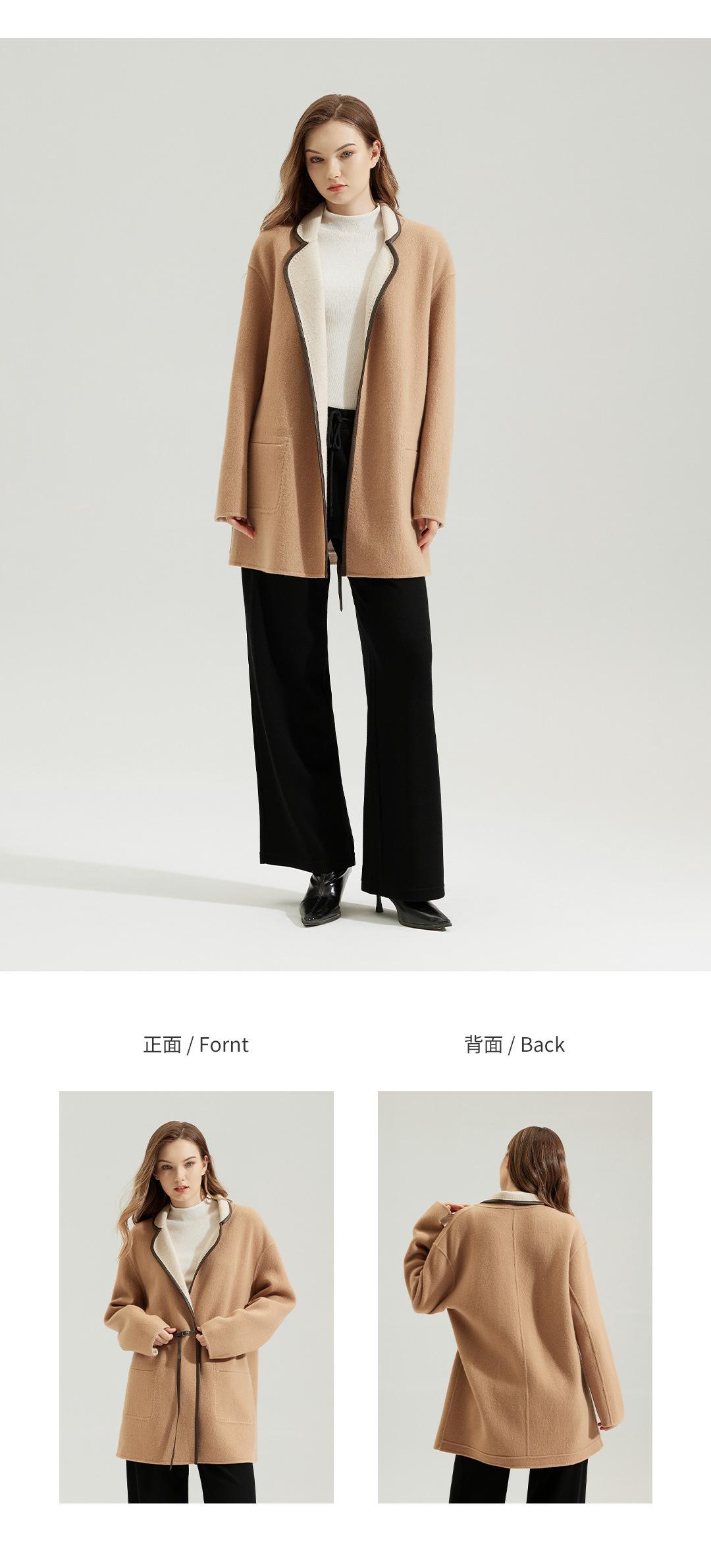 Abrigo de lana con cuello de traje otoño e invierno 2024, abrigo de piel mágica, abrigo de lana de doble cara seca, abrigo pequeño