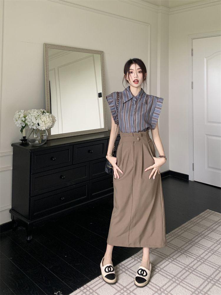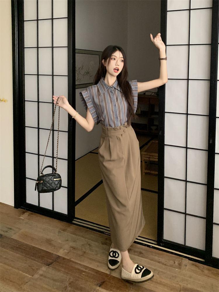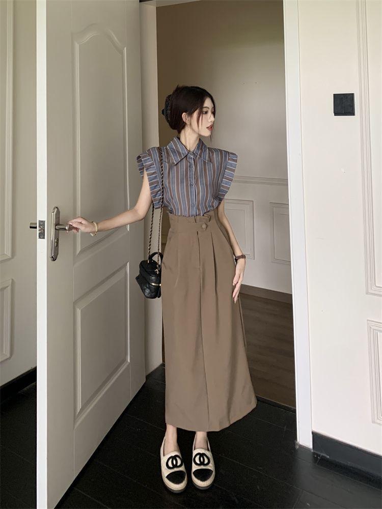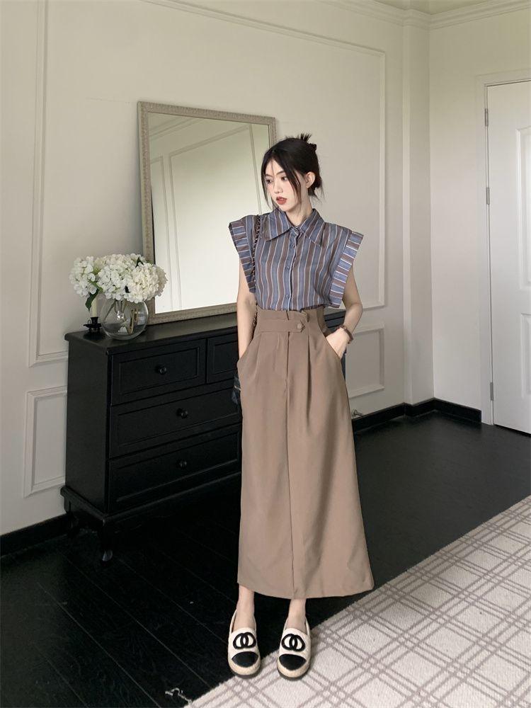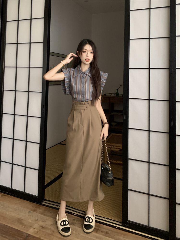 Stripe Shirt, Khaki Skirt, Striped shirt khakis skirt