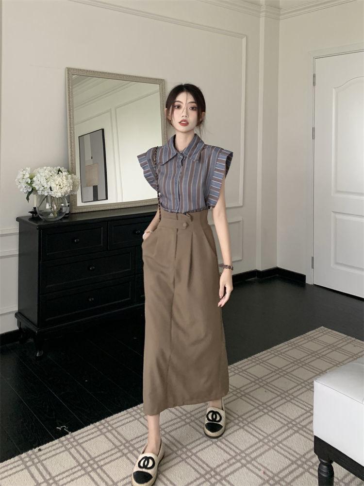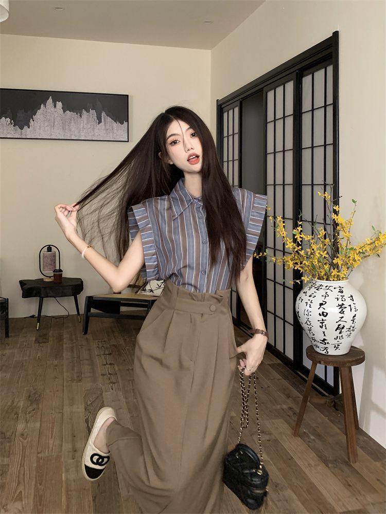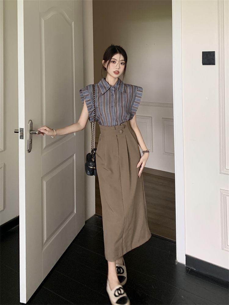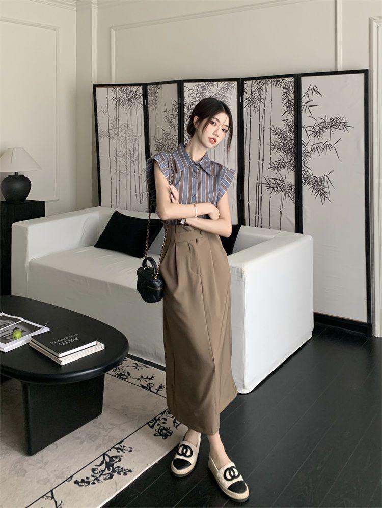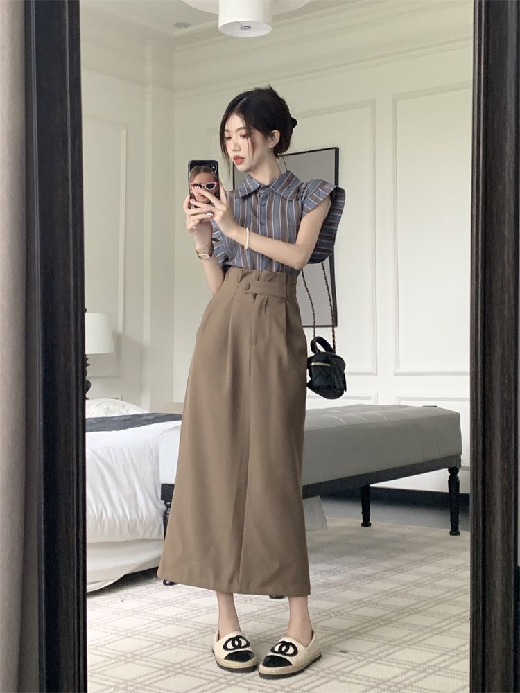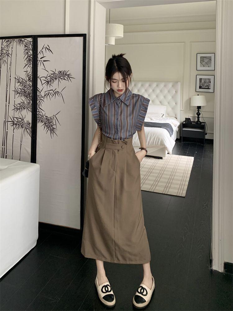 Stripe Shirt, Khaki Skirt, Striped shirt khakis skirt