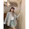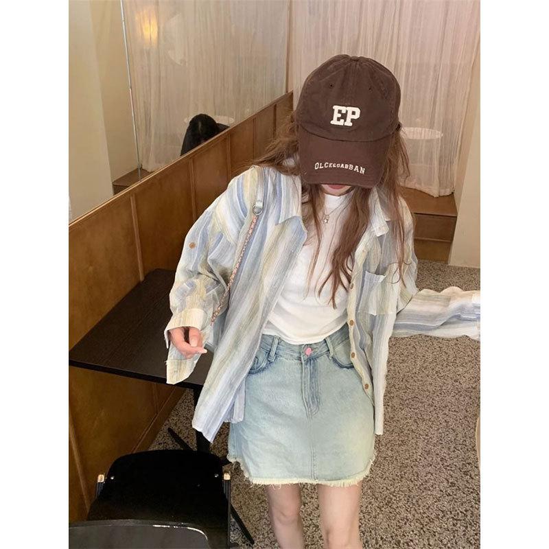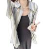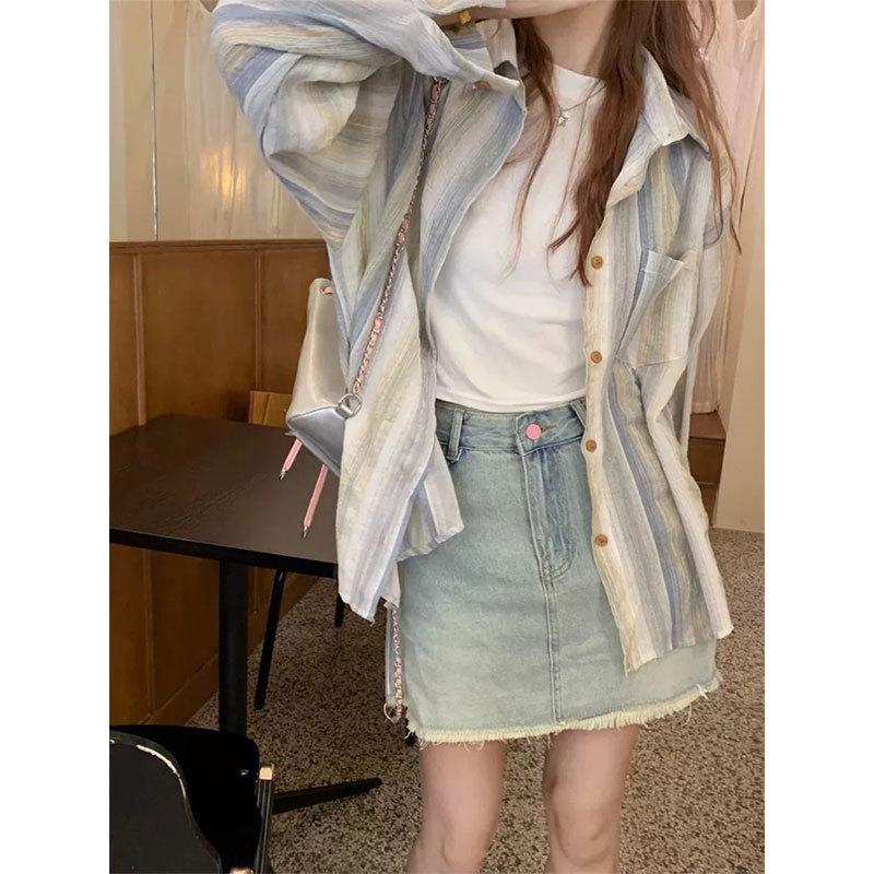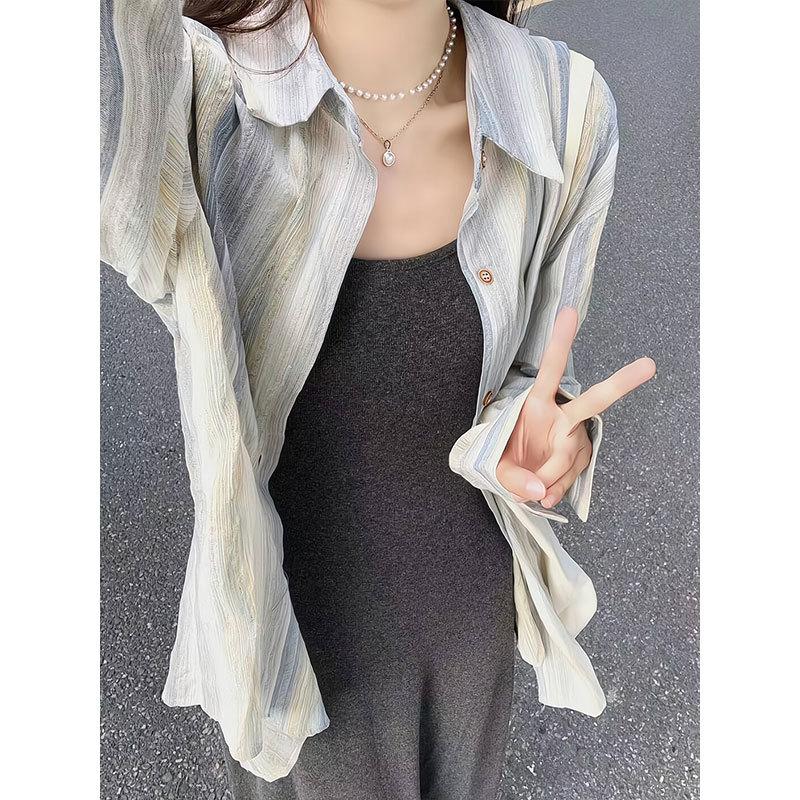 Camisa de rayas con protector solar, chaqueta de verano, nuevo estilo holgado, elegante, cuello polo, cárdigan suelto, top de principios de otoño, ropa de mujer