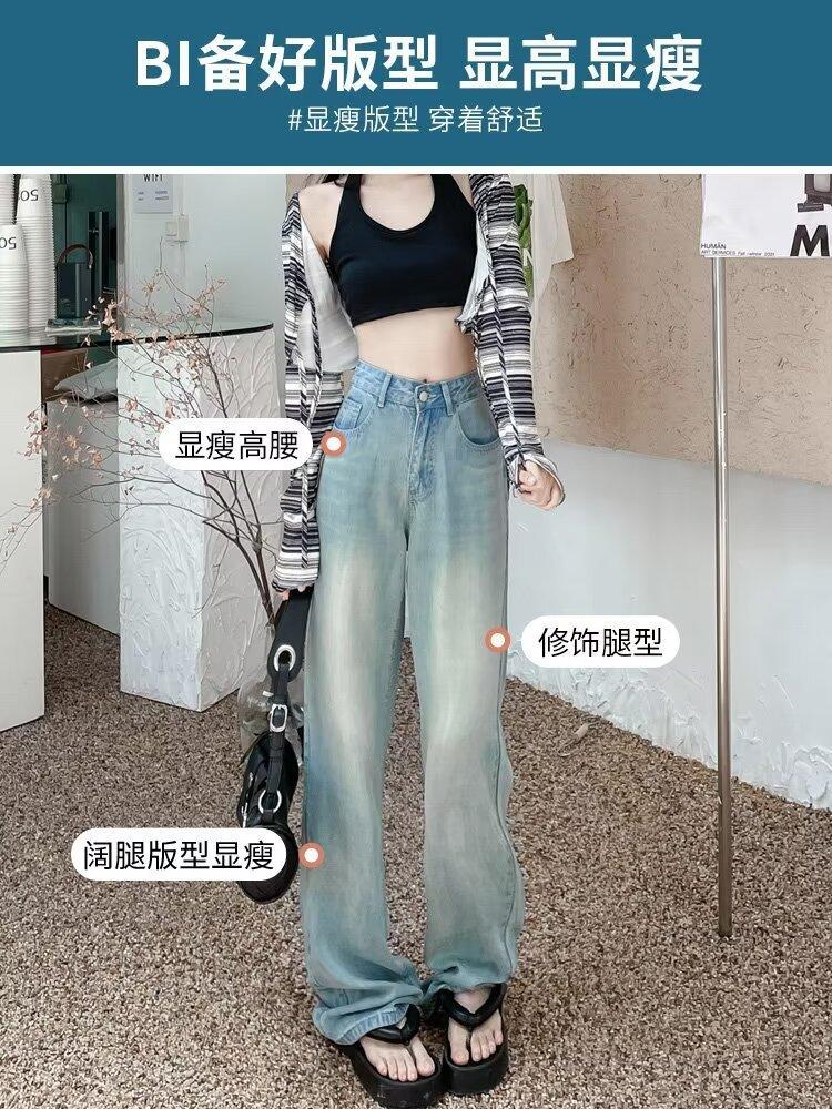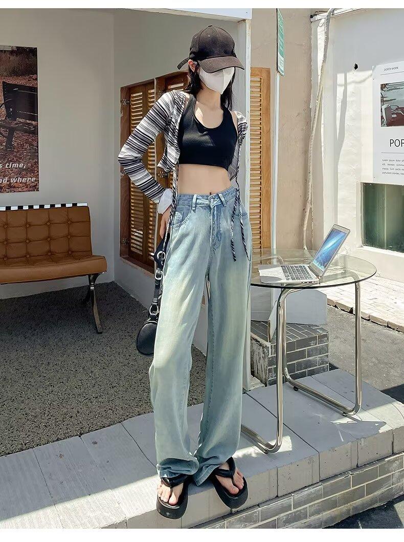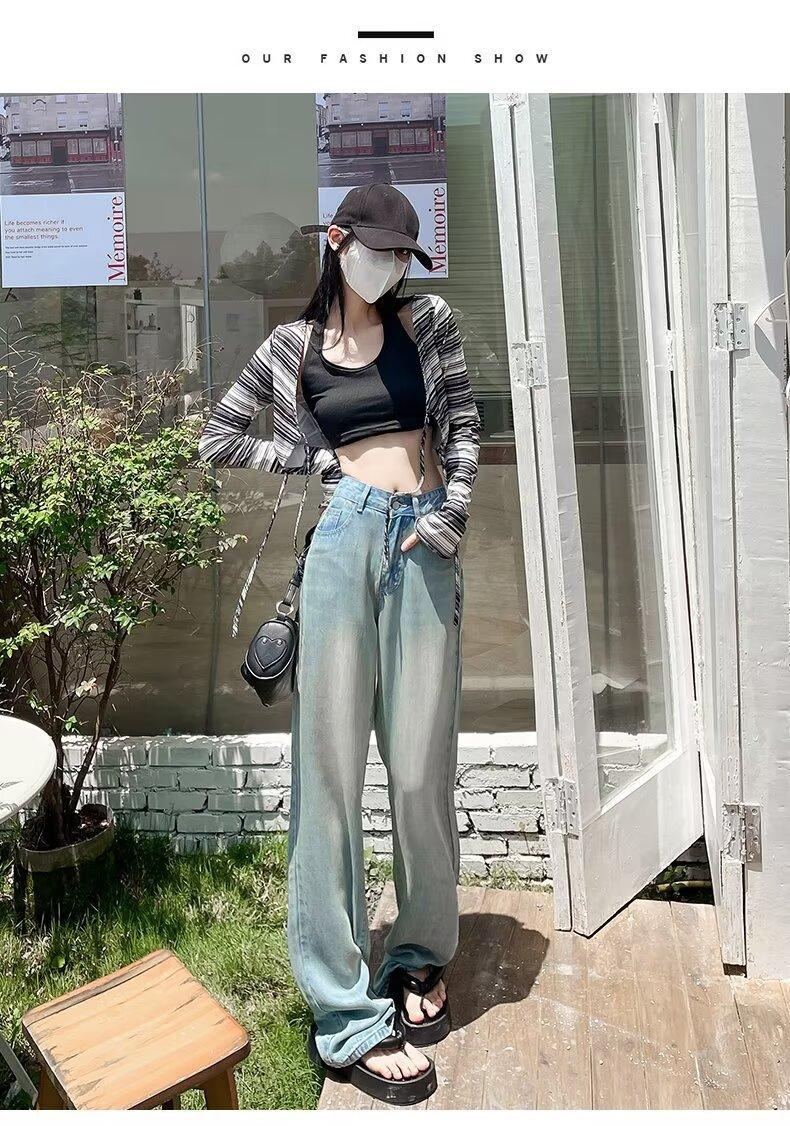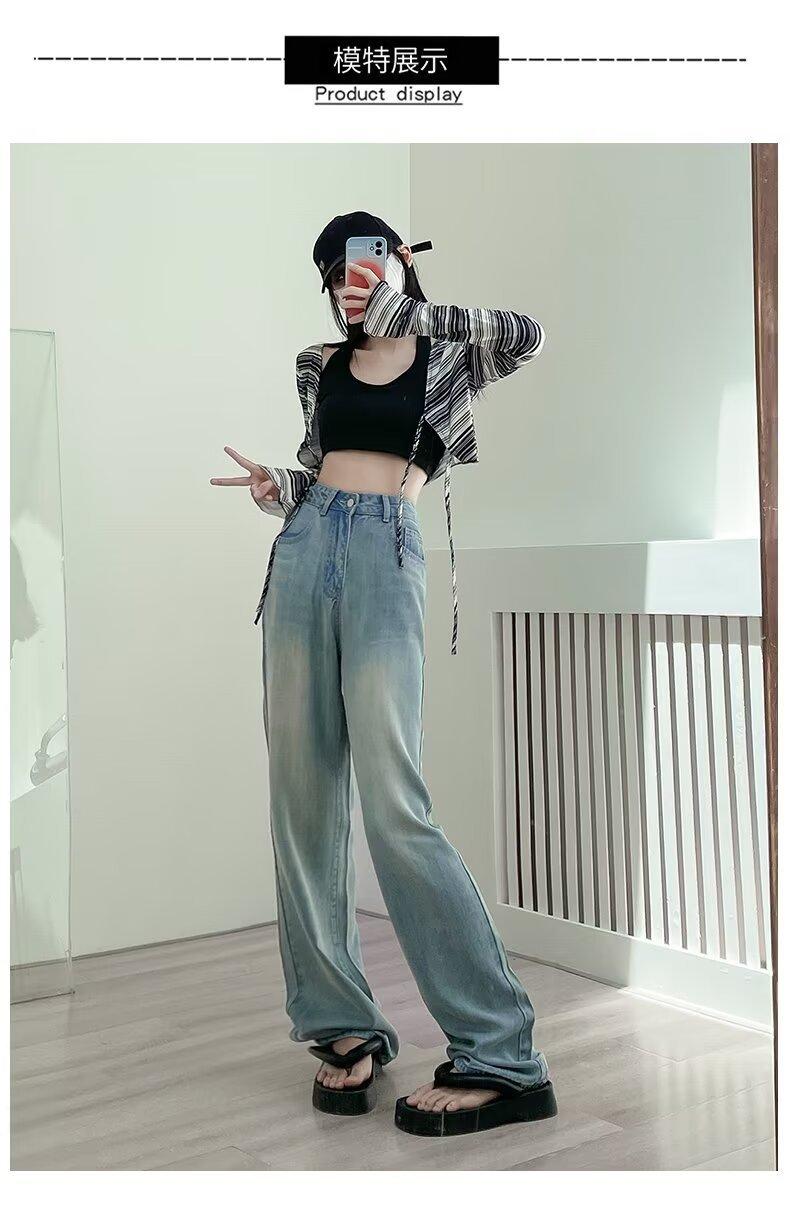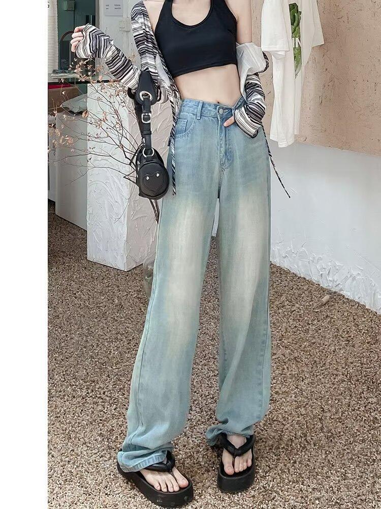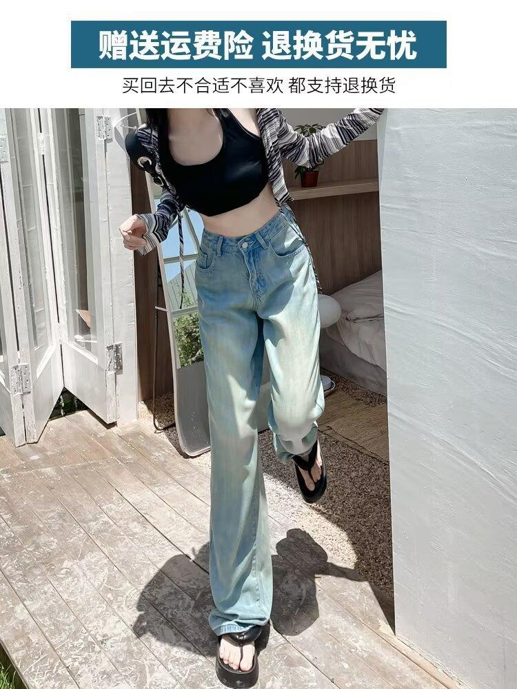 Pantalones vaqueros Tencel finos de estilo americano, retro, holgados, de pierna ancha y rectos, 2024