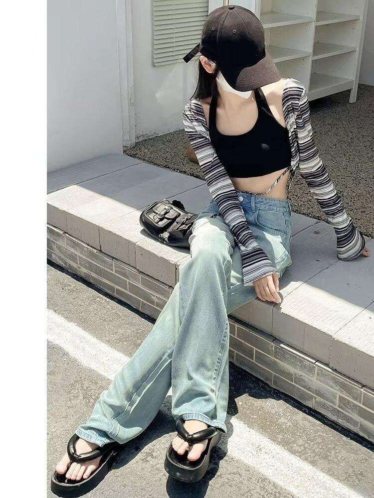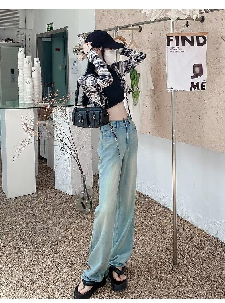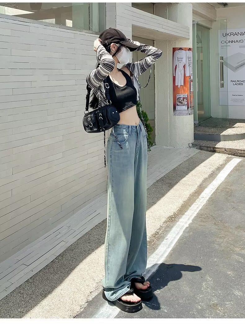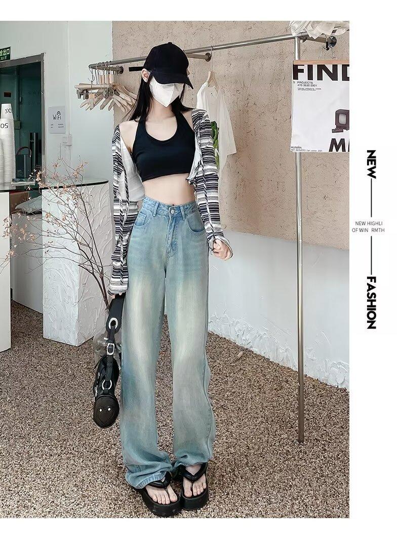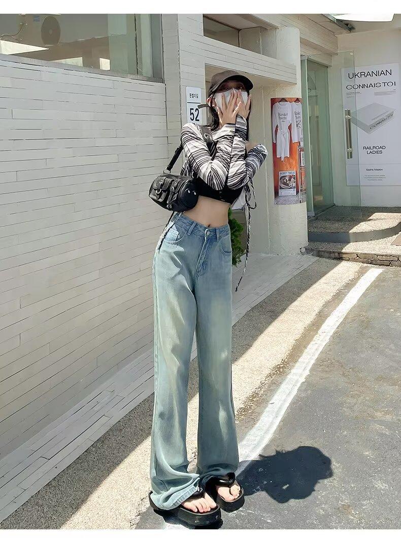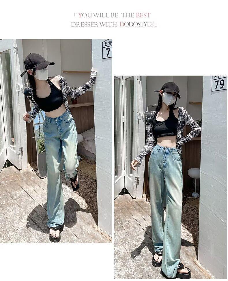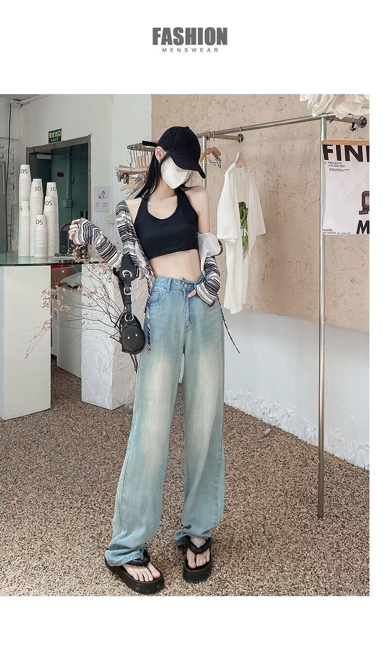 Pantalones vaqueros Tencel finos de estilo americano, retro, holgados, de pierna ancha y rectos, 2024