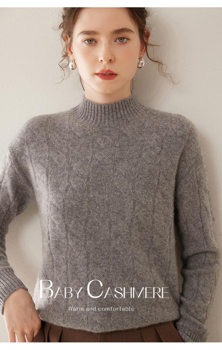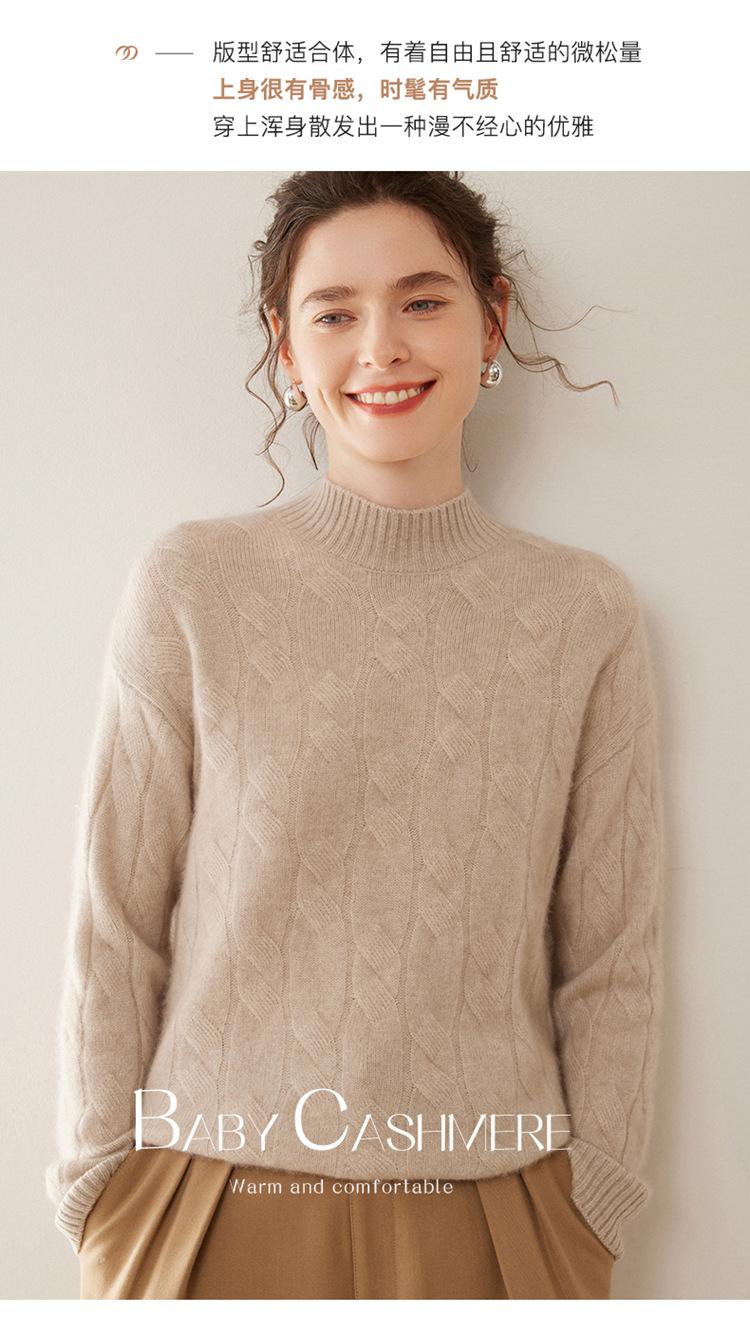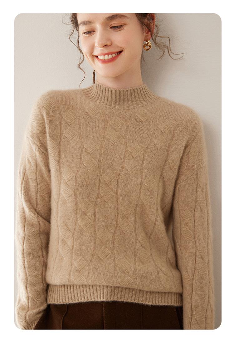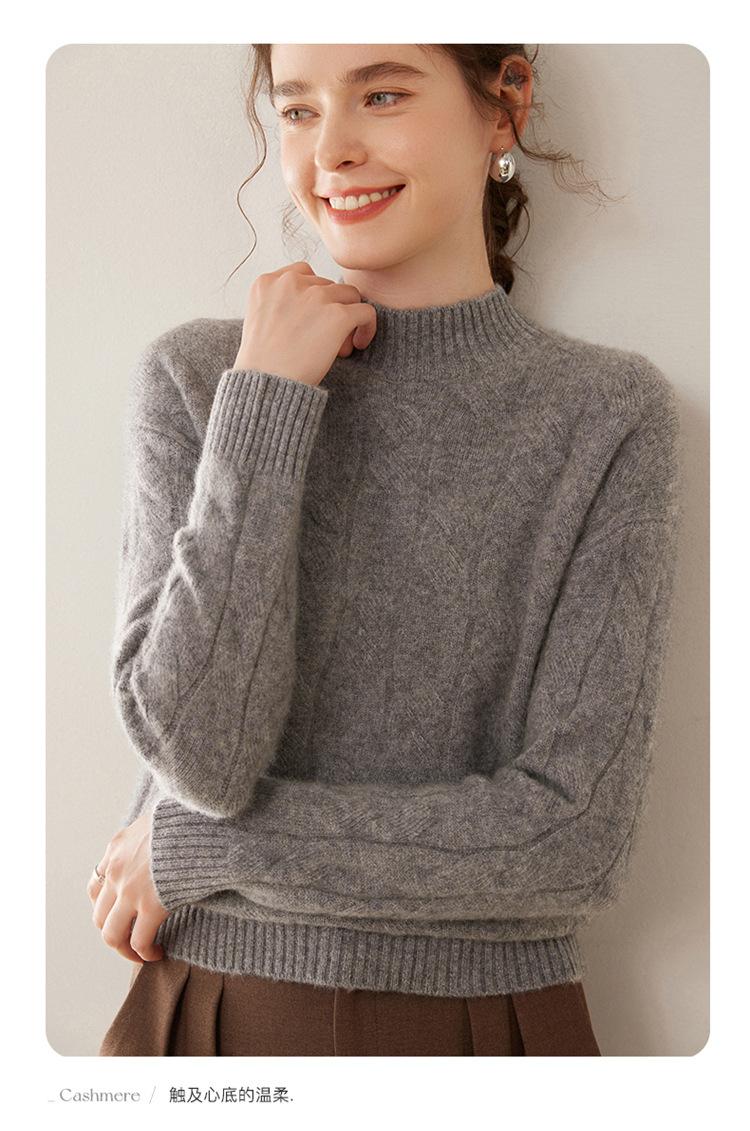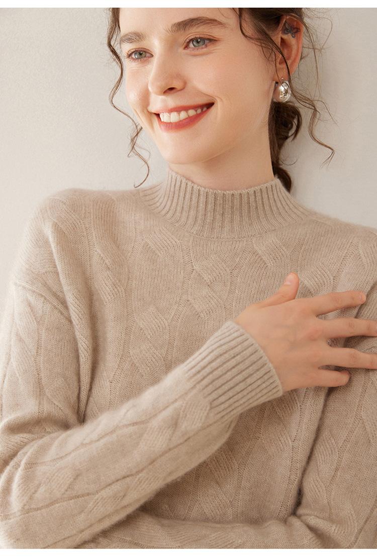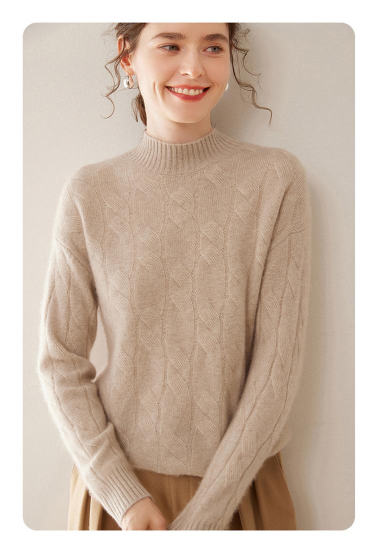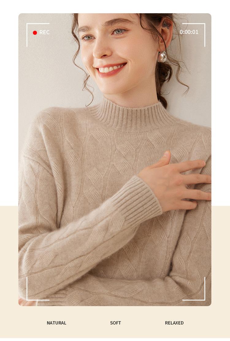 Suéter de cuello alto medio para mujer, suéter de cachemira de doble grosor, holgado, a la moda, combinable, cómodo y agradable para la piel, cálido.