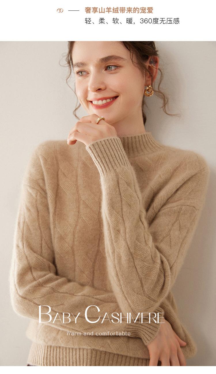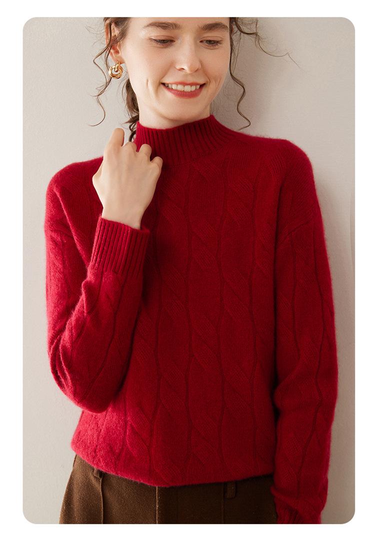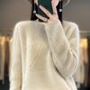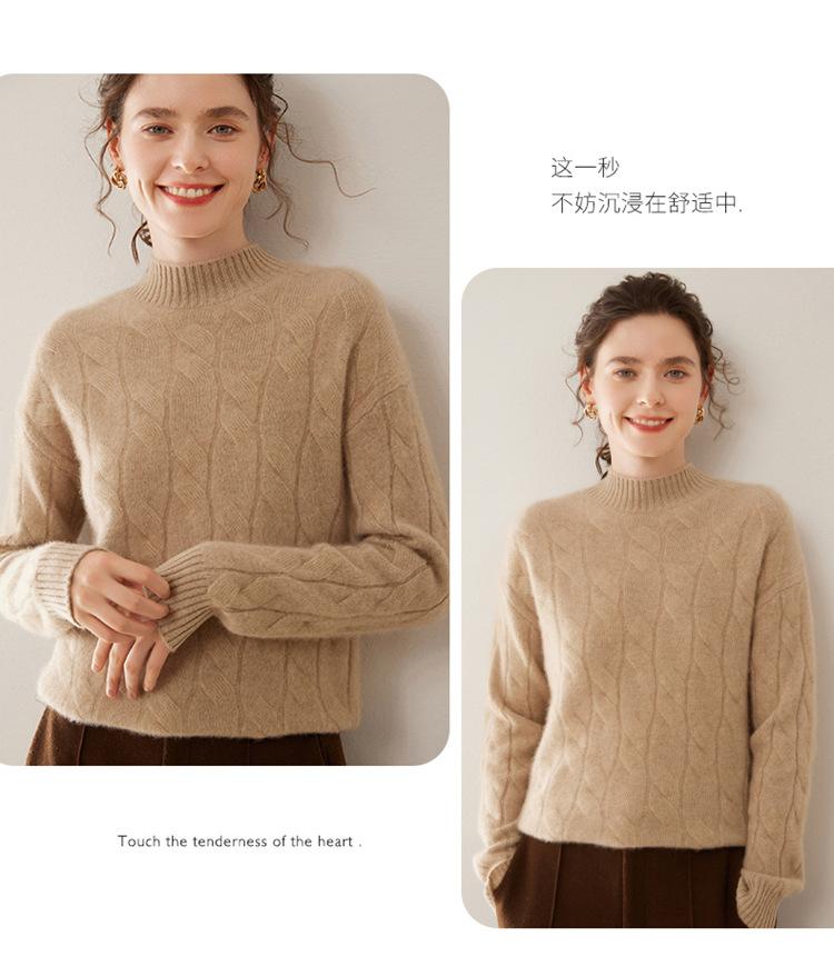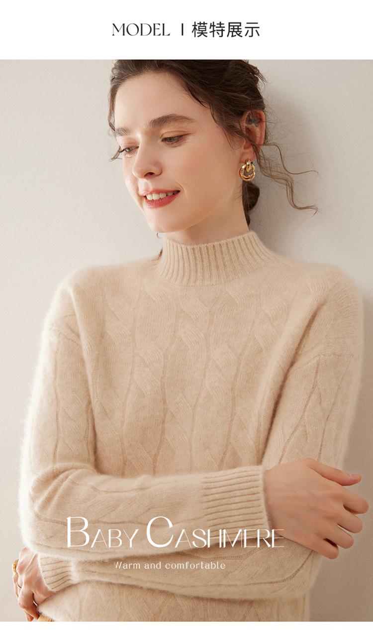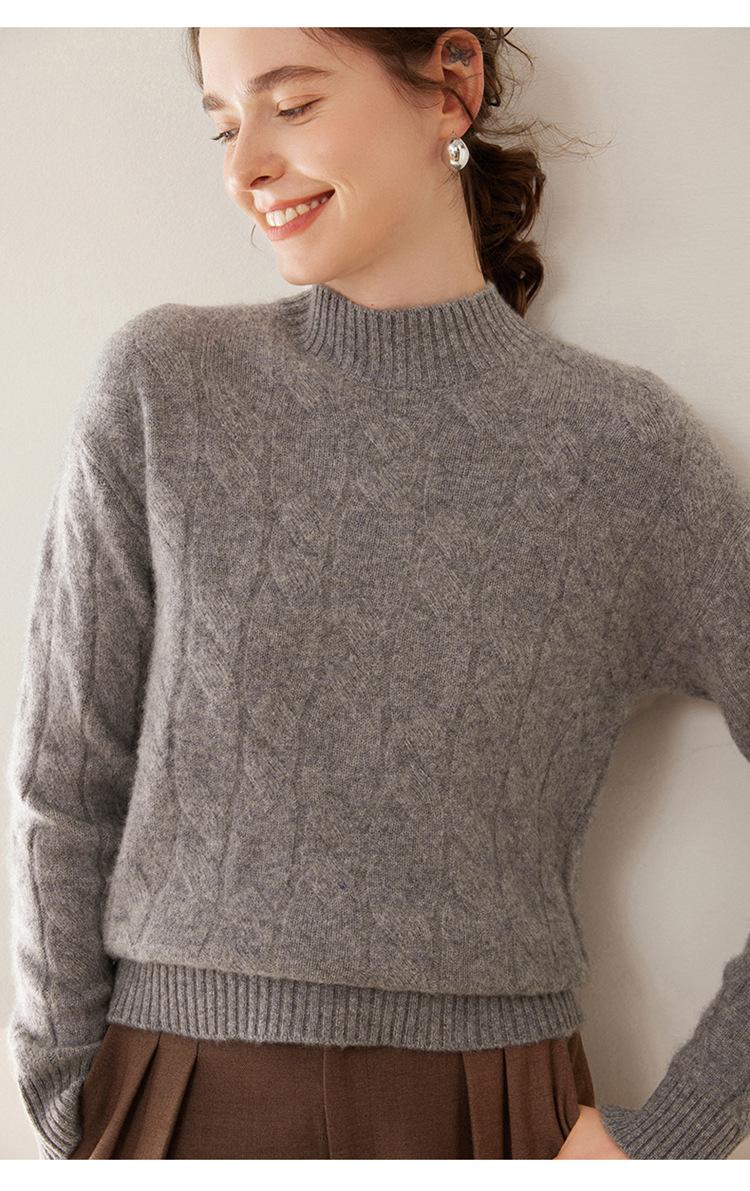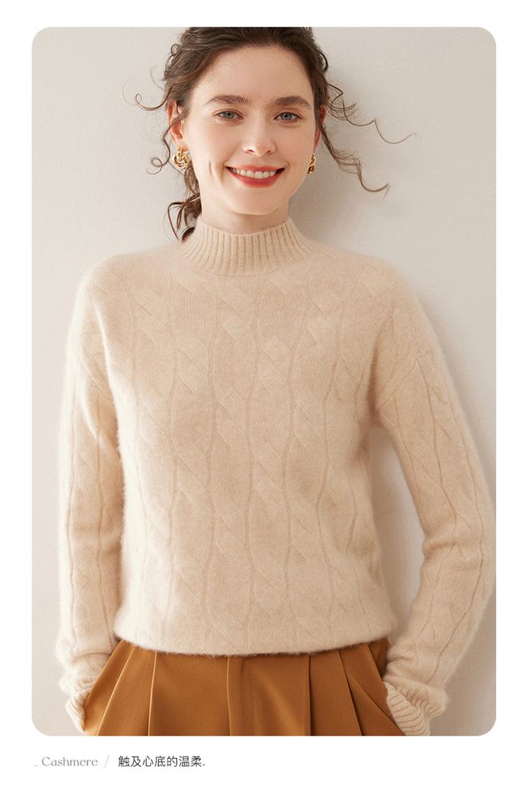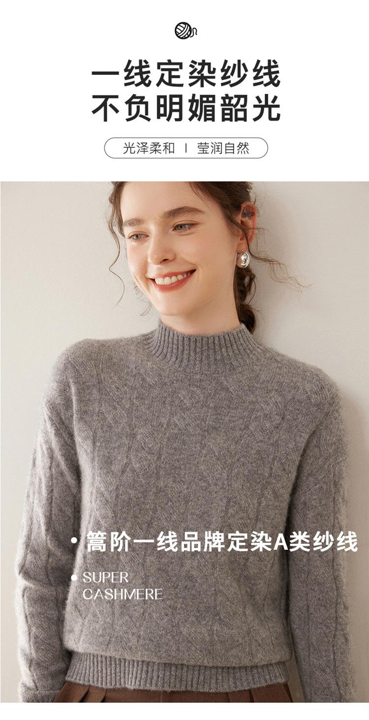 Suéter de cuello alto medio para mujer, suéter de cachemira de doble grosor, holgado, a la moda, combinable, cómodo y agradable para la piel, cálido.