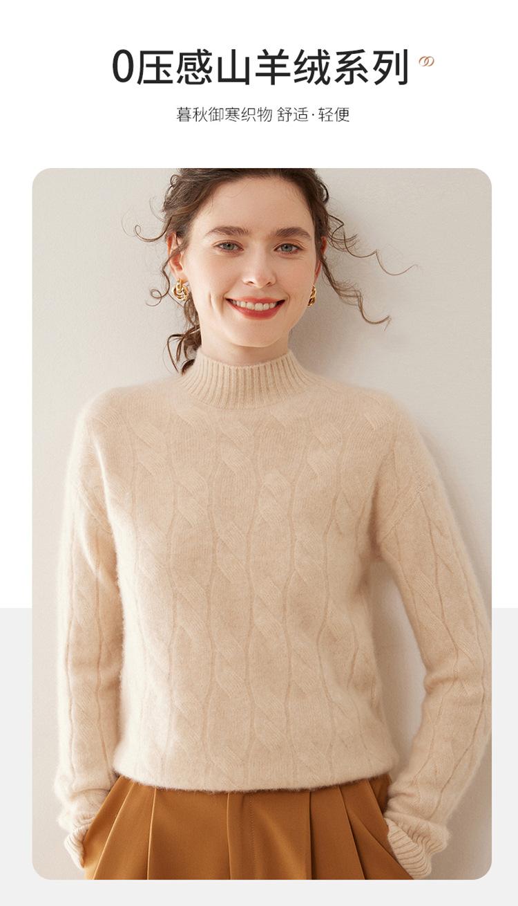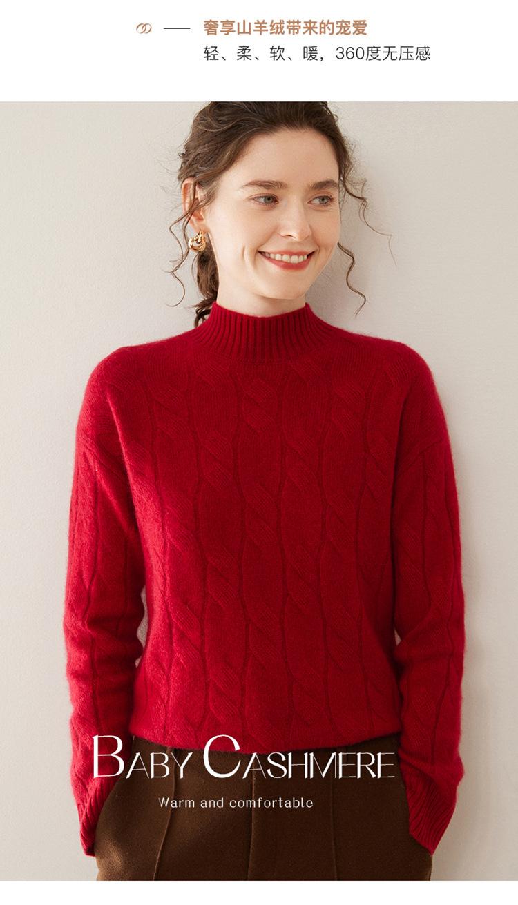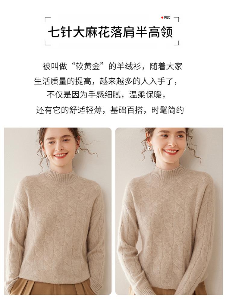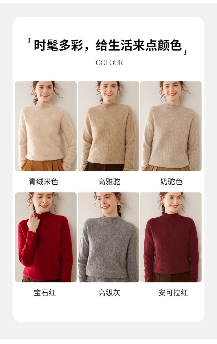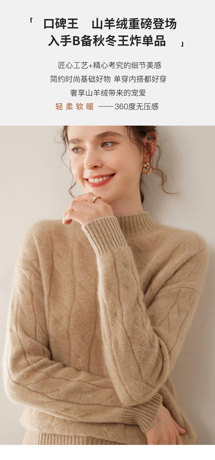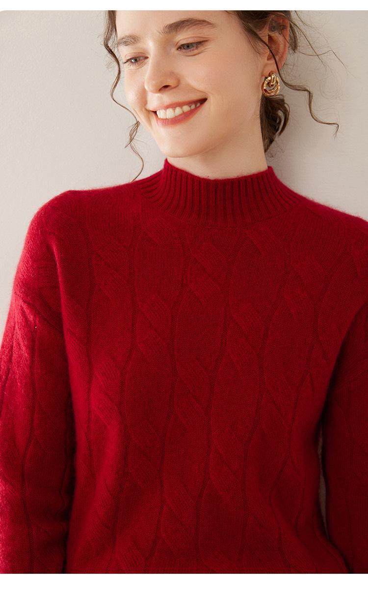 Suéter de cuello alto medio para mujer, suéter de cachemira de doble grosor, holgado, a la moda, combinable, cómodo y agradable para la piel, cálido.