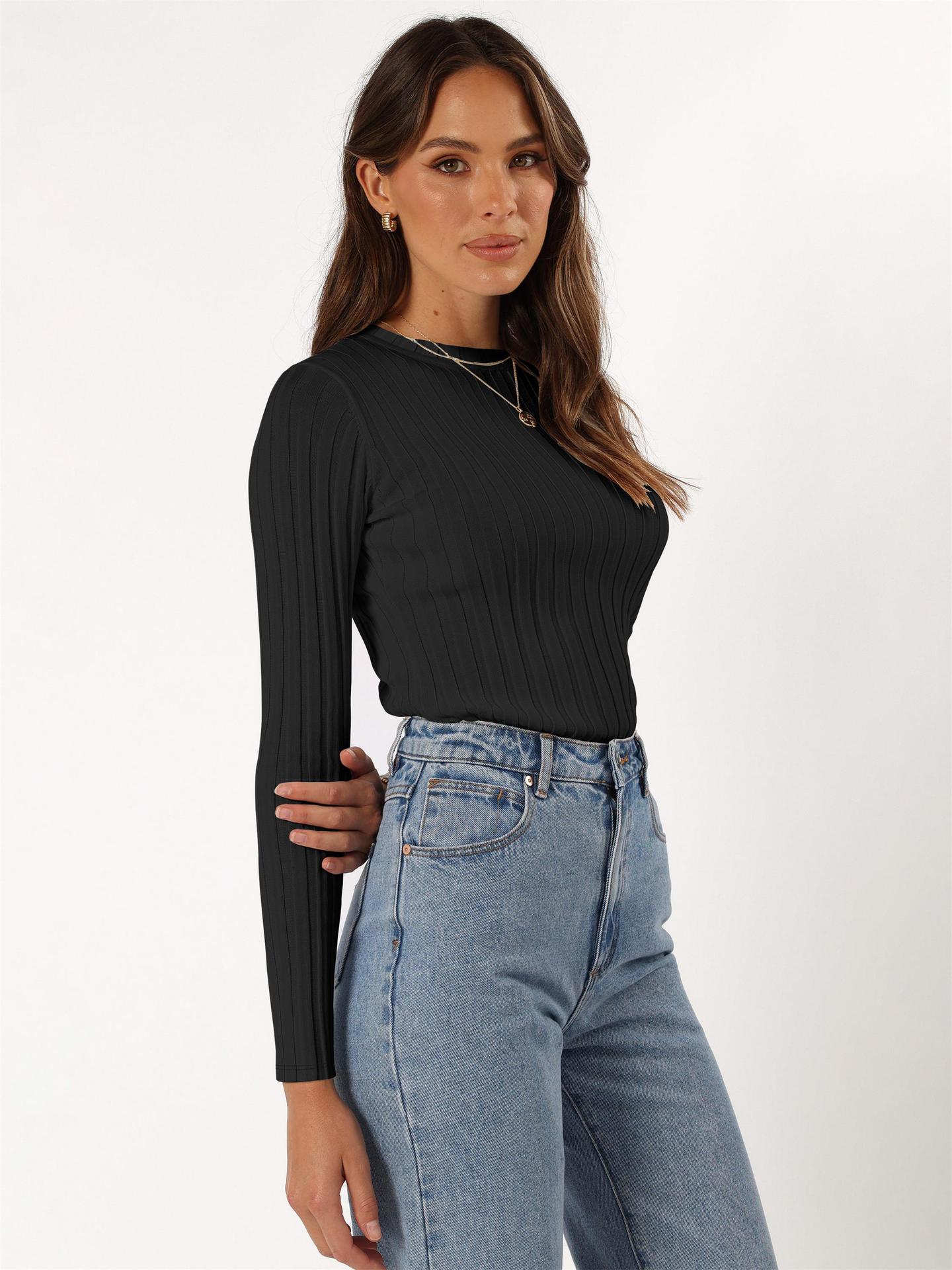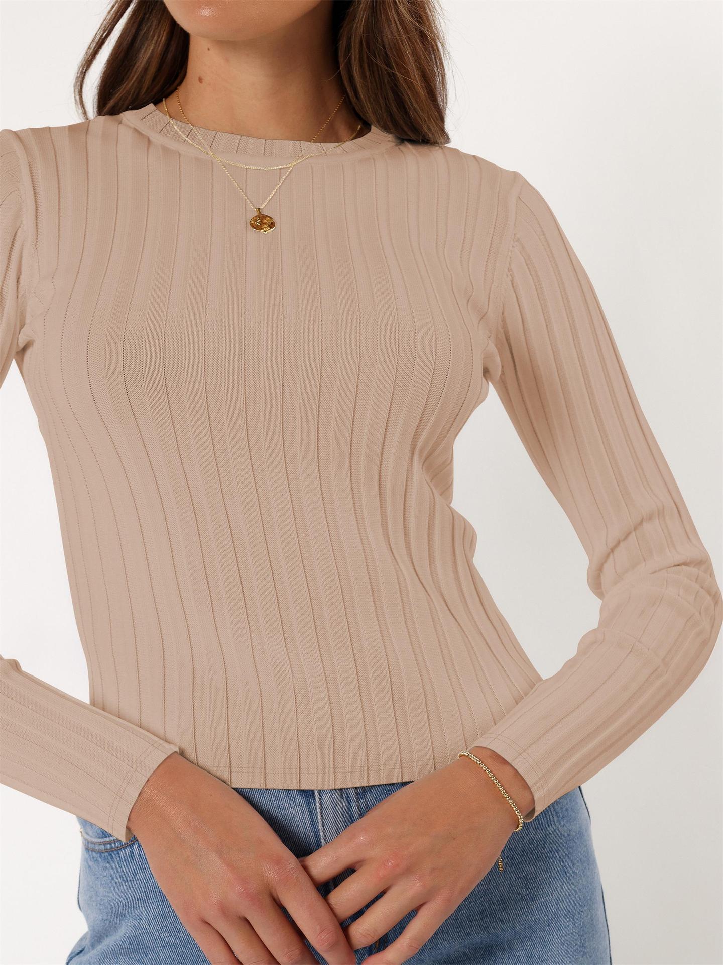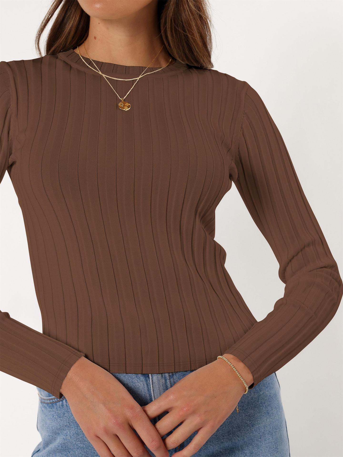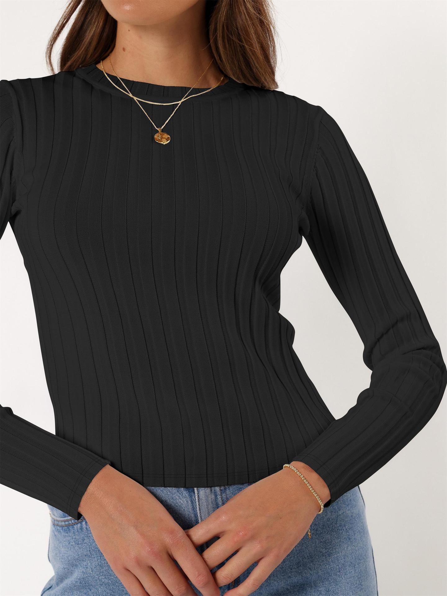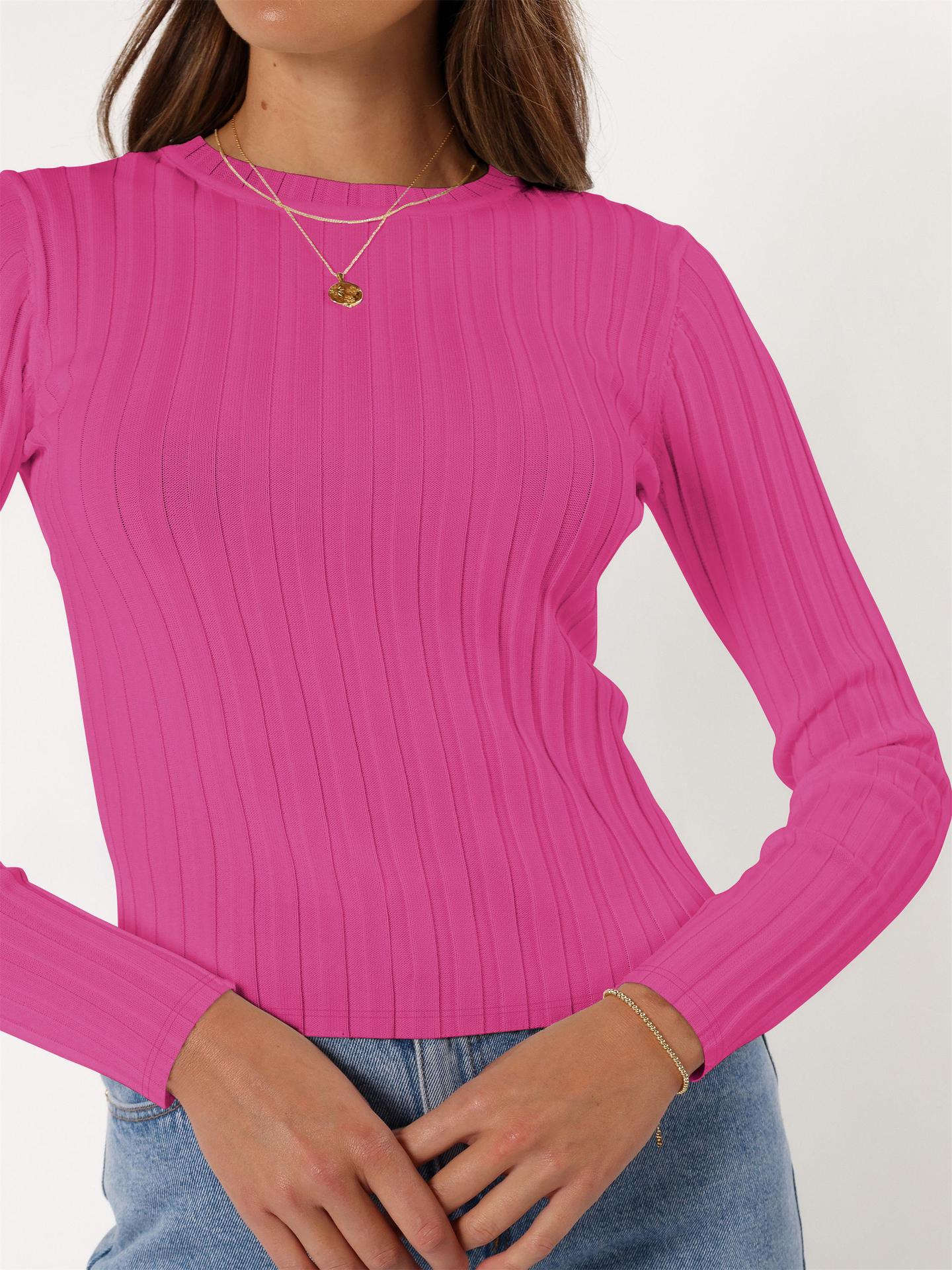 Nuevo Estilo Otoñal de Amazon Hottie Europeo y Americano Tejido de Punto para Mujer, Corte Slim, Top de Cuello Redondo Acanalado, Moderno y Versátil