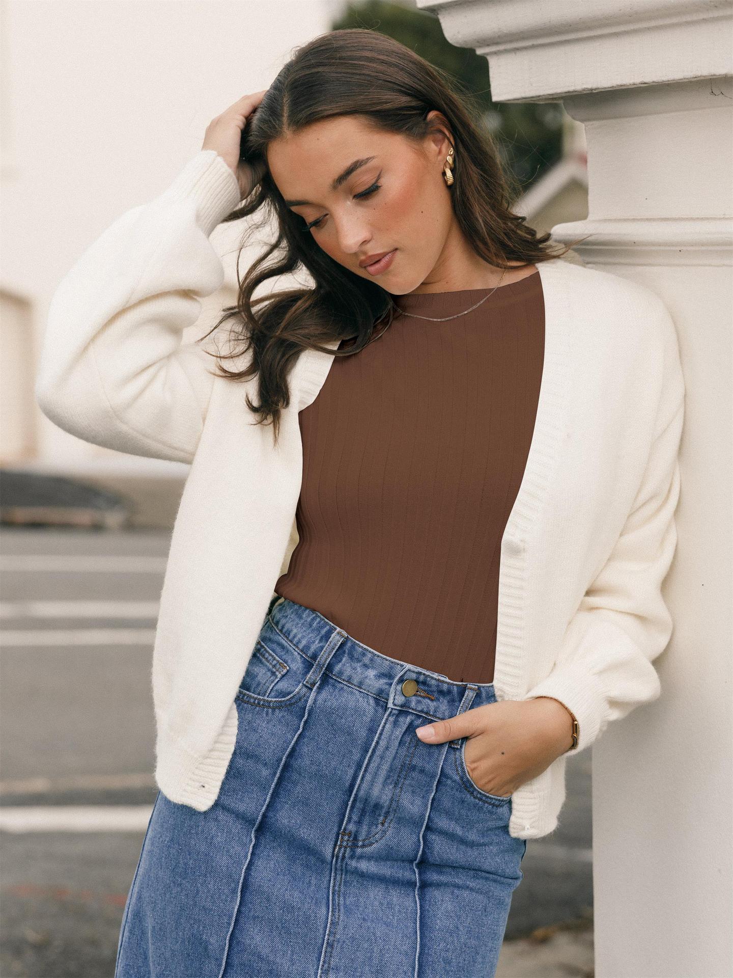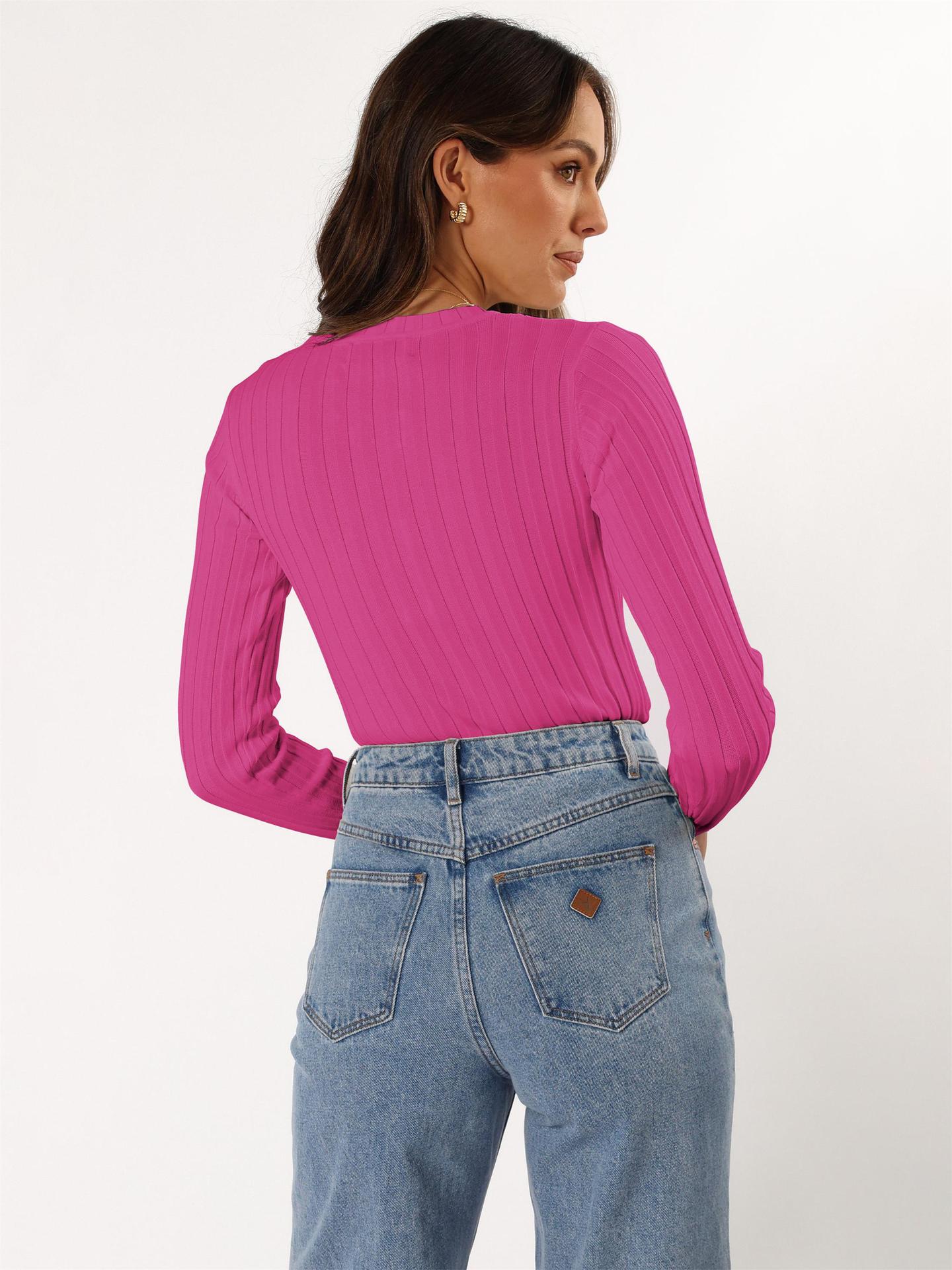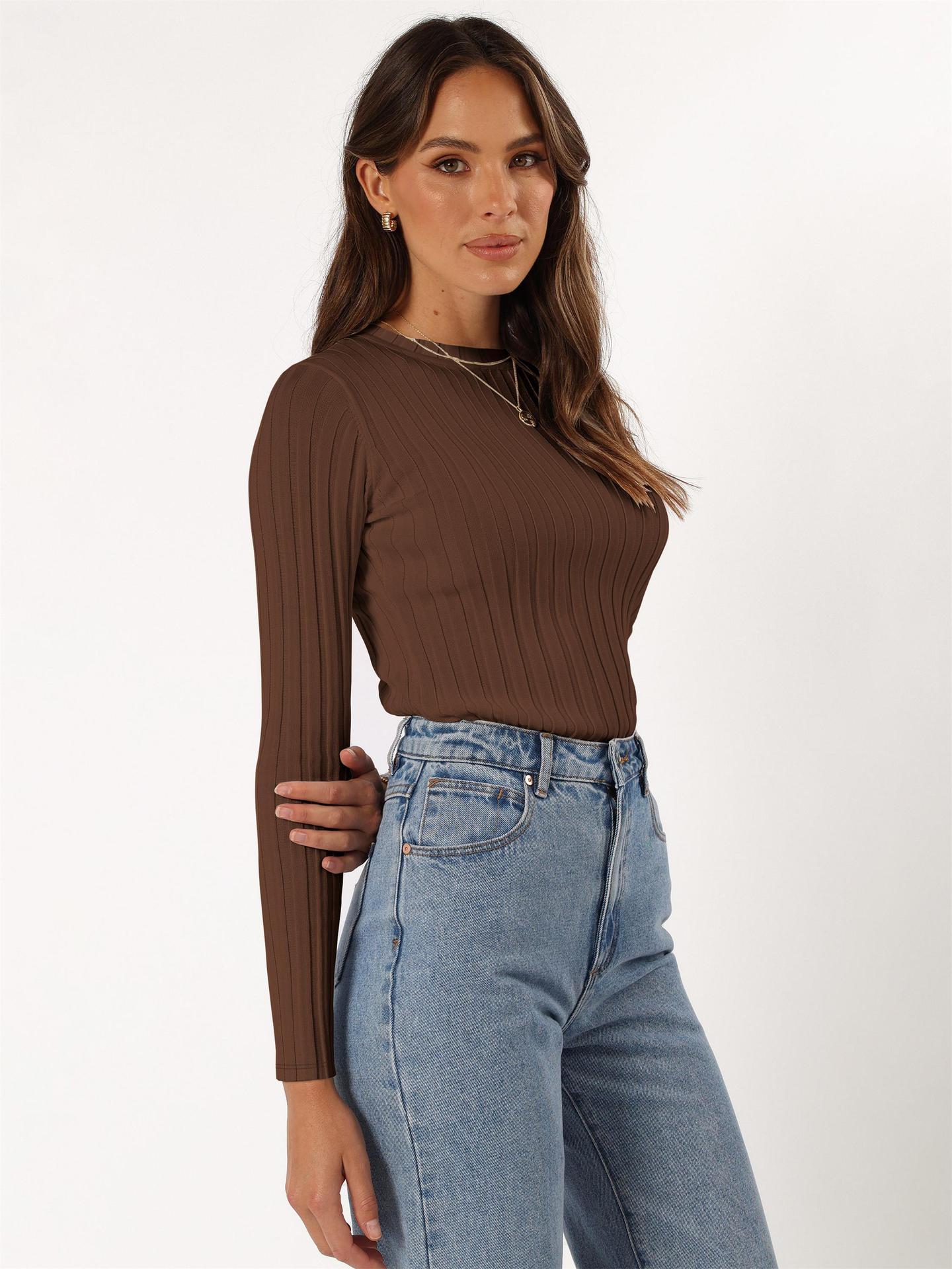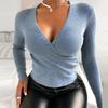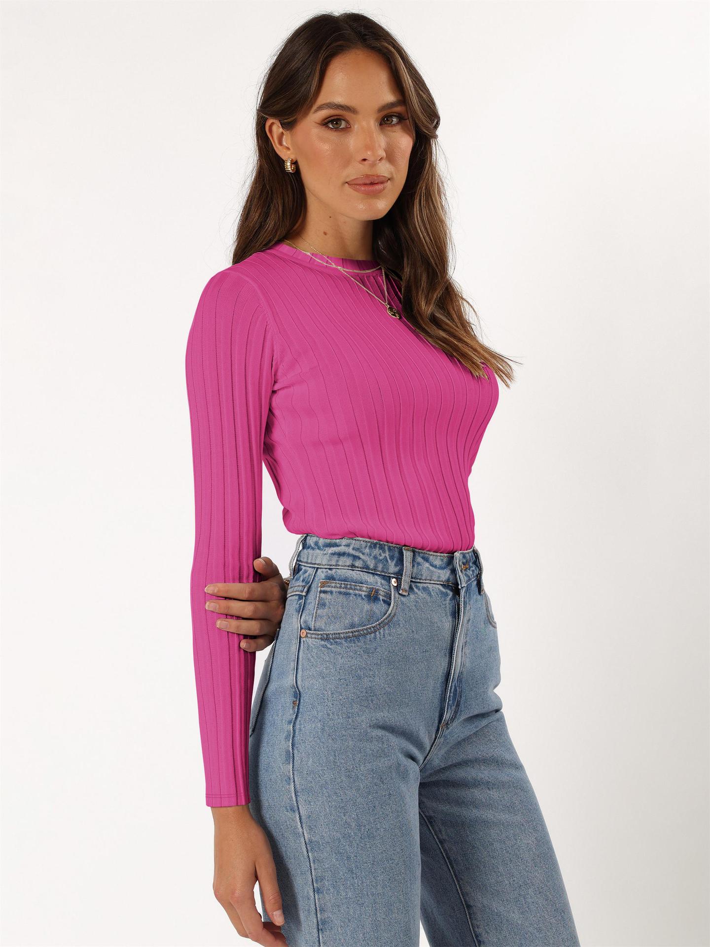Nuevo Estilo Otoñal de Amazon Hottie Europeo y Americano Tejido de Punto para Mujer, Corte Slim, Top de Cuello Redondo Acanalado, Moderno y Versátil
