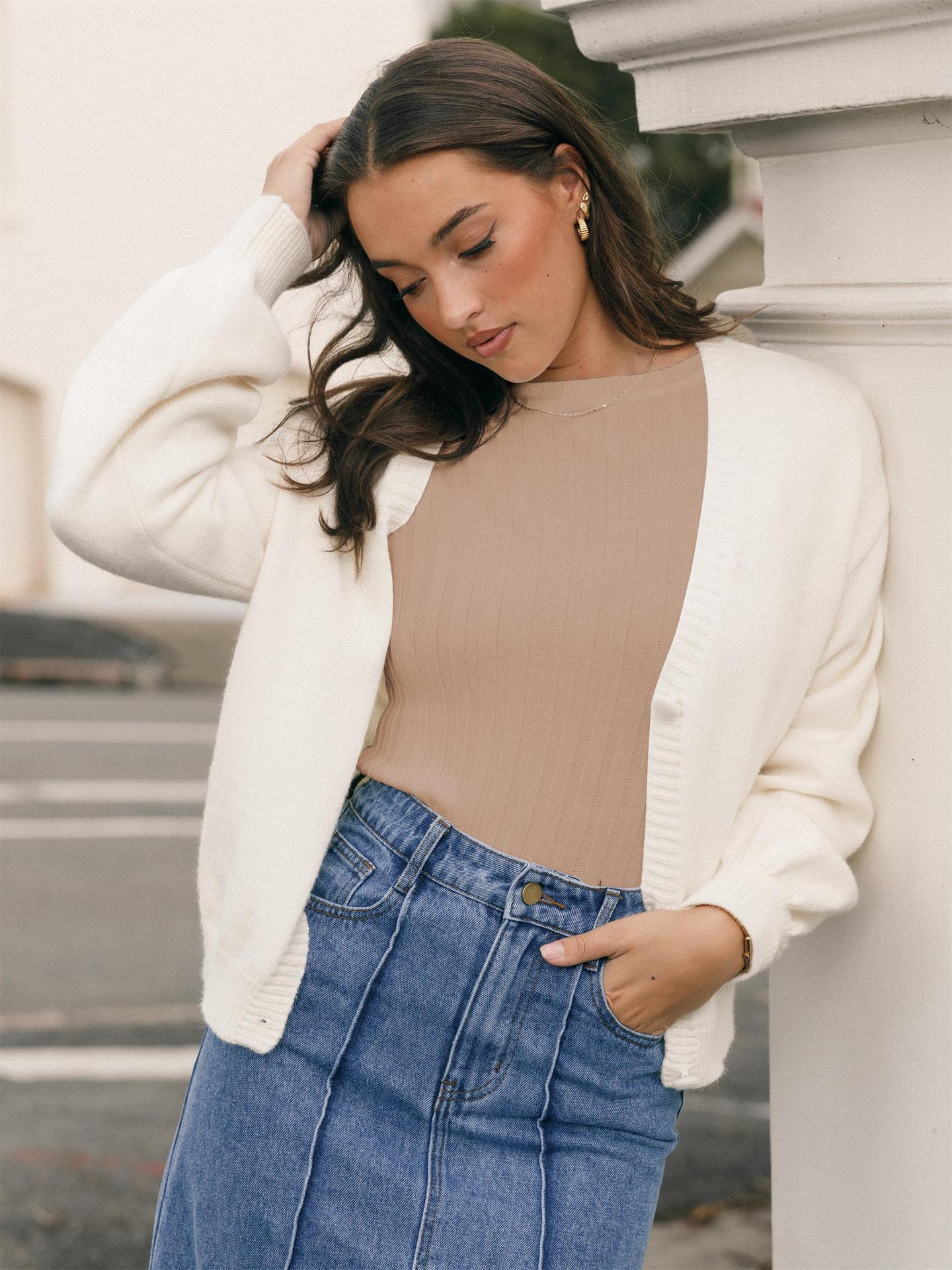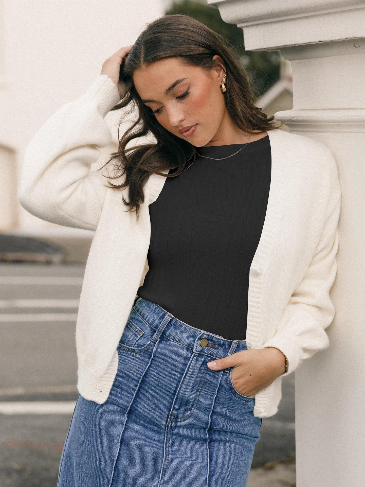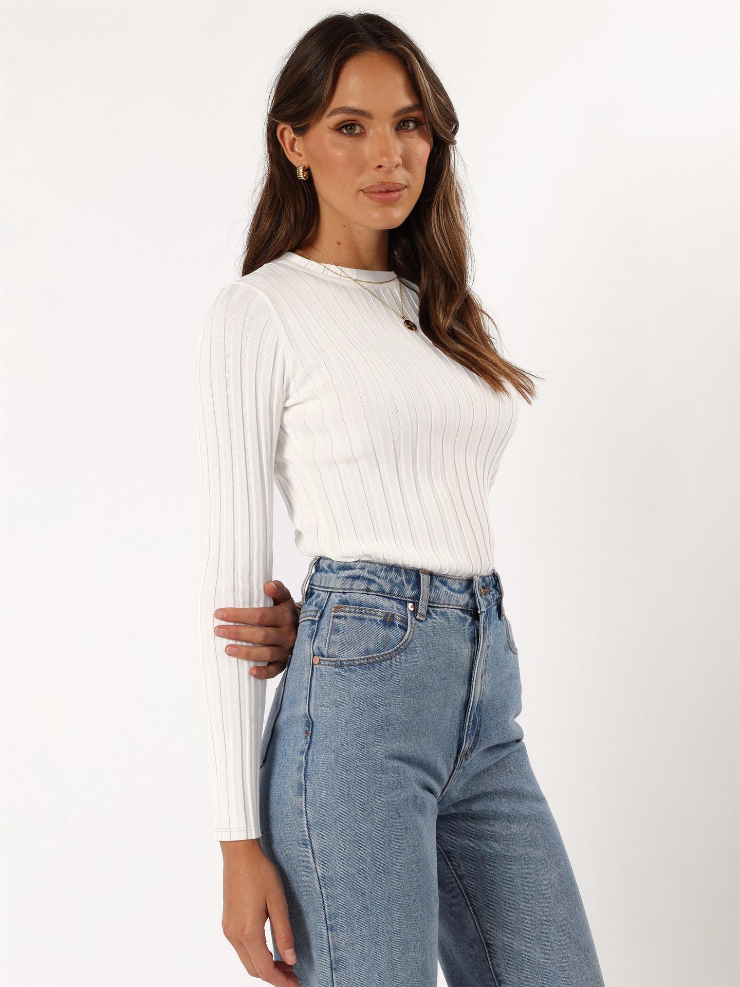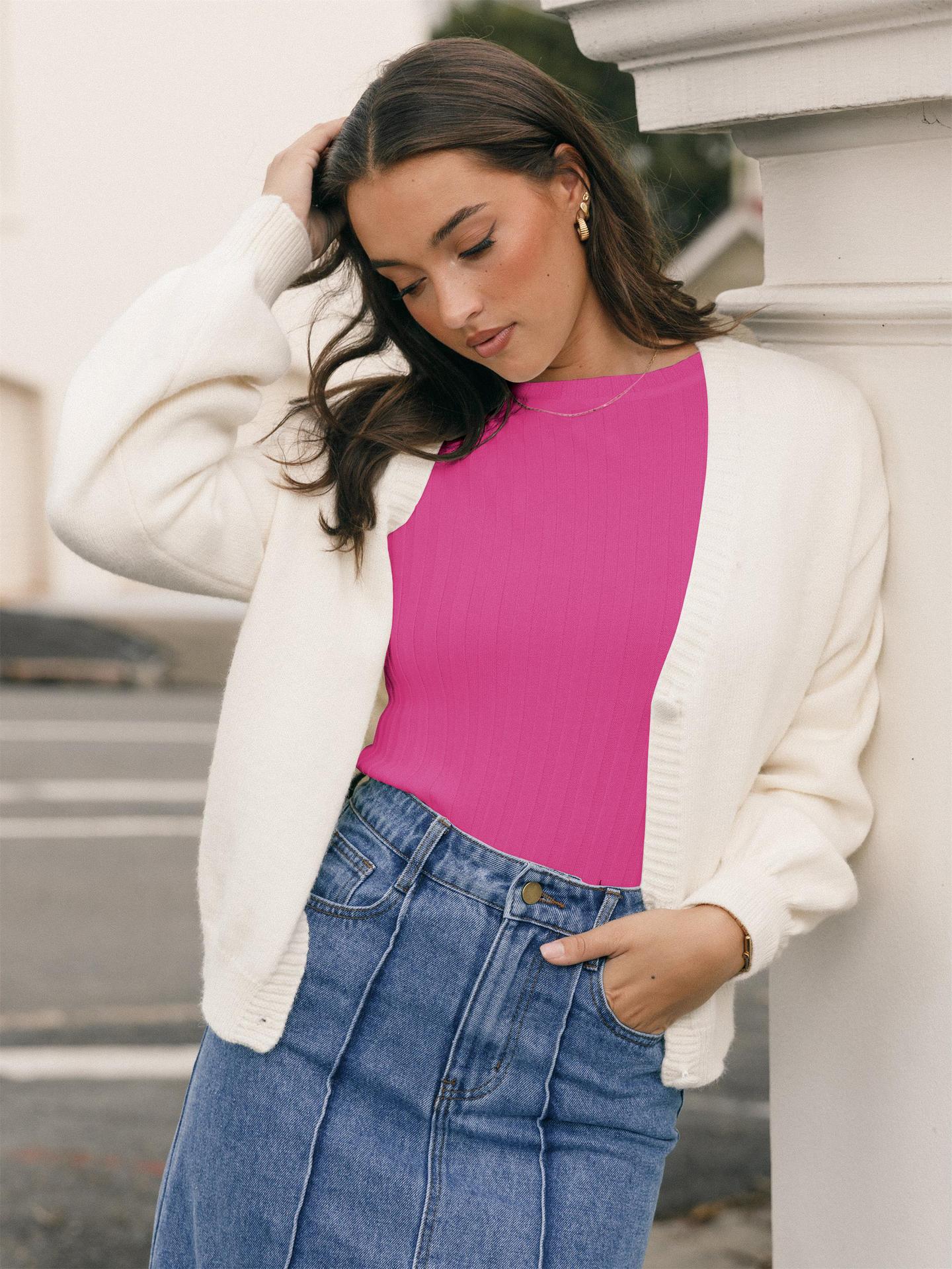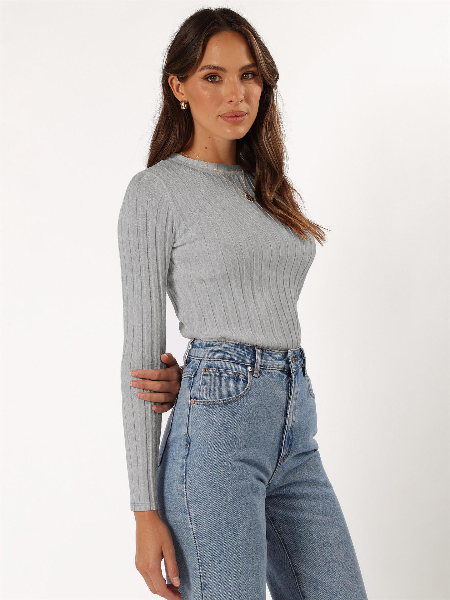 Nuevo Estilo Otoñal de Amazon Hottie Europeo y Americano Tejido de Punto para Mujer, Corte Slim, Top de Cuello Redondo Acanalado, Moderno y Versátil