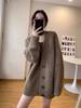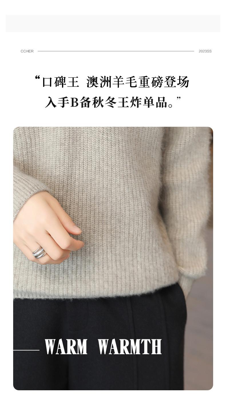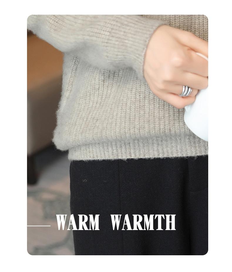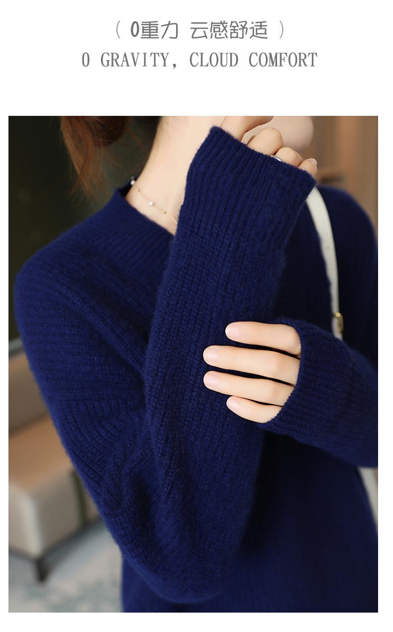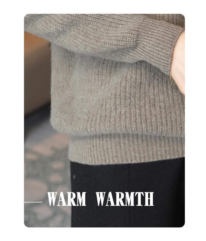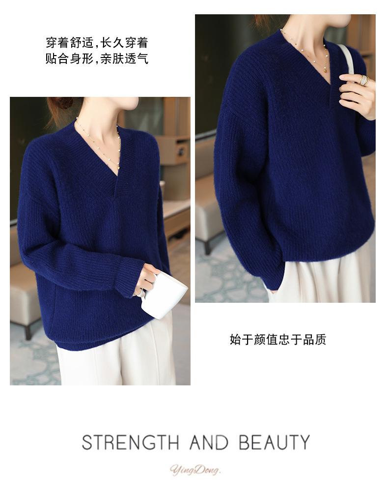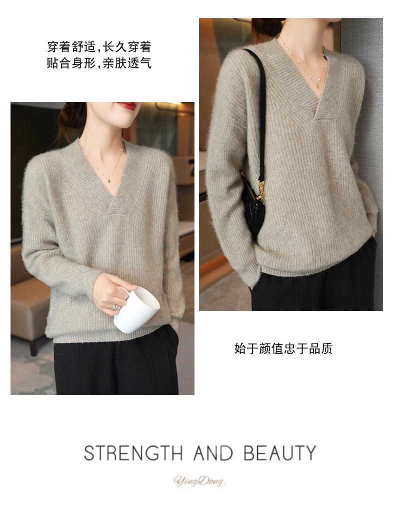 Suéter holgado de punto de lana pura con cuello en V y manga larga, elegante y holgado para mujer, nuevo estilo