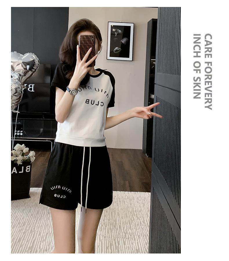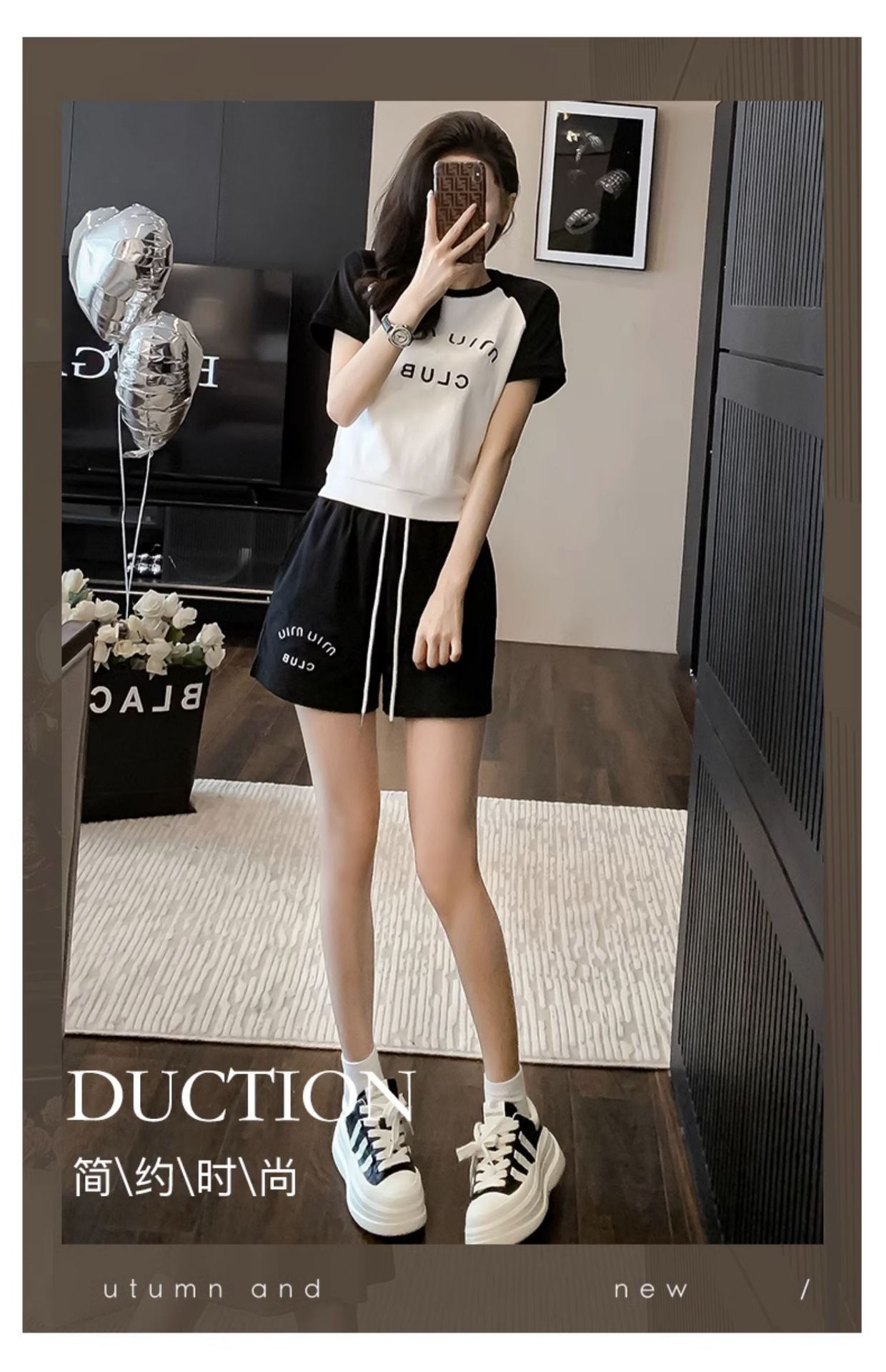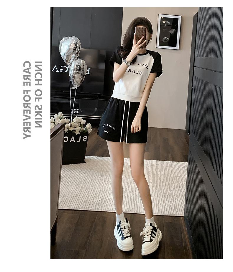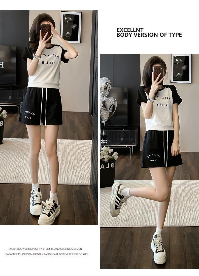 Conjunto deportivo informal de dos piezas para mujer, pantalones cortos, verano 2024, nuevo, antiedad, moderno, pequeño, fresco, de manga corta