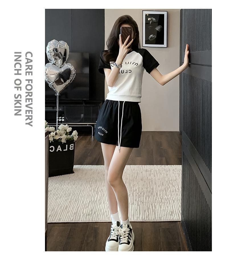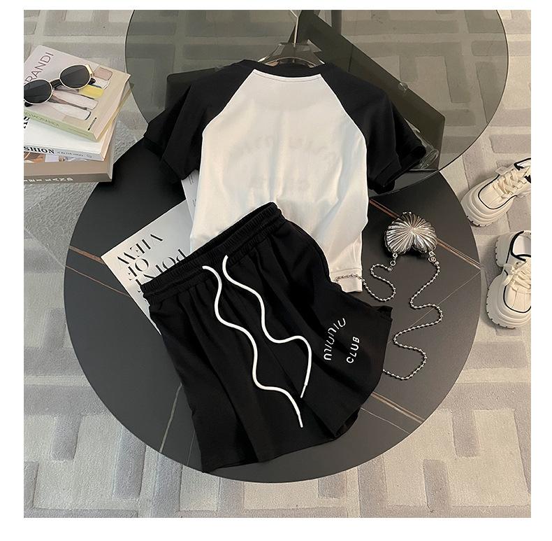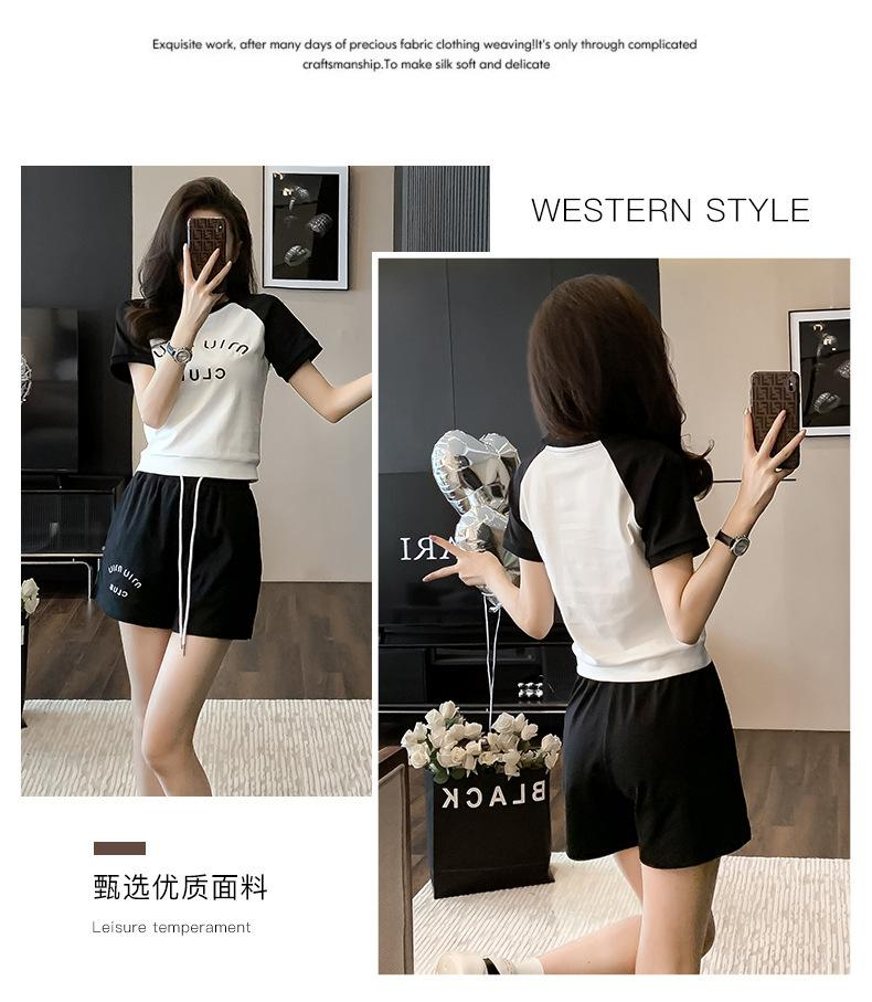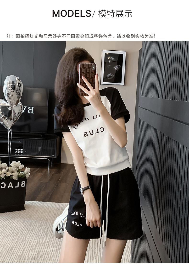 Conjunto deportivo informal de dos piezas para mujer, pantalones cortos, verano 2024, nuevo, antiedad, moderno, pequeño, fresco, de manga corta