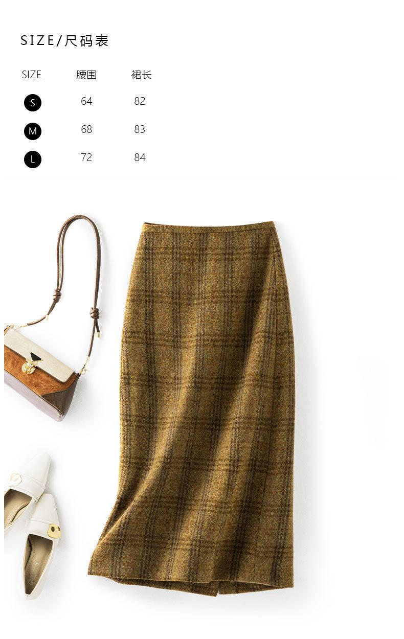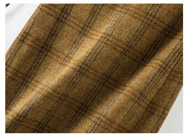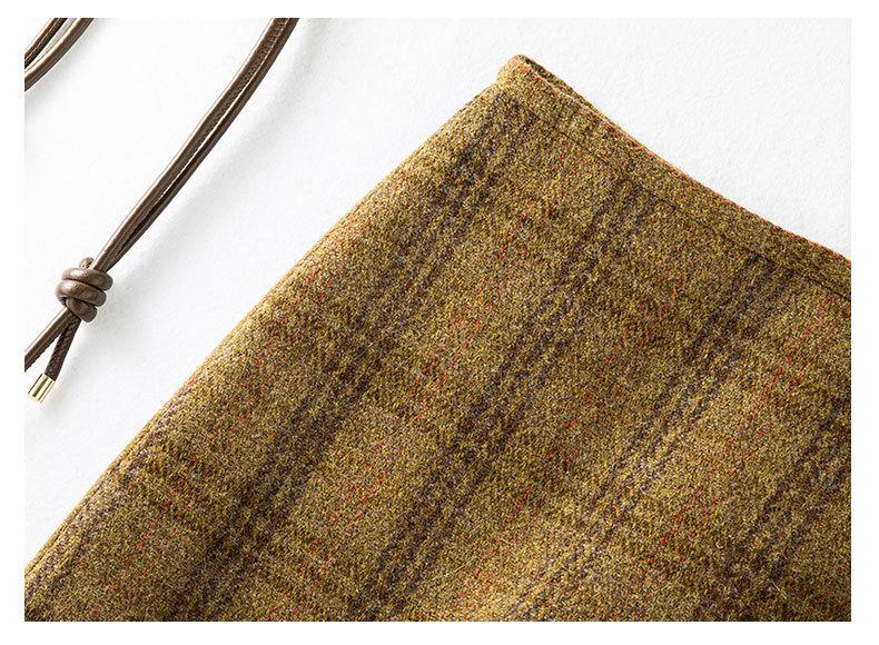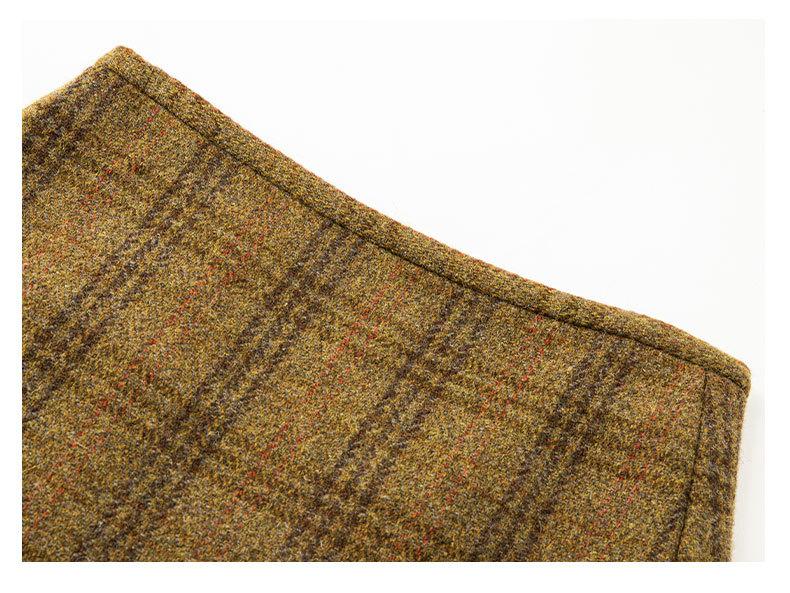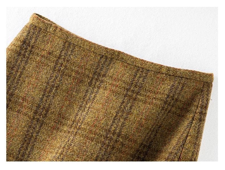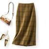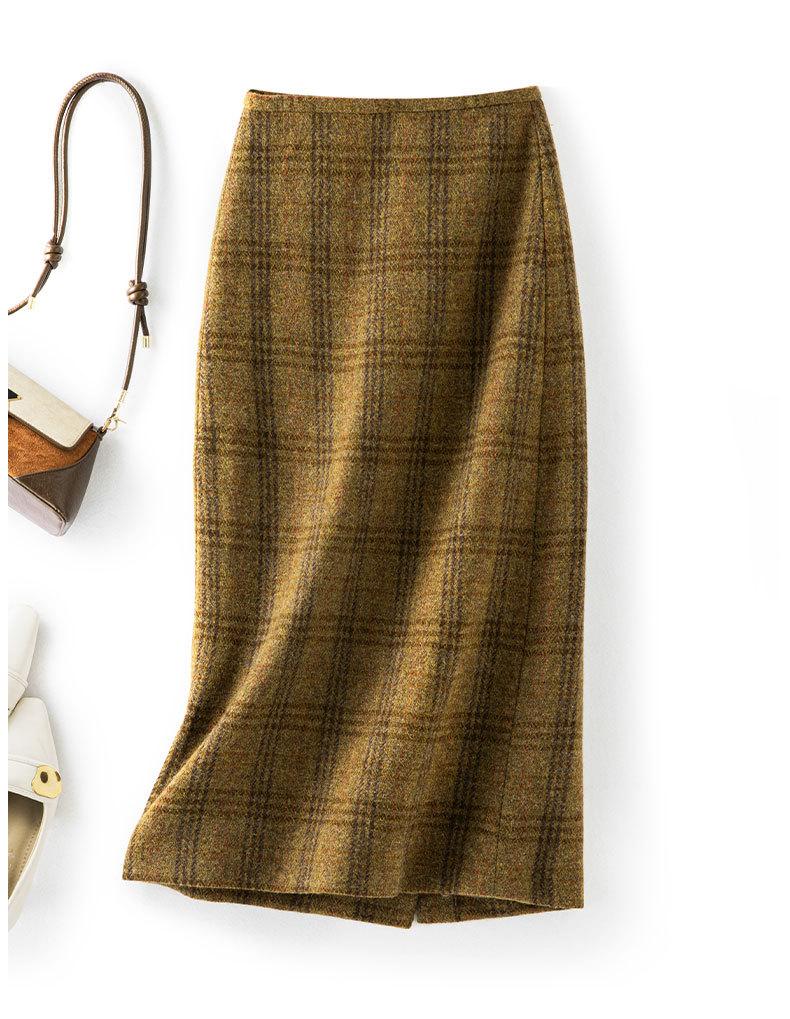 Falda de Lana Retro Endi para Mujer 2025 Otoño e Invierno Nueva Falda Larga de Lana Recta con Abertura de Cintura Alta a Cuadros