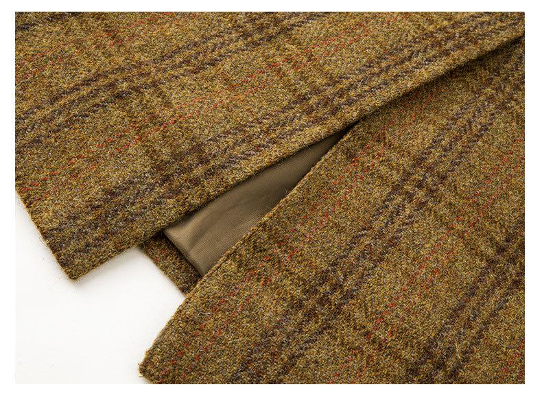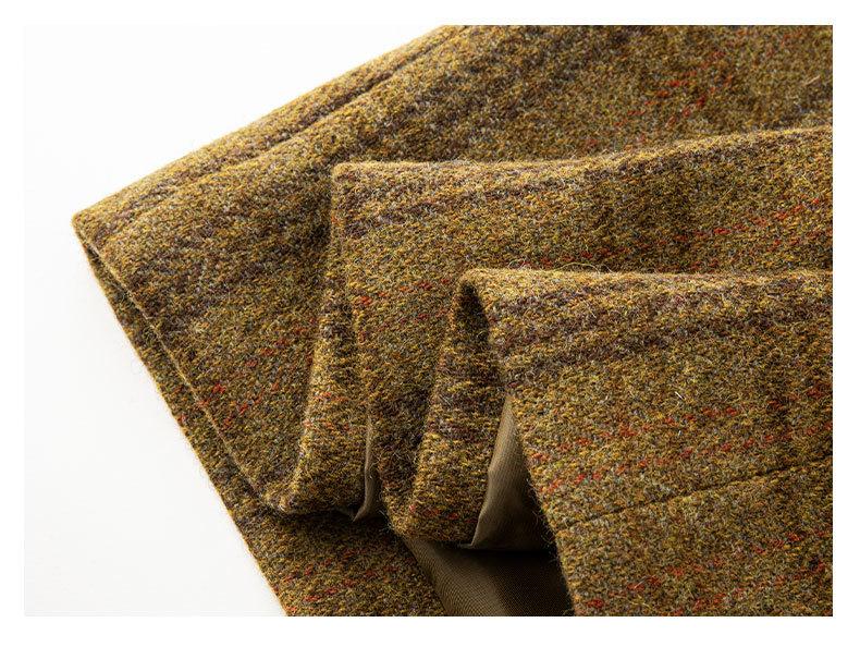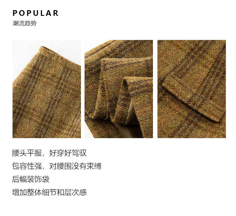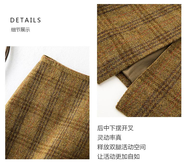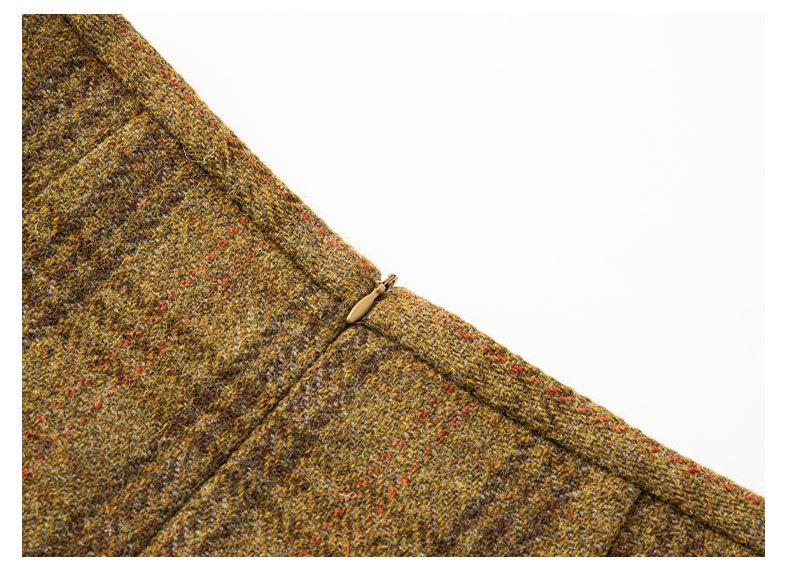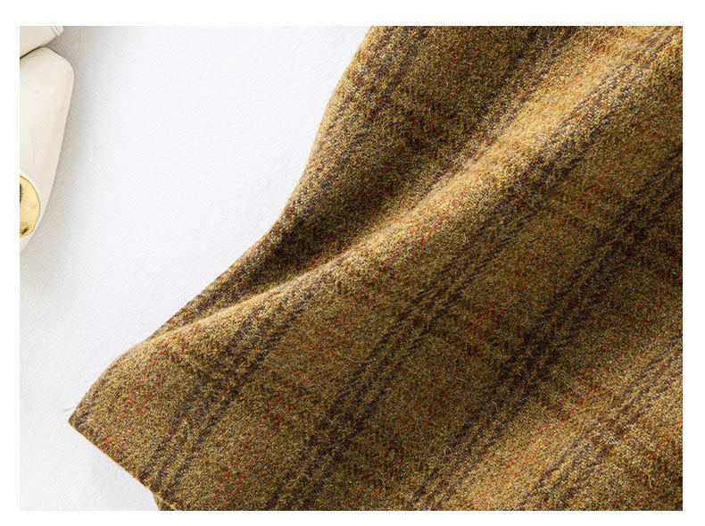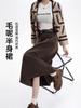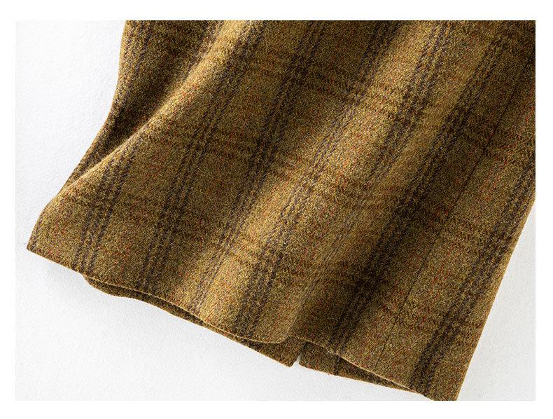 Falda de Lana Retro Endi para Mujer 2025 Otoño e Invierno Nueva Falda Larga de Lana Recta con Abertura de Cintura Alta a Cuadros