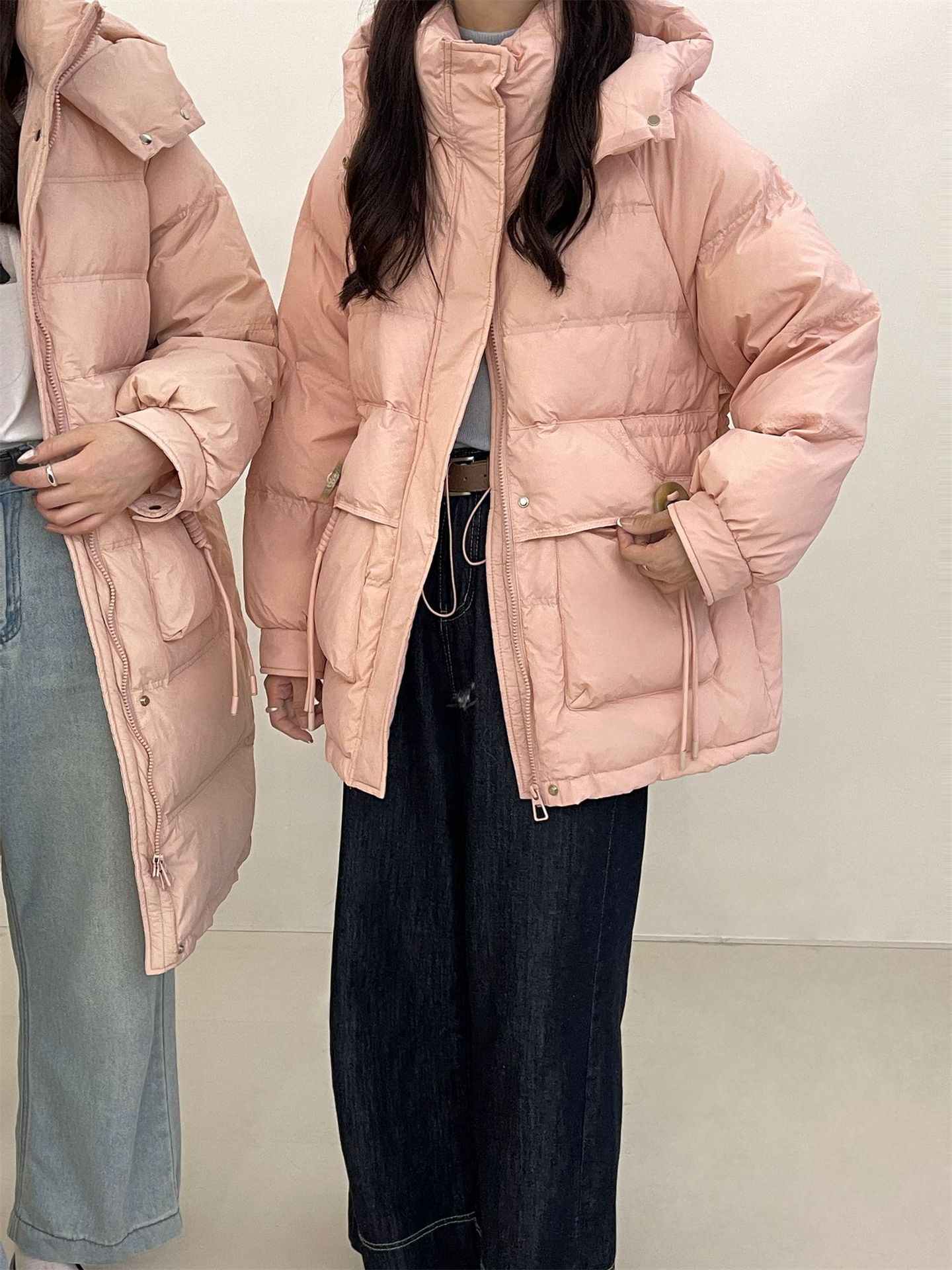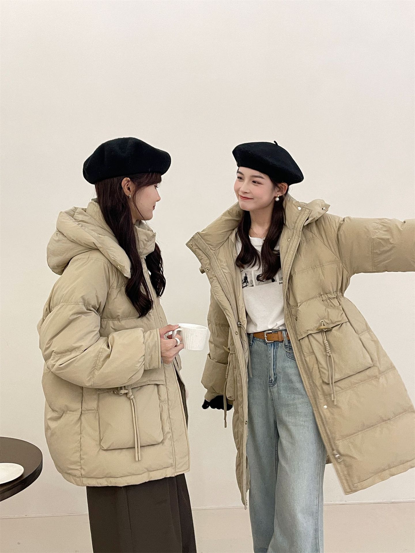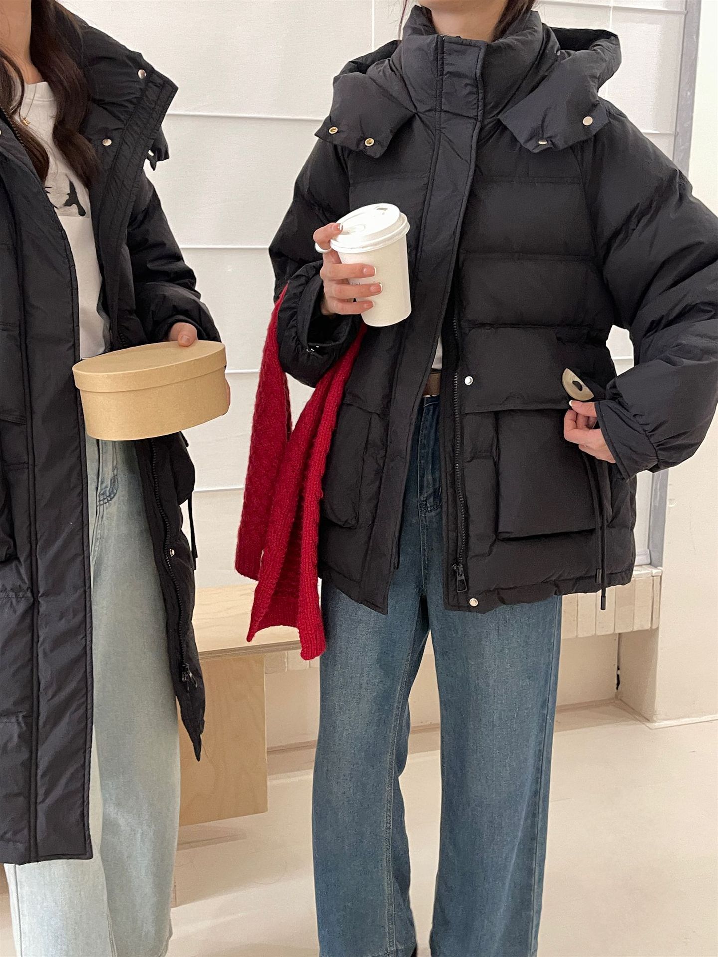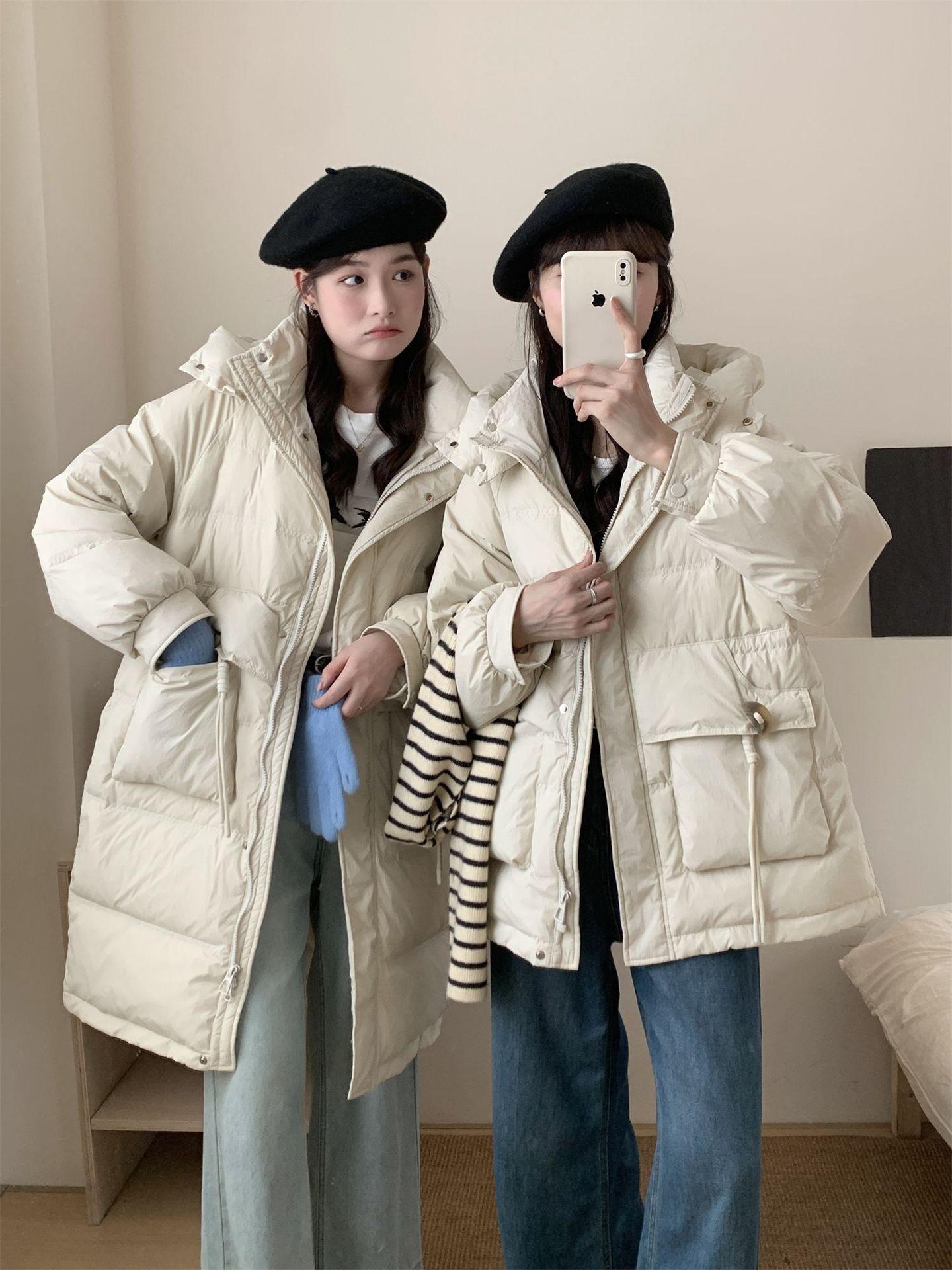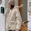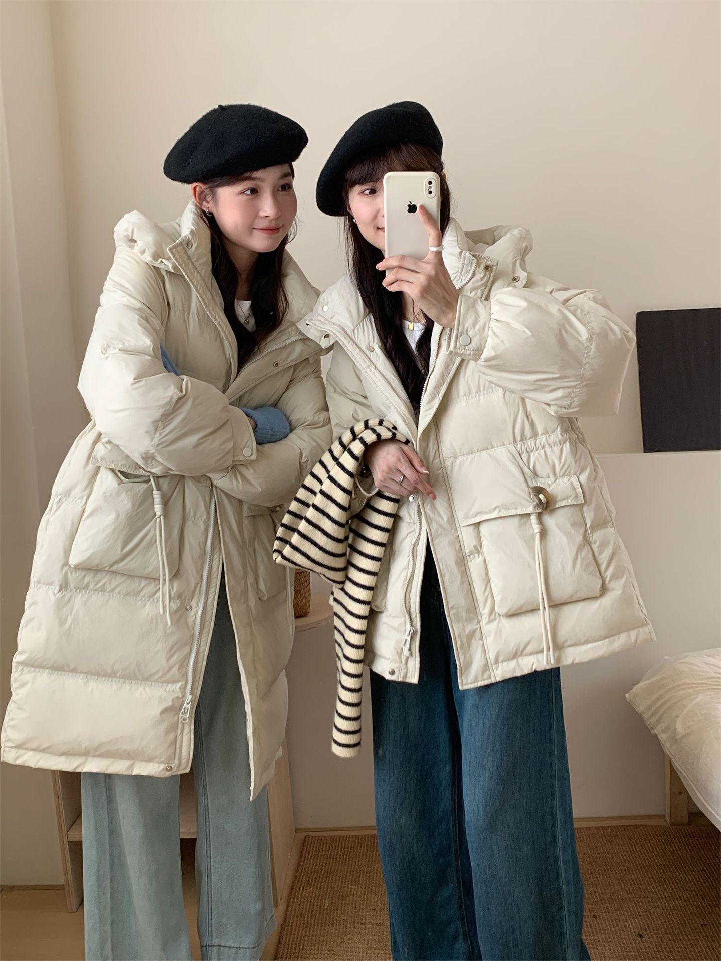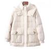 Chamarra corta de plumón con hebilla creciente para mujer Invierno Nuevo Estudiante con capucha Engrosada Cintura Adelgazante Look Plumón de pato blanco Chaqueta cálida