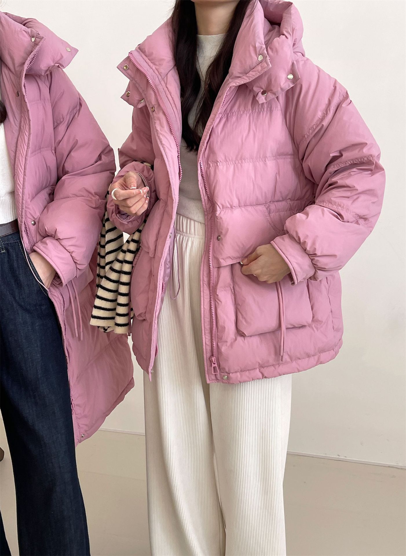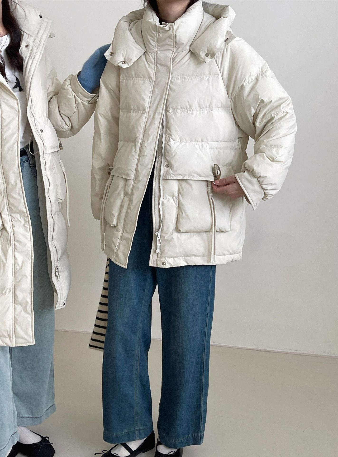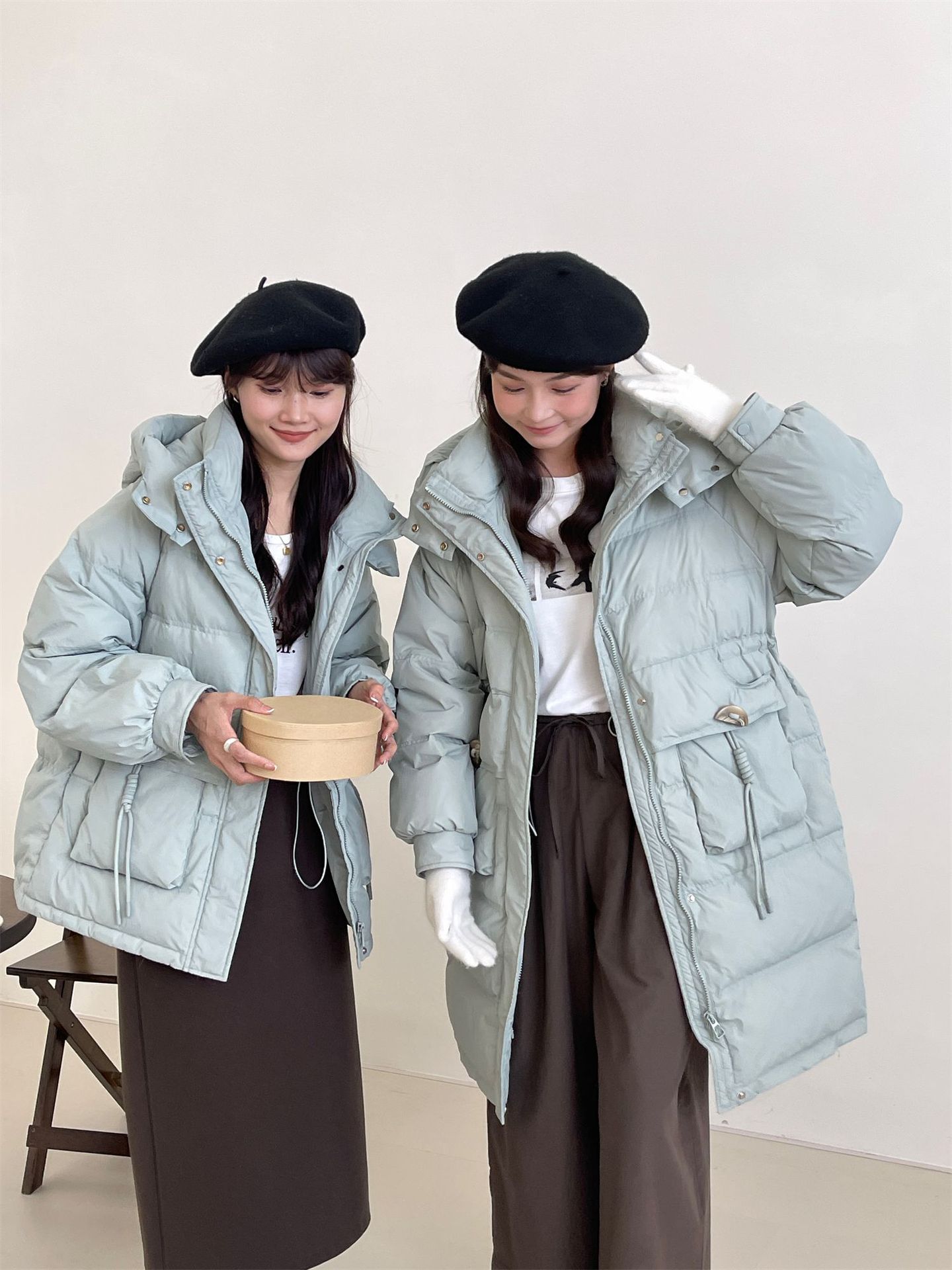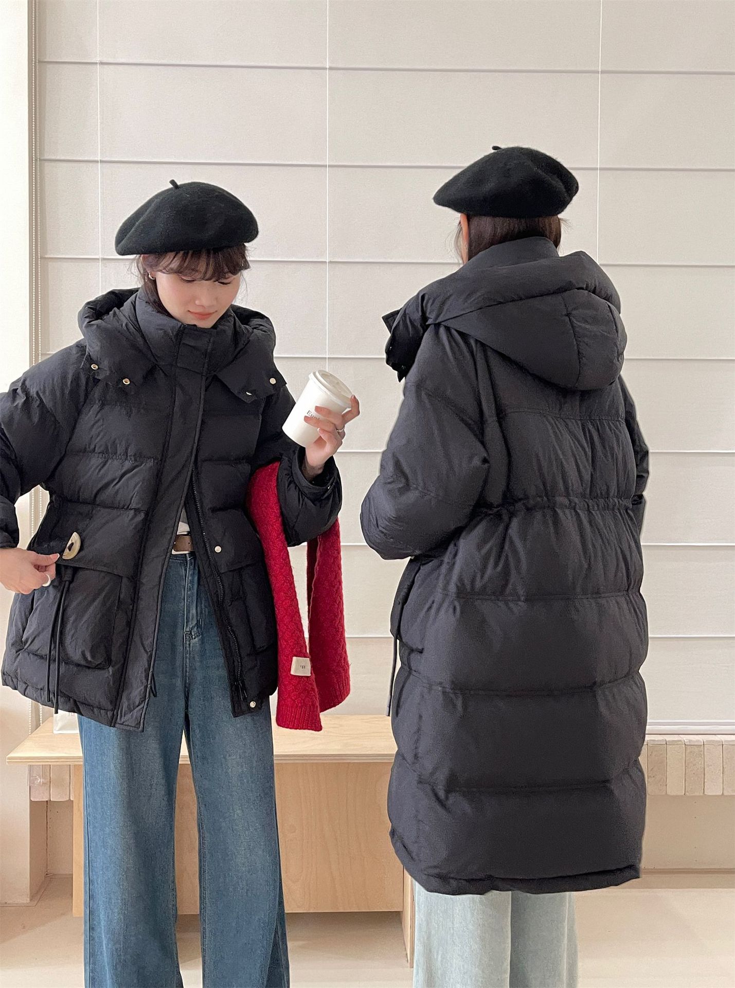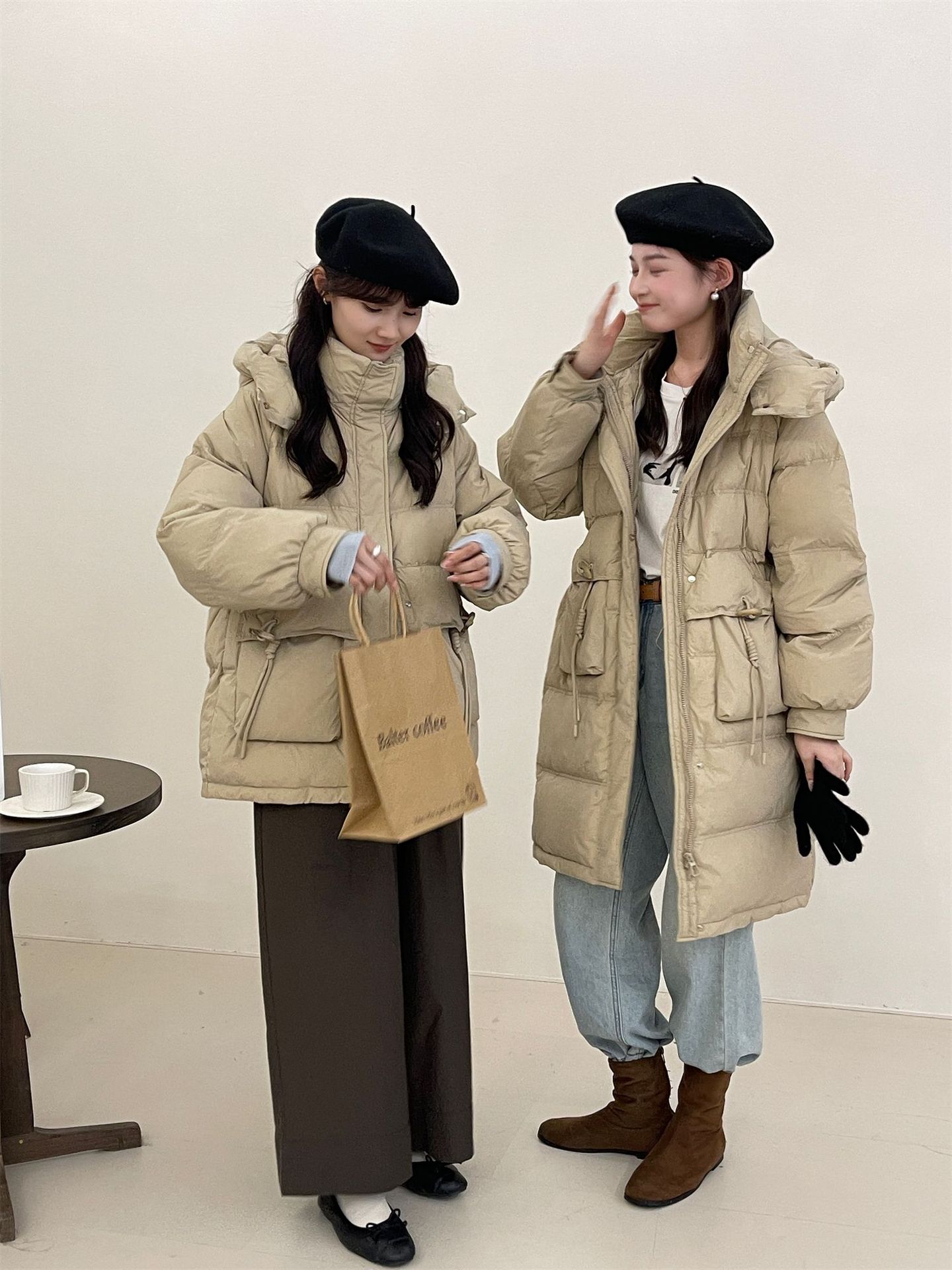 Chamarra corta de plumón con hebilla creciente para mujer Invierno Nuevo Estudiante con capucha Engrosada Cintura Adelgazante Look Plumón de pato blanco Chaqueta cálida