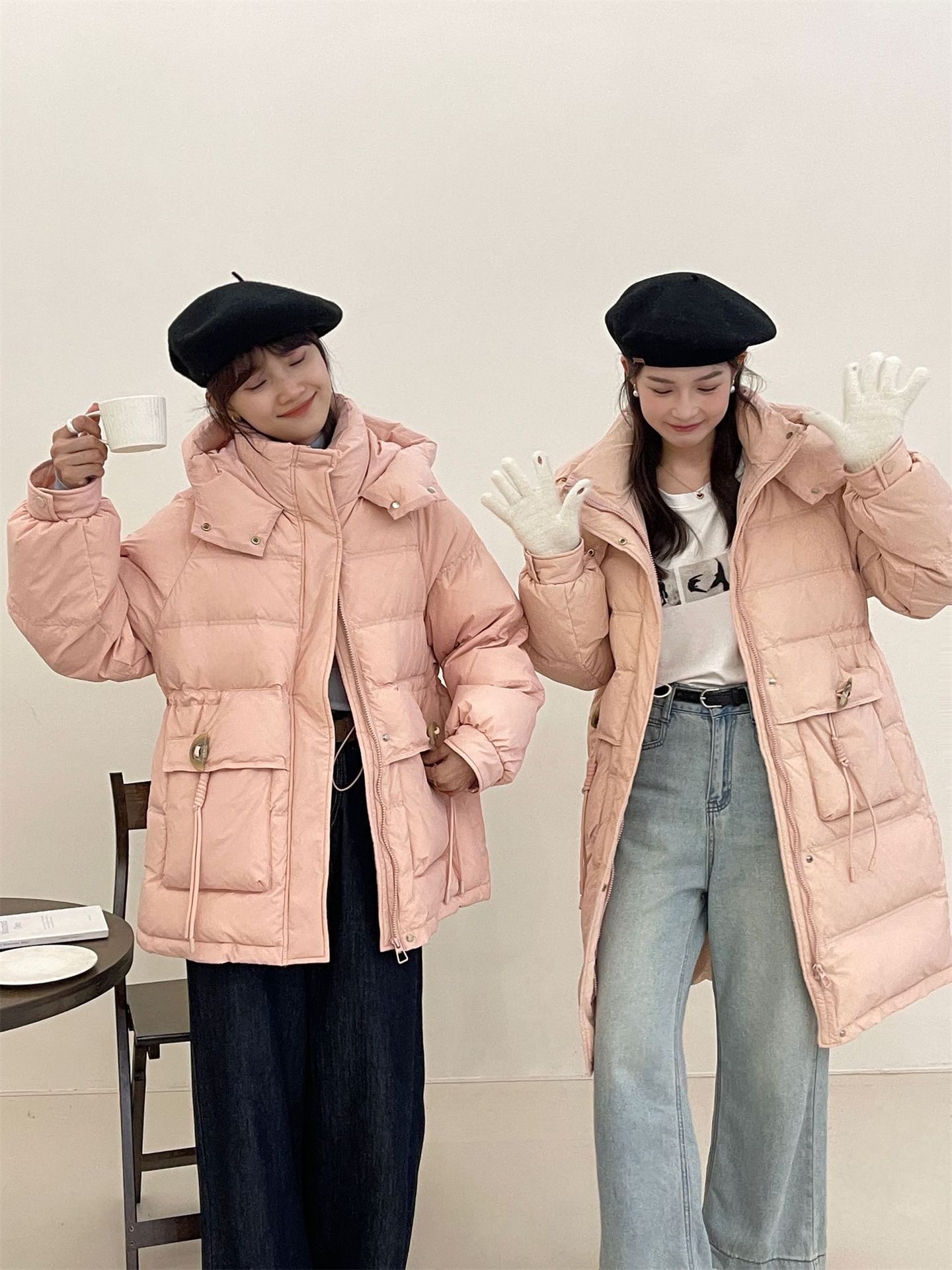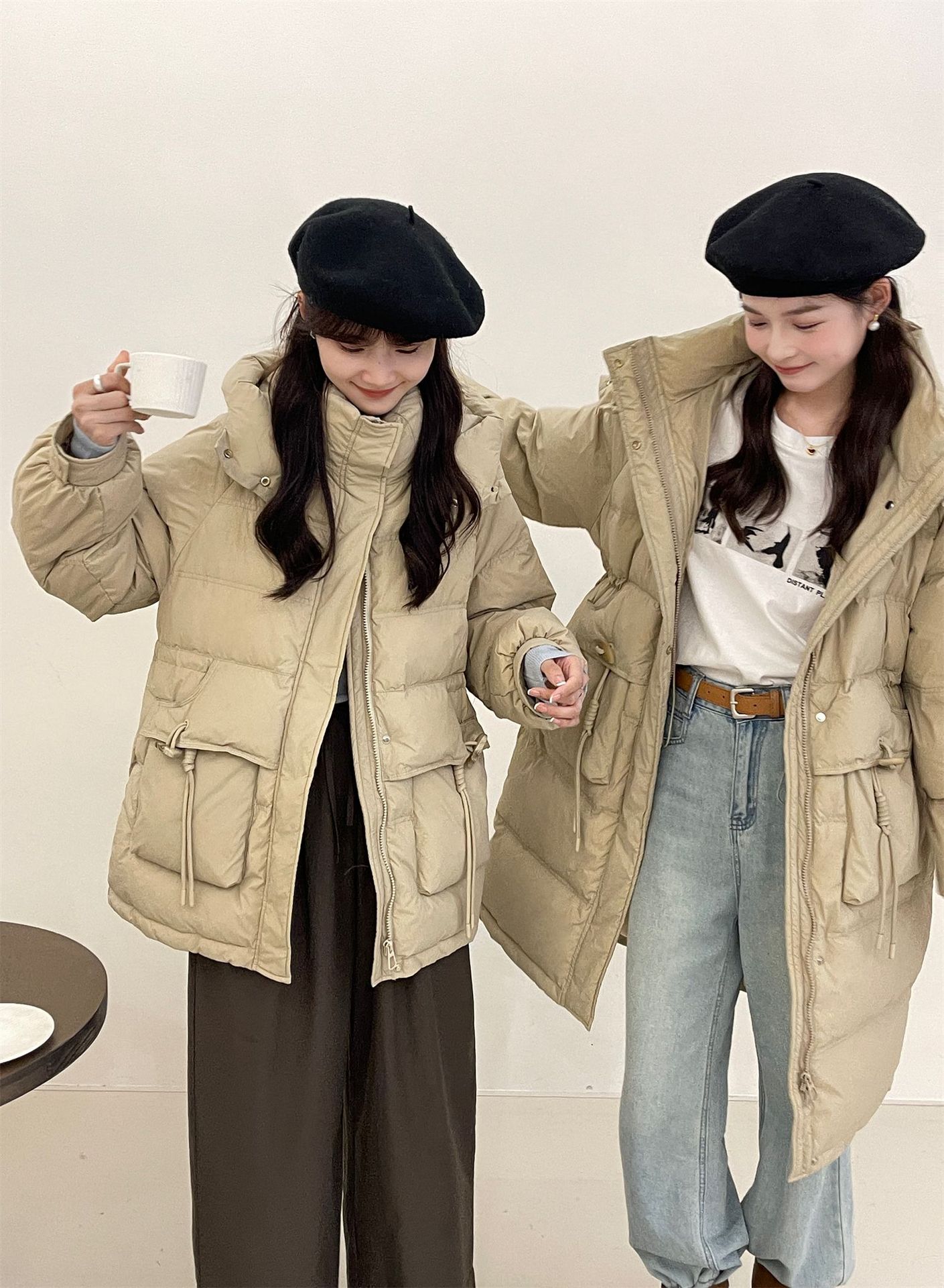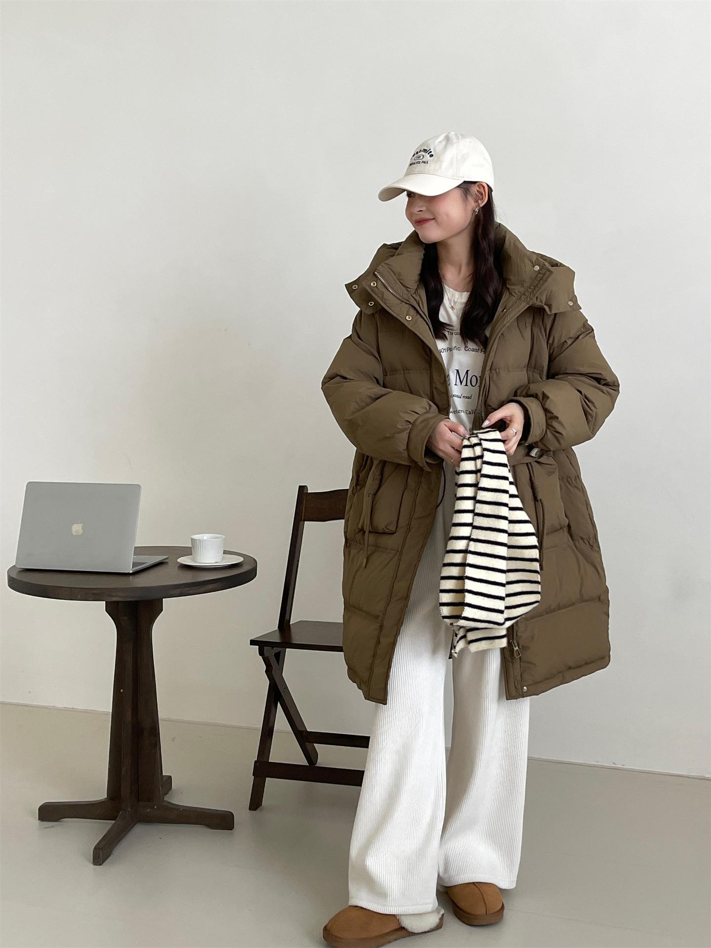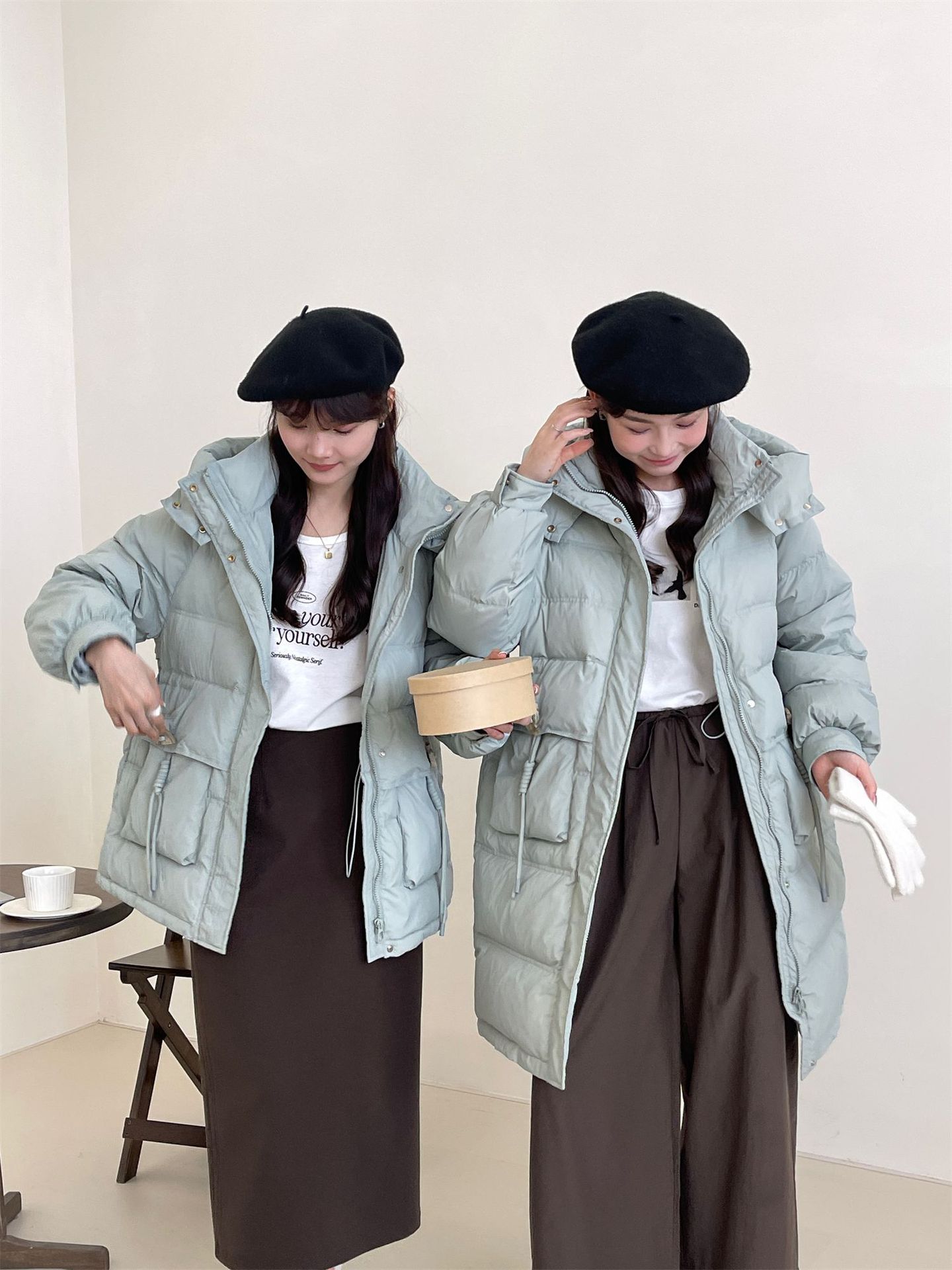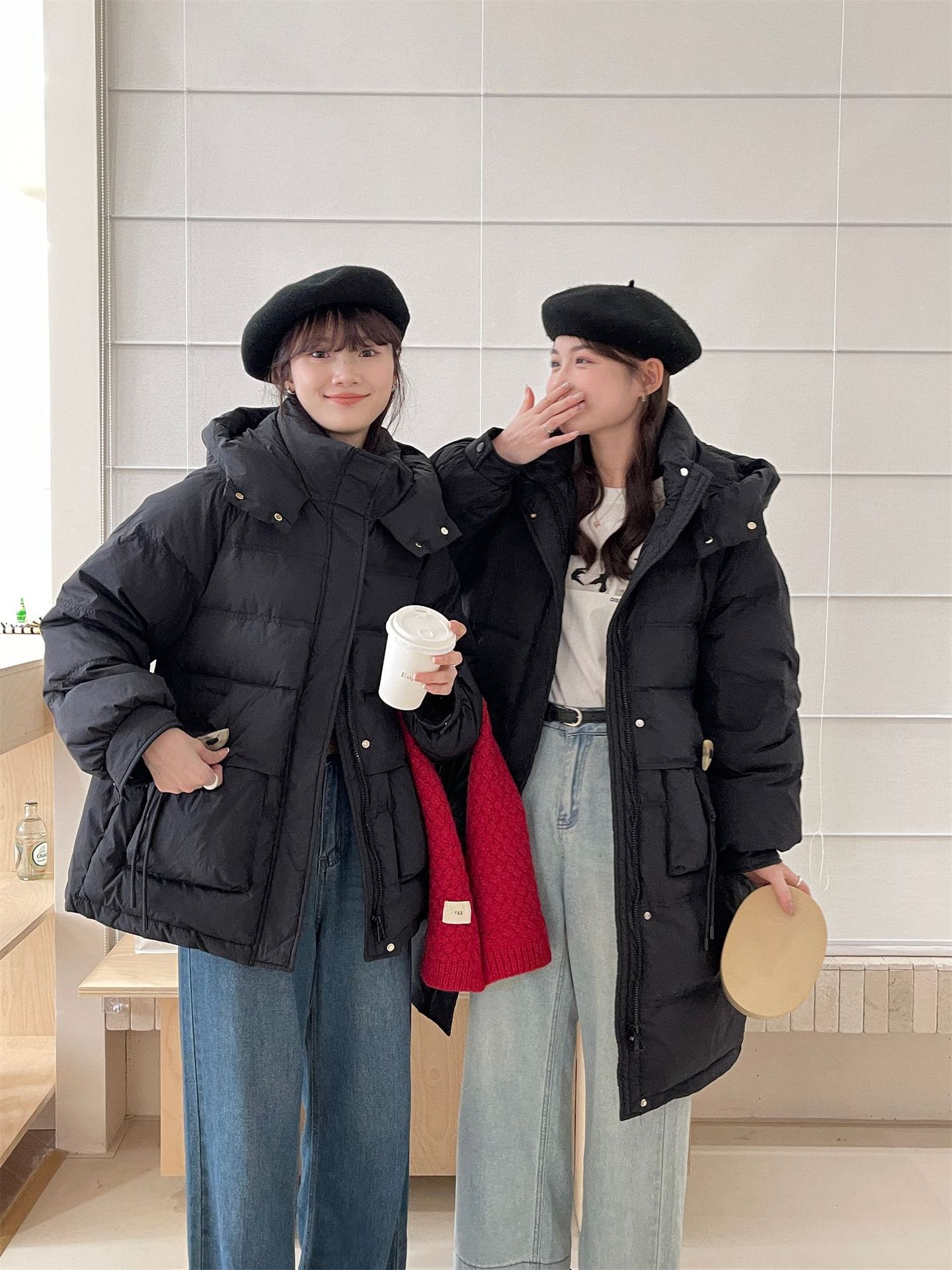Chamarra corta de plumón con hebilla creciente para mujer Invierno Nuevo Estudiante con capucha Engrosada Cintura Adelgazante Look Plumón de pato blanco Chaqueta cálida