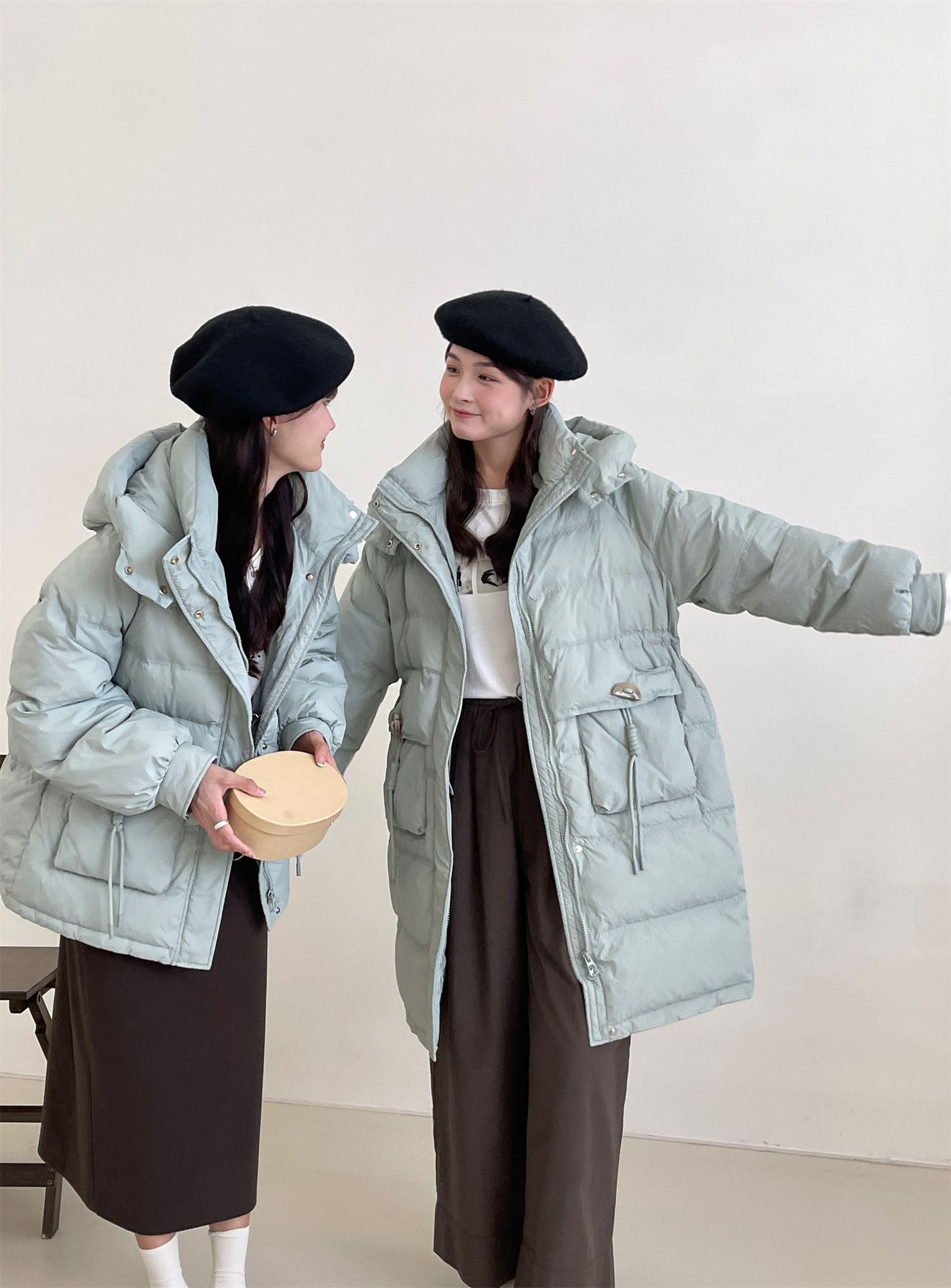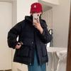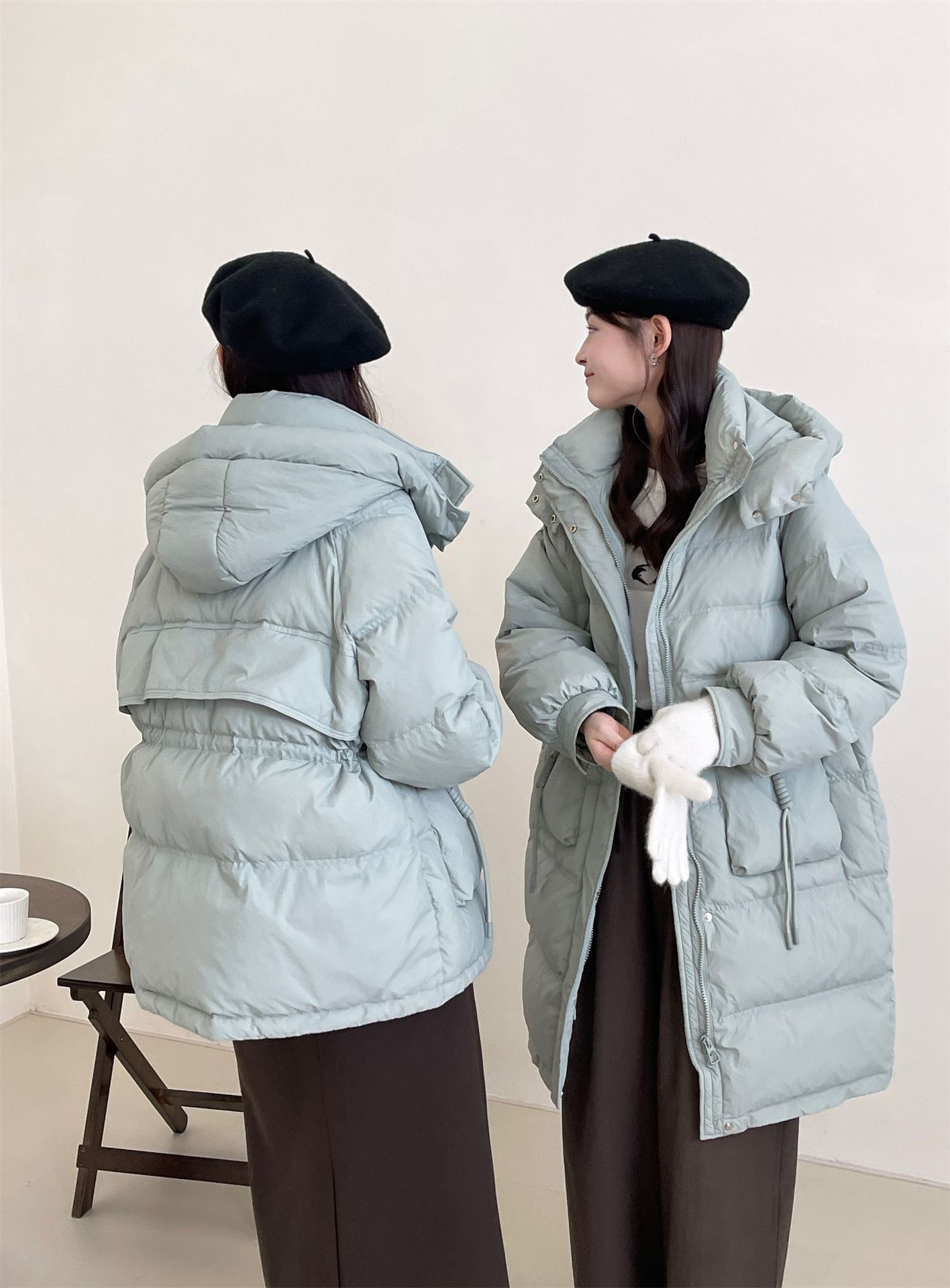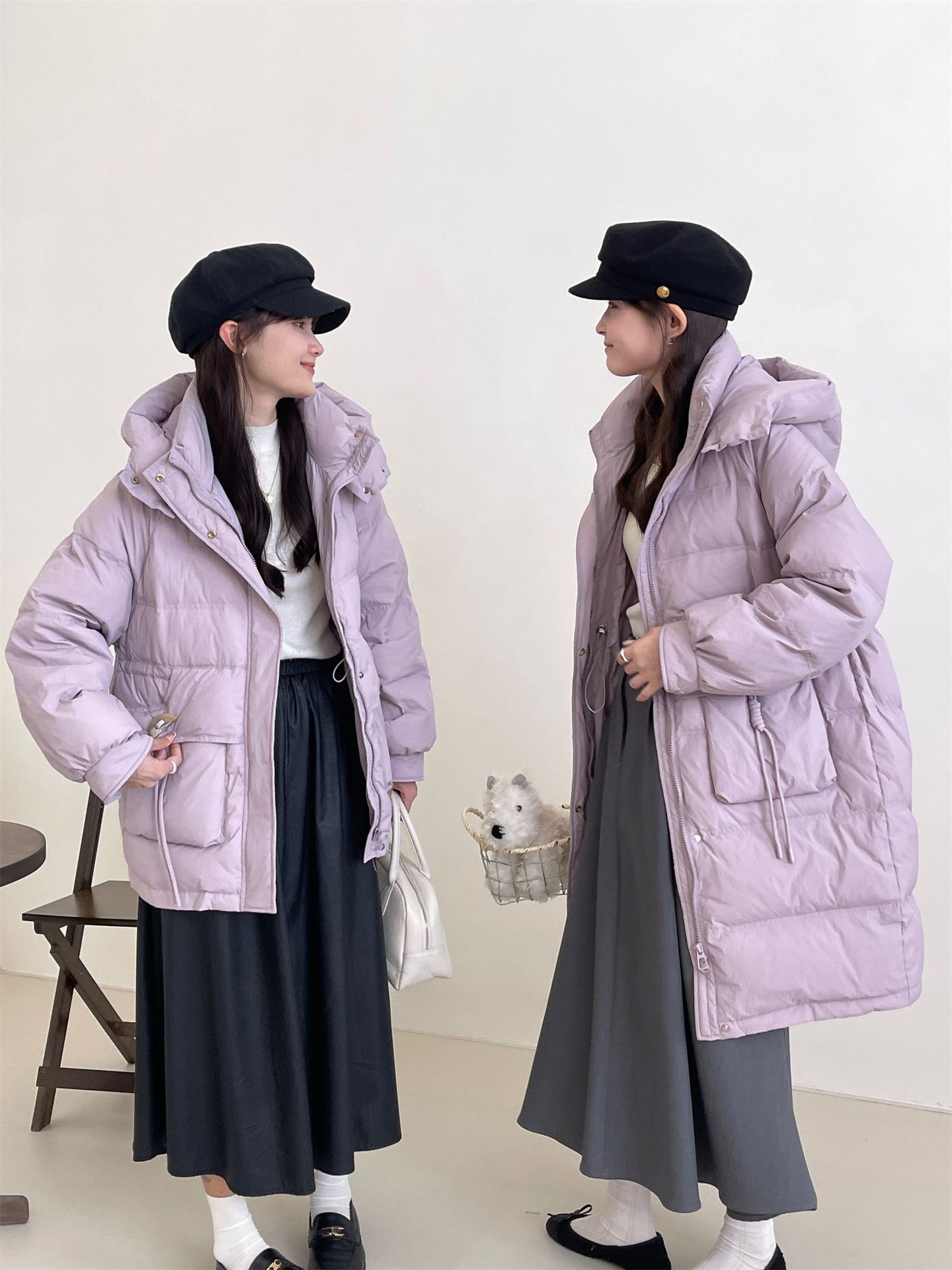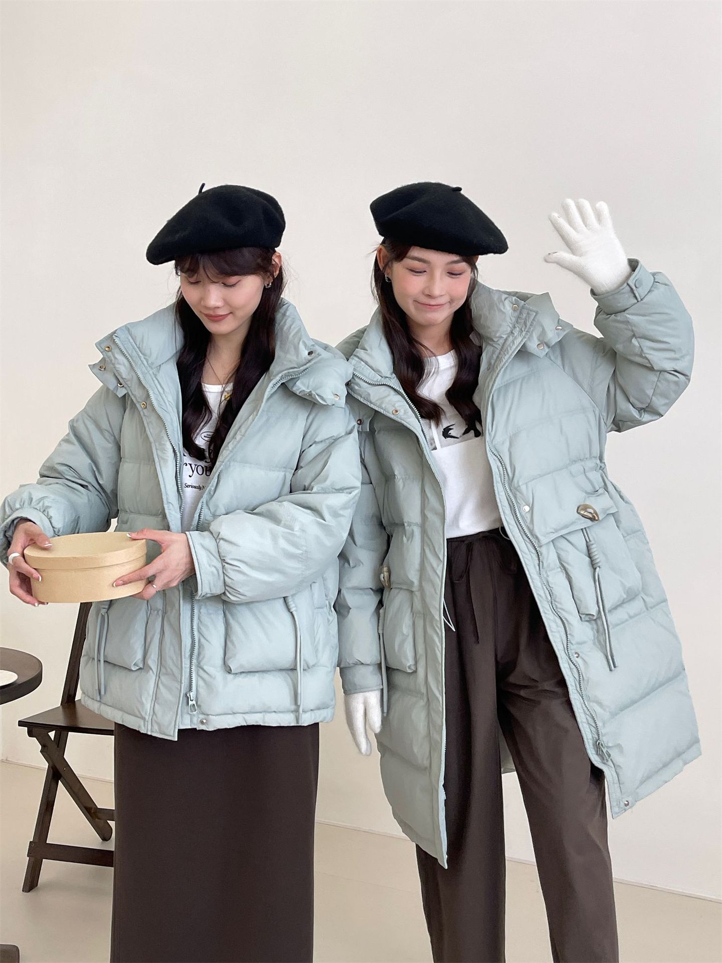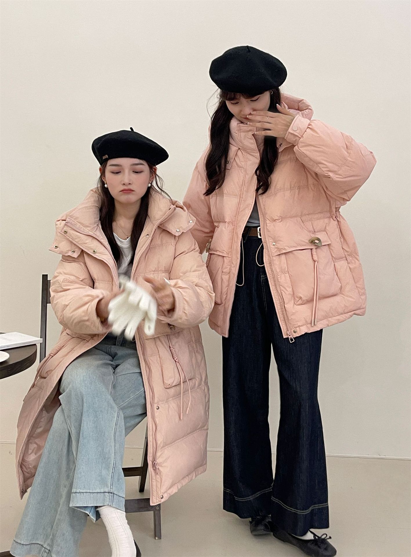 Chamarra corta de plumón con hebilla creciente para mujer Invierno Nuevo Estudiante con capucha Engrosada Cintura Adelgazante Look Plumón de pato blanco Chaqueta cálida