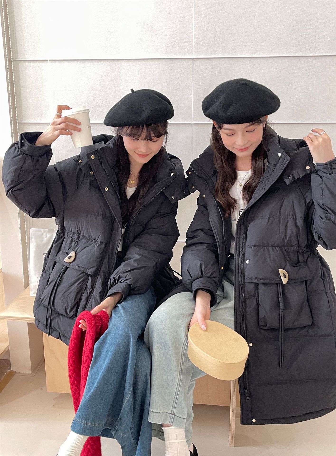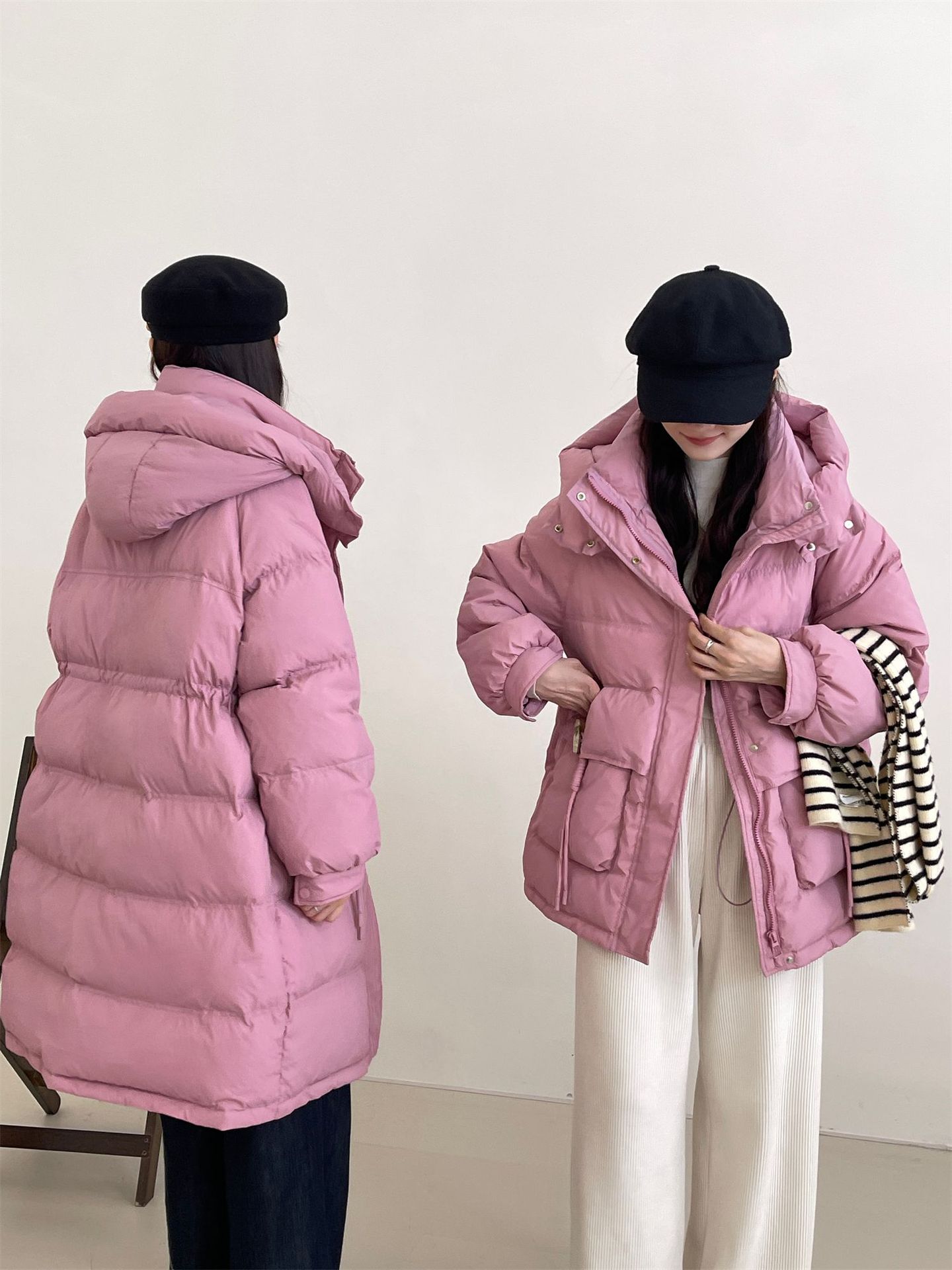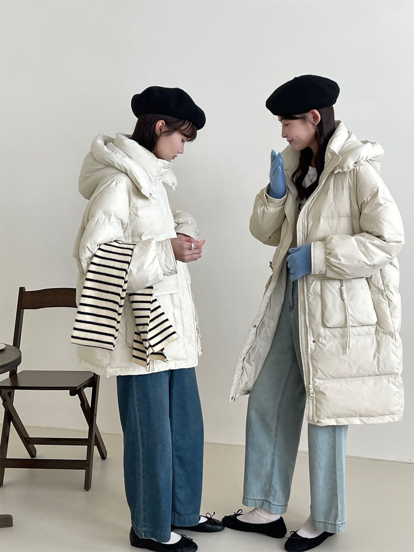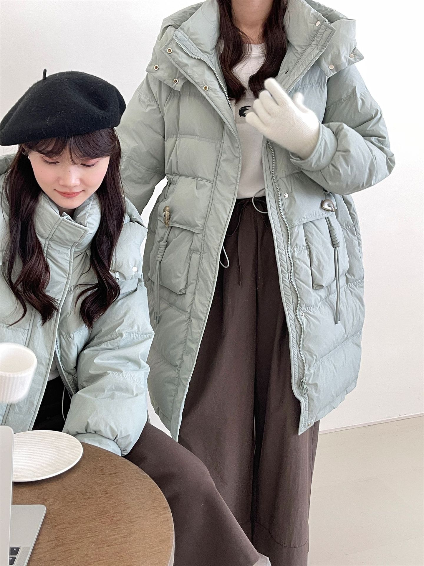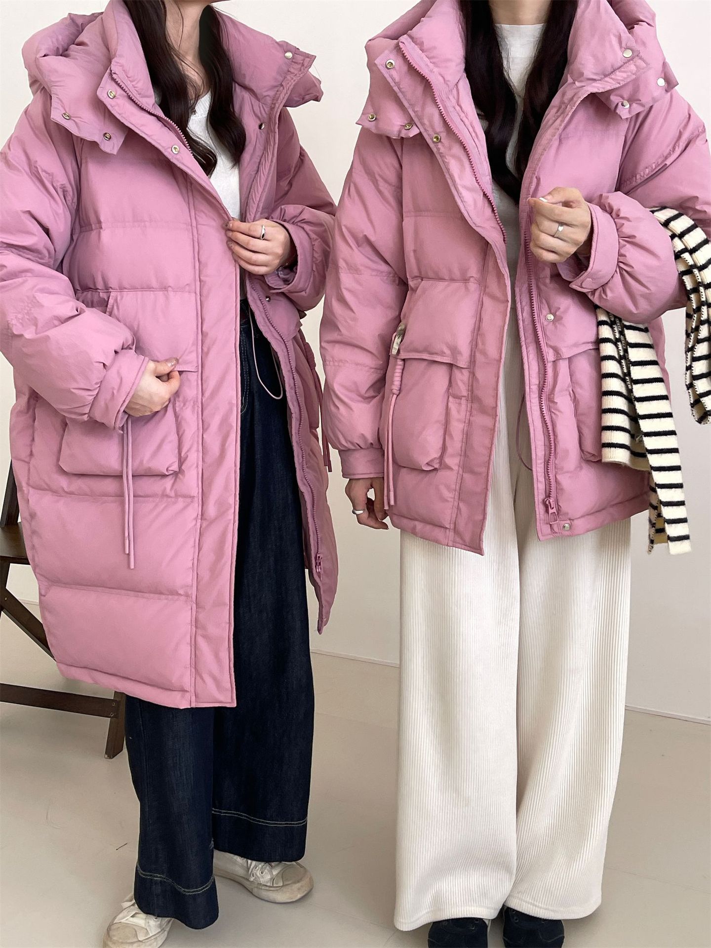 Chamarra corta de plumón con hebilla creciente para mujer Invierno Nuevo Estudiante con capucha Engrosada Cintura Adelgazante Look Plumón de pato blanco Chaqueta cálida