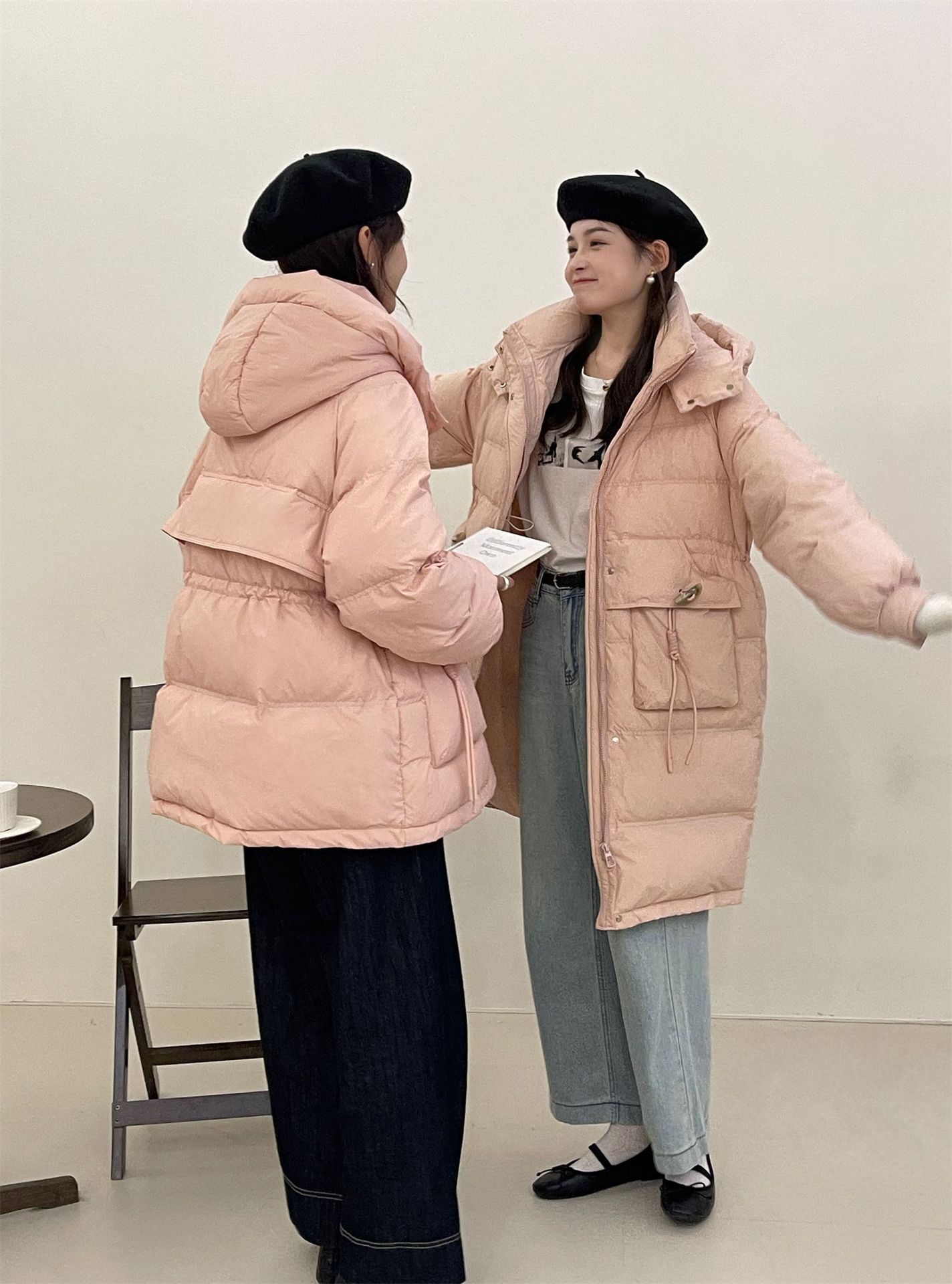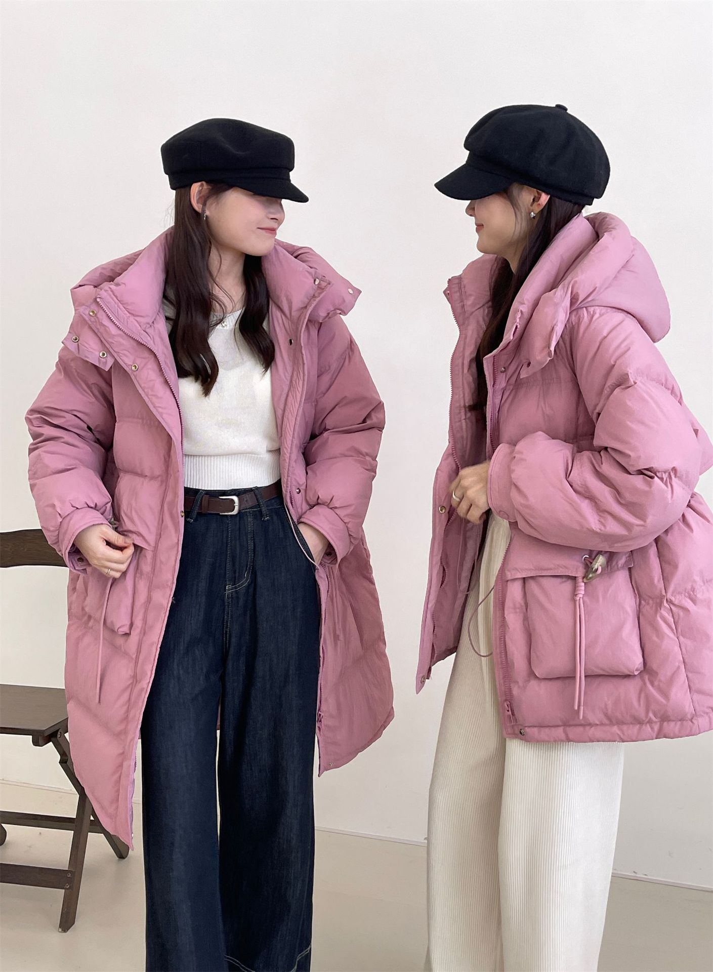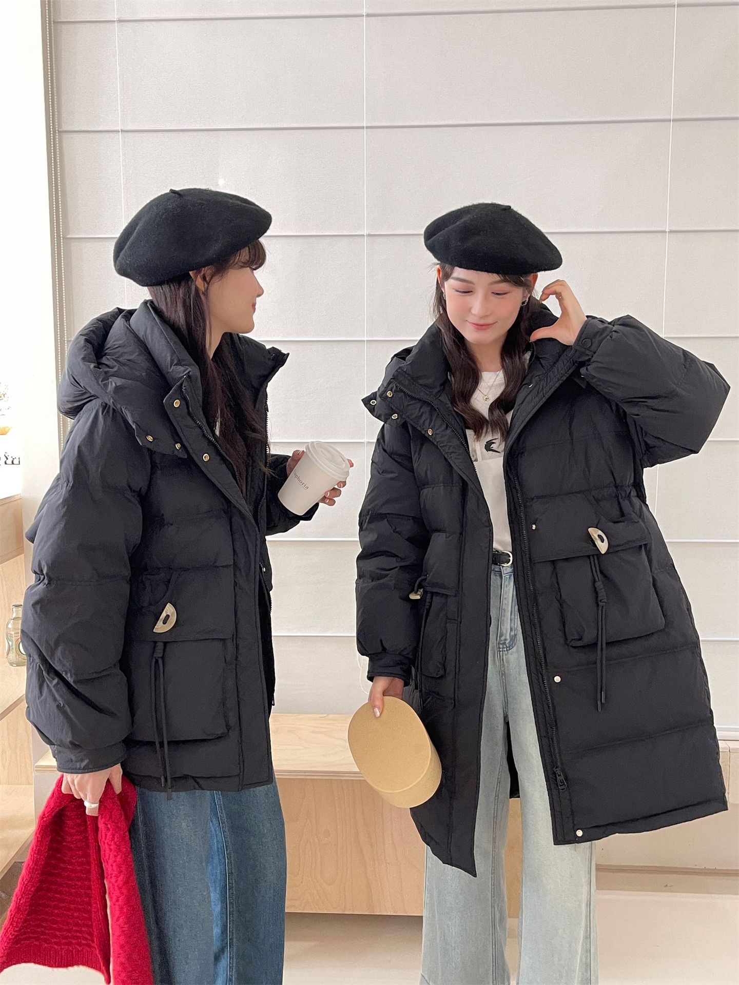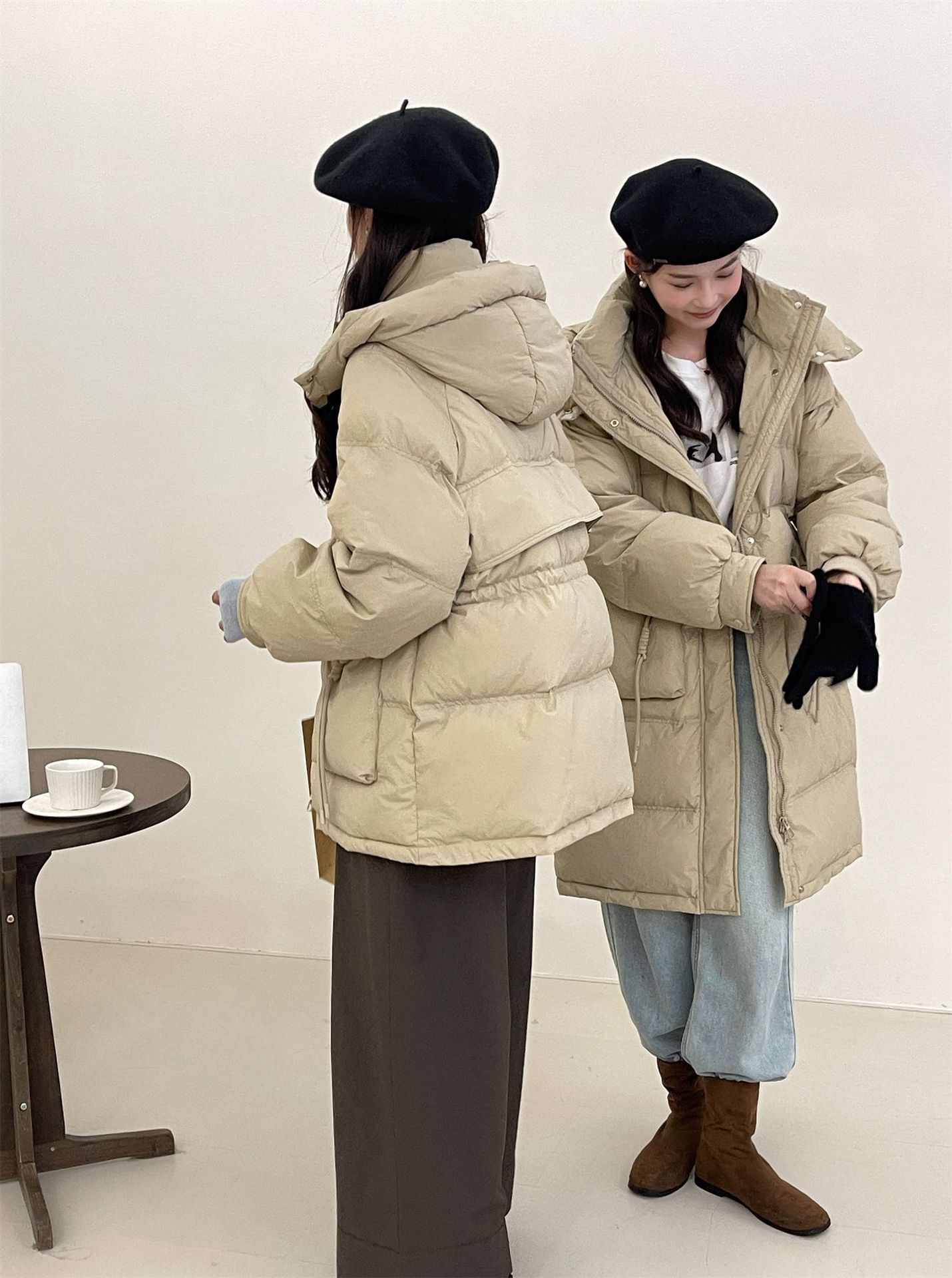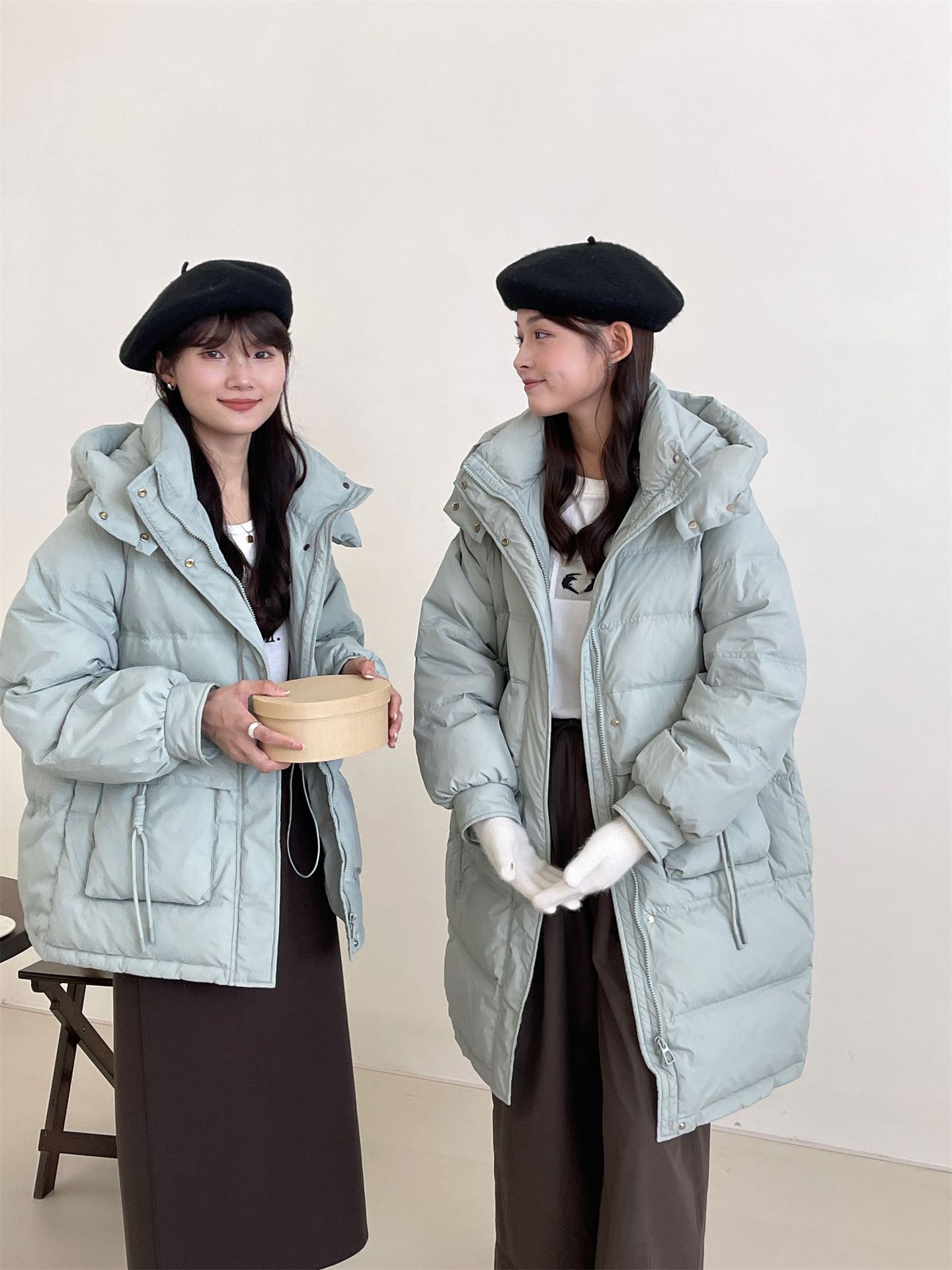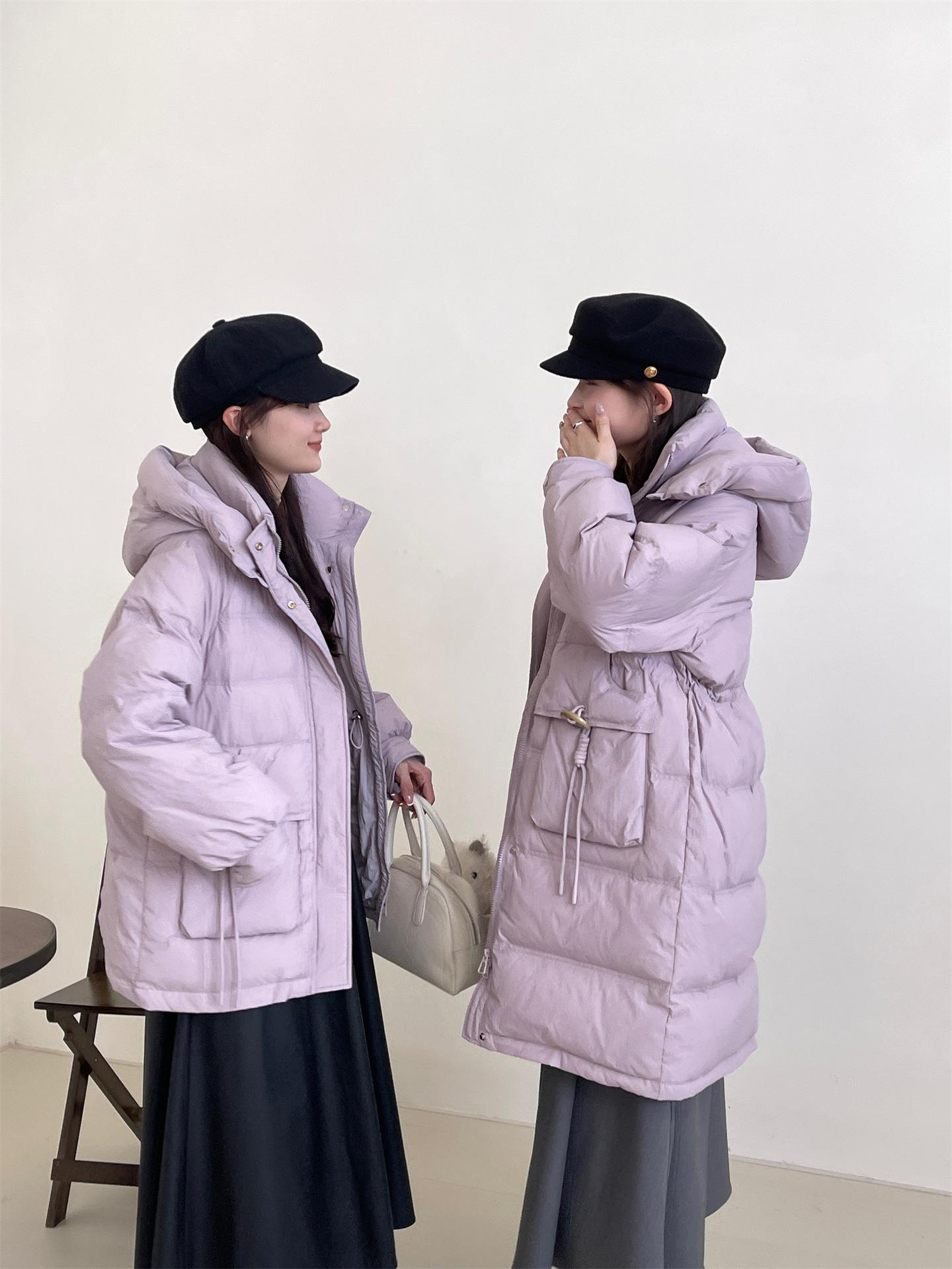 Chamarra corta de plumón con hebilla creciente para mujer Invierno Nuevo Estudiante con capucha Engrosada Cintura Adelgazante Look Plumón de pato blanco Chaqueta cálida