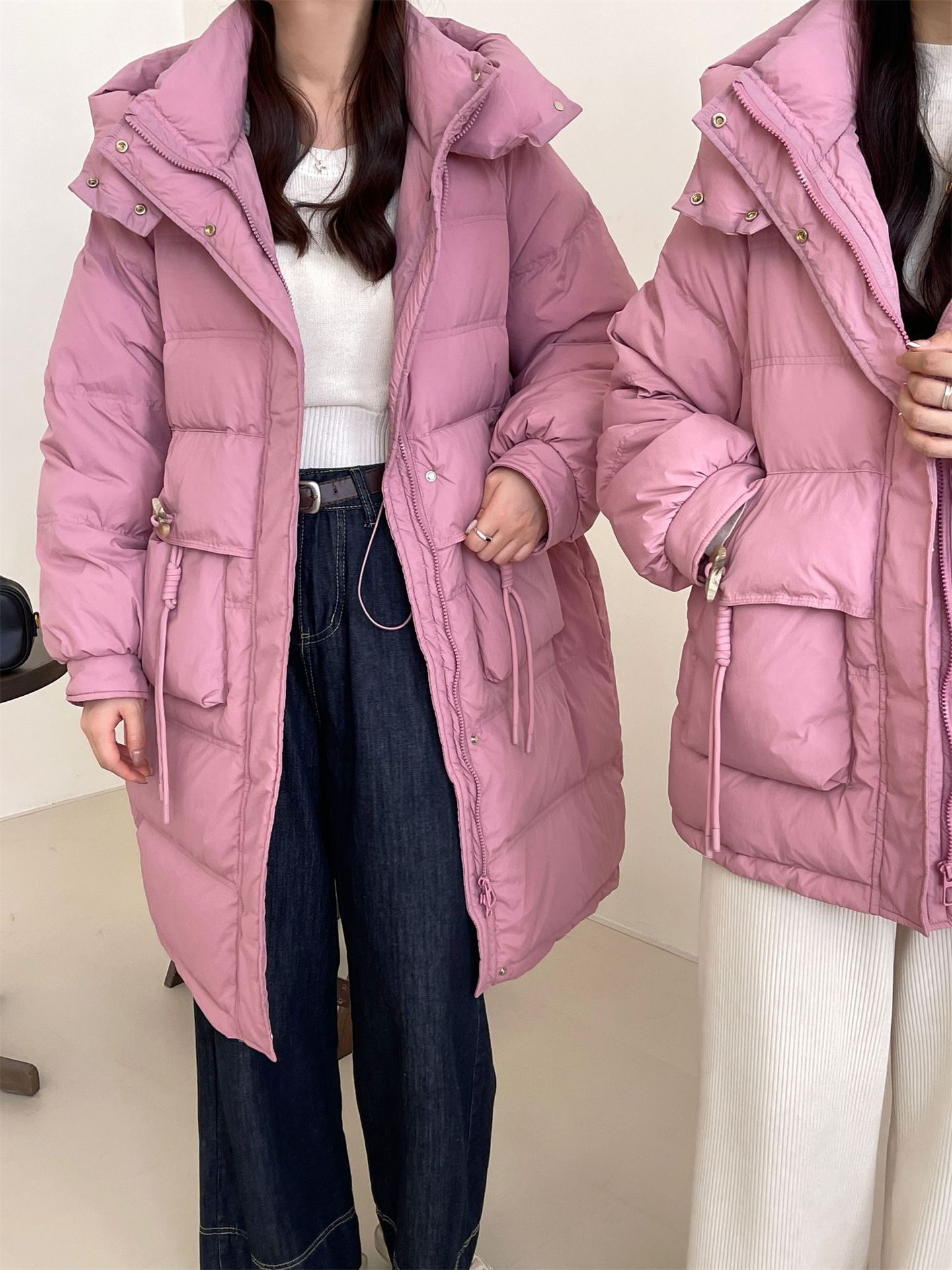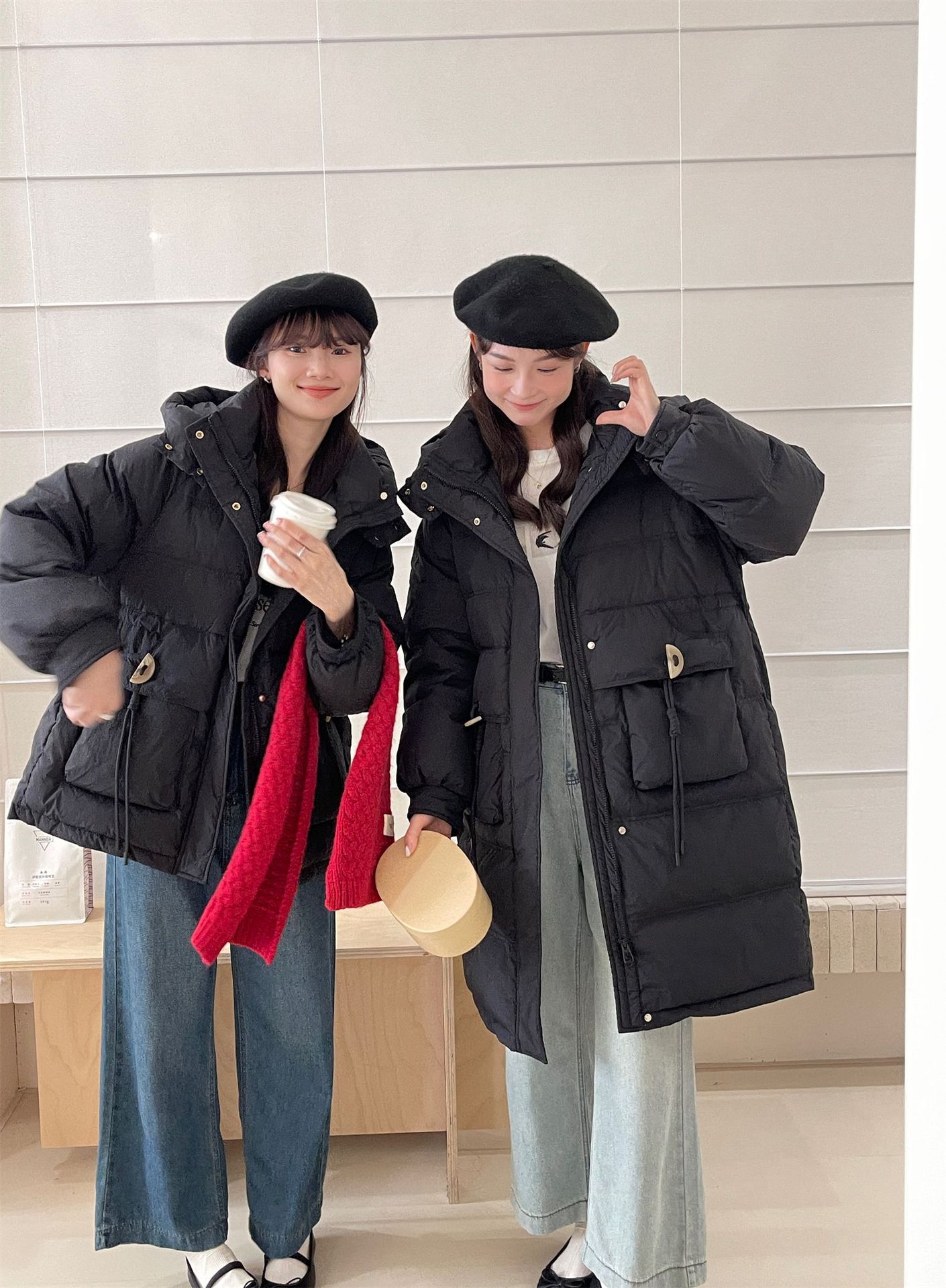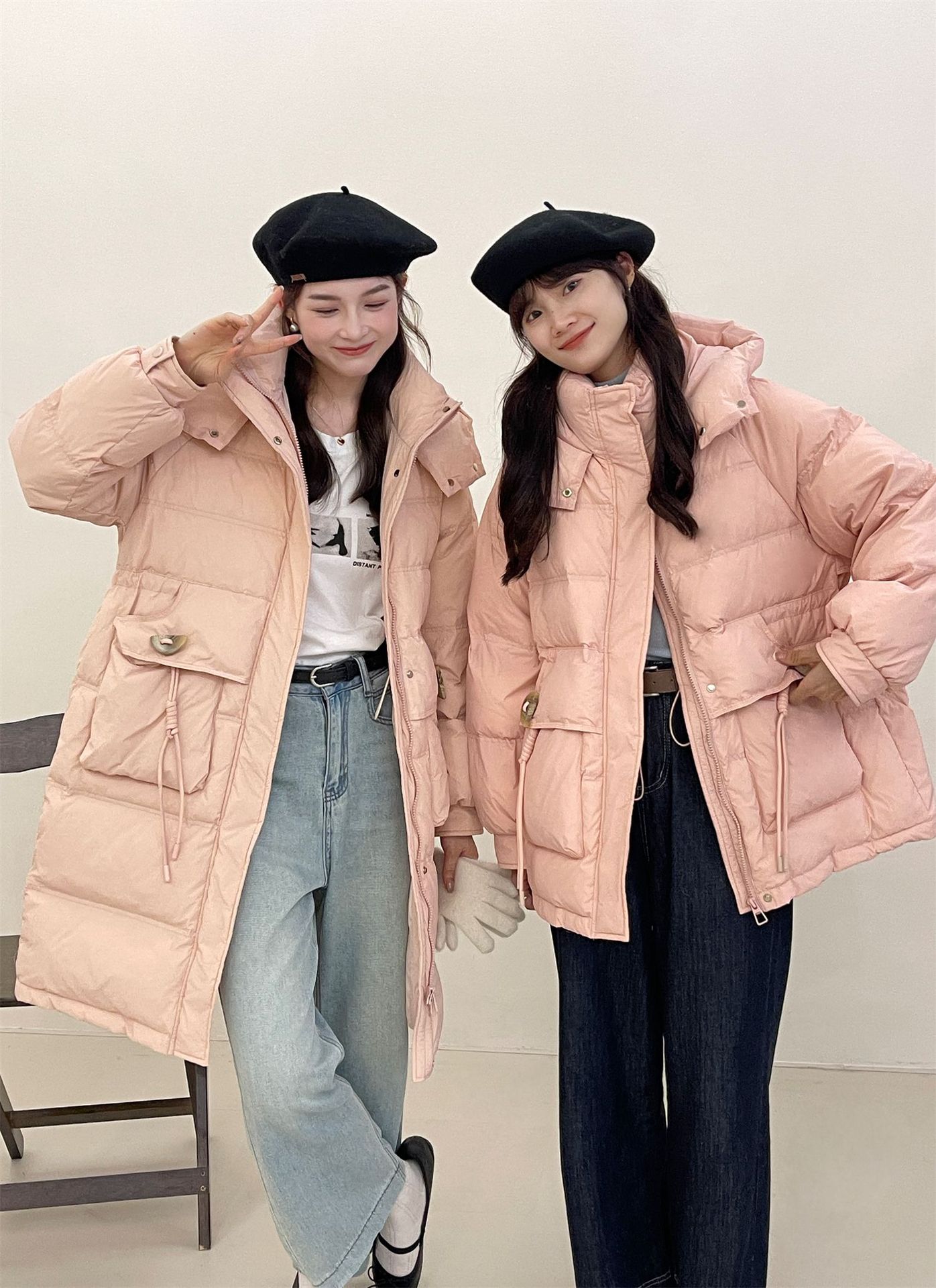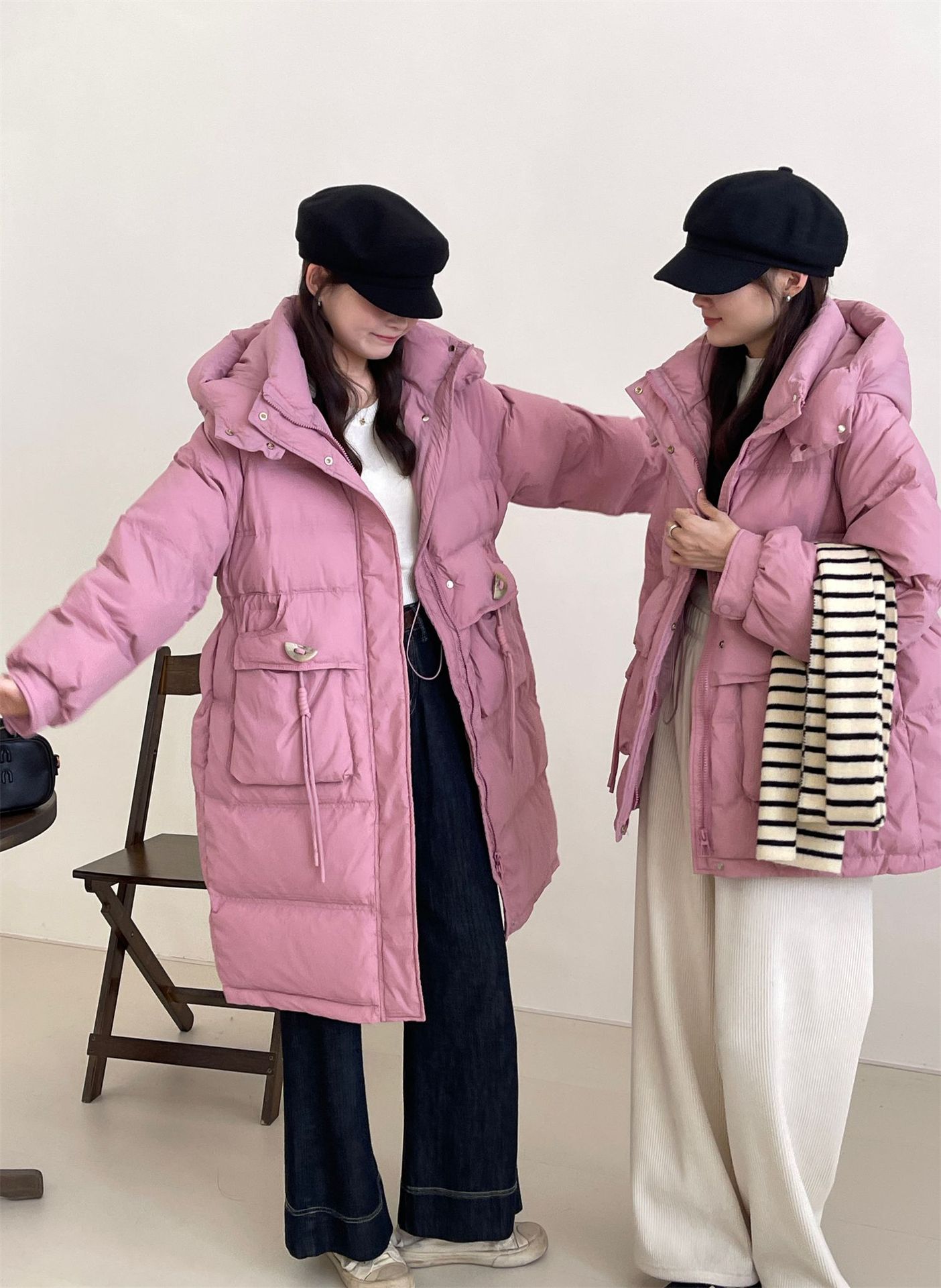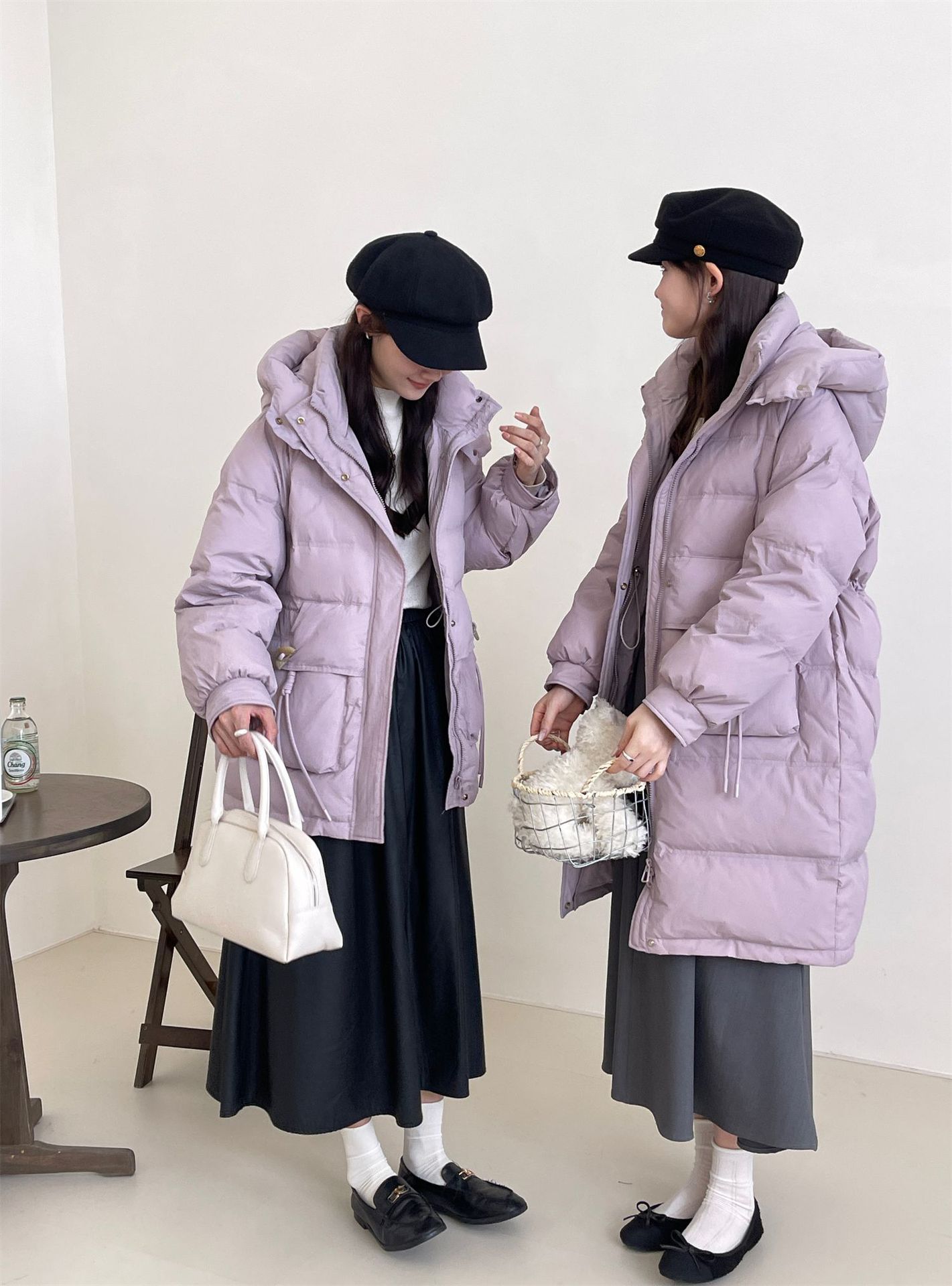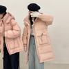 Chamarra corta de plumón con hebilla creciente para mujer Invierno Nuevo Estudiante con capucha Engrosada Cintura Adelgazante Look Plumón de pato blanco Chaqueta cálida