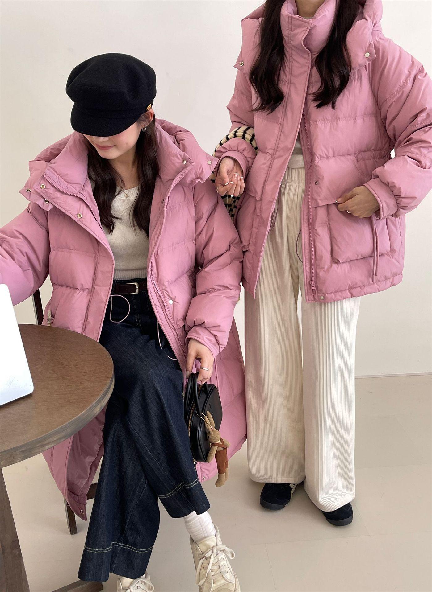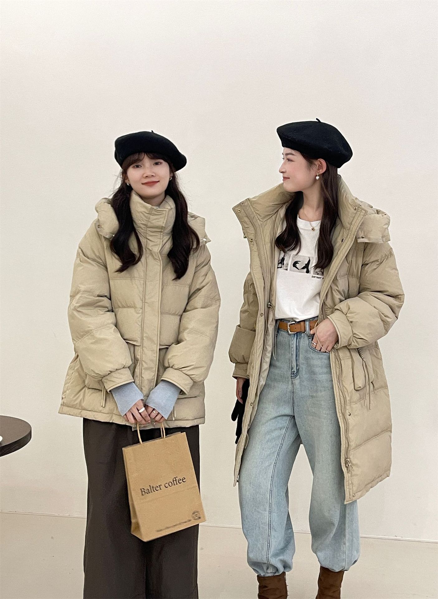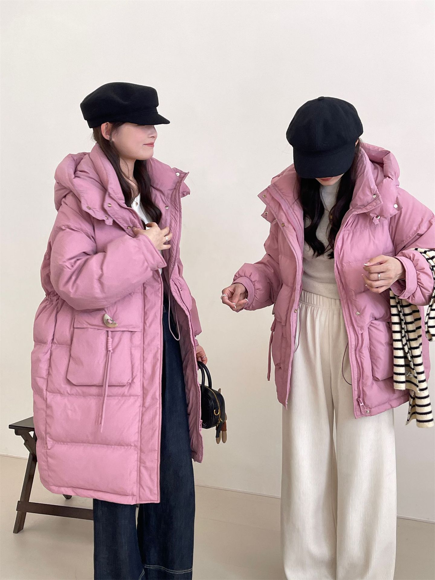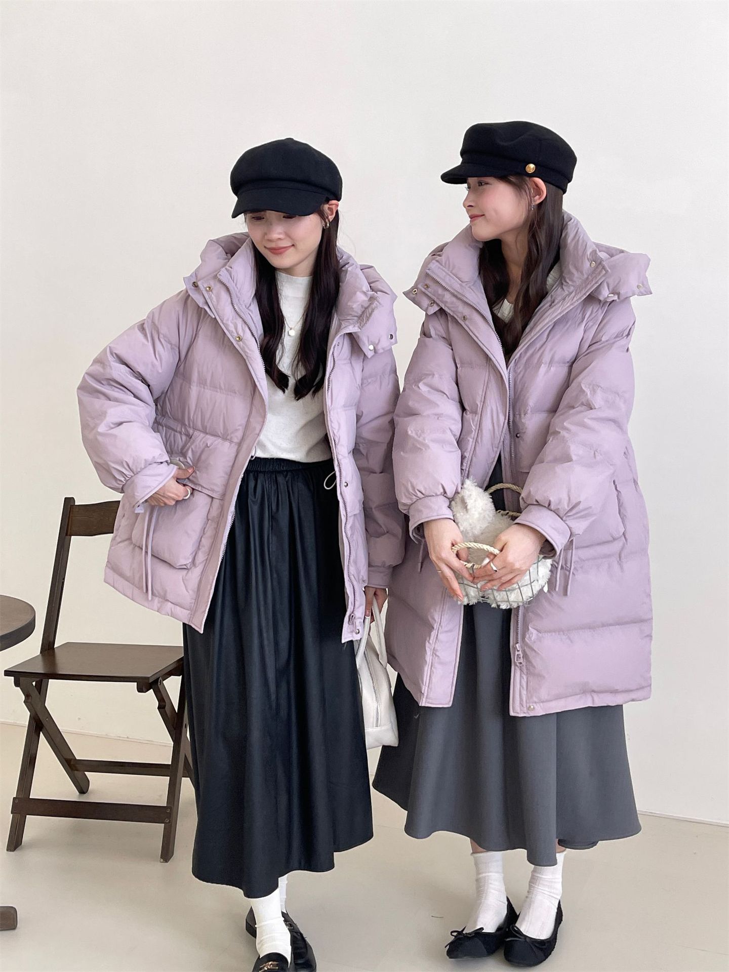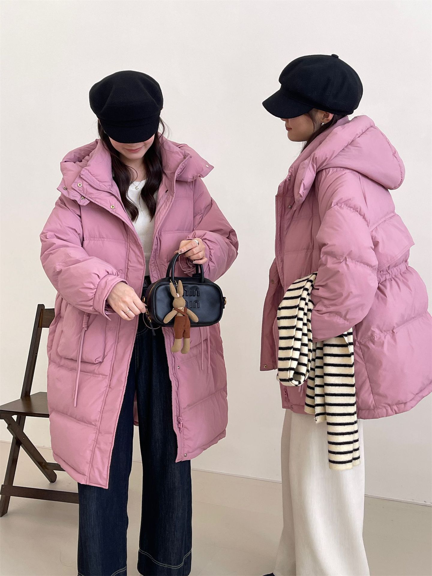 Chamarra corta de plumón con hebilla creciente para mujer Invierno Nuevo Estudiante con capucha Engrosada Cintura Adelgazante Look Plumón de pato blanco Chaqueta cálida