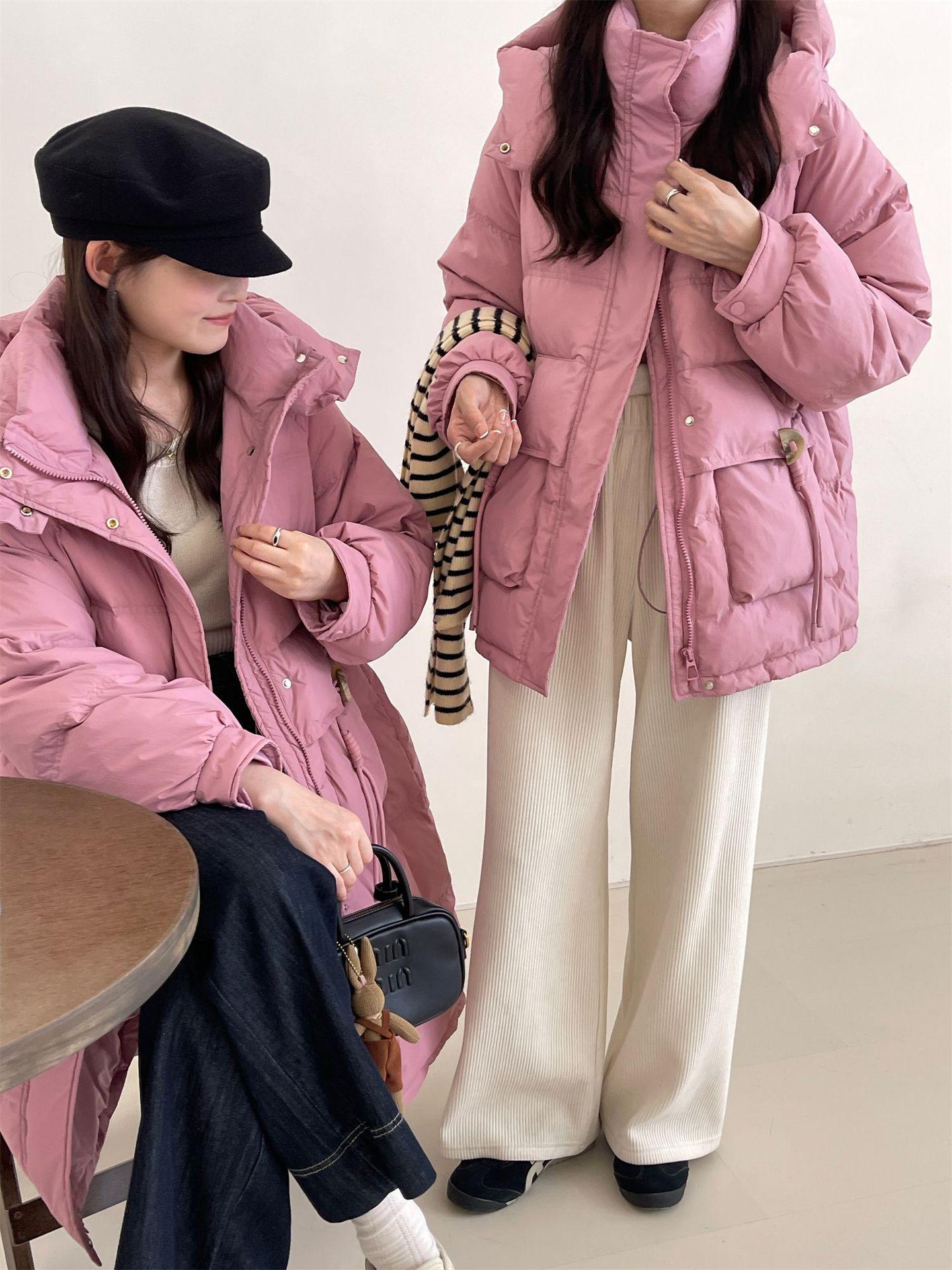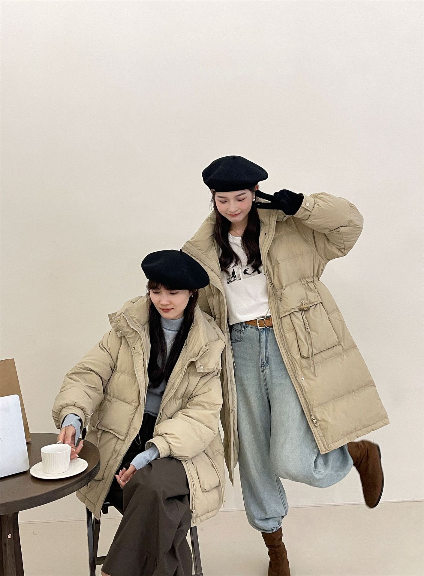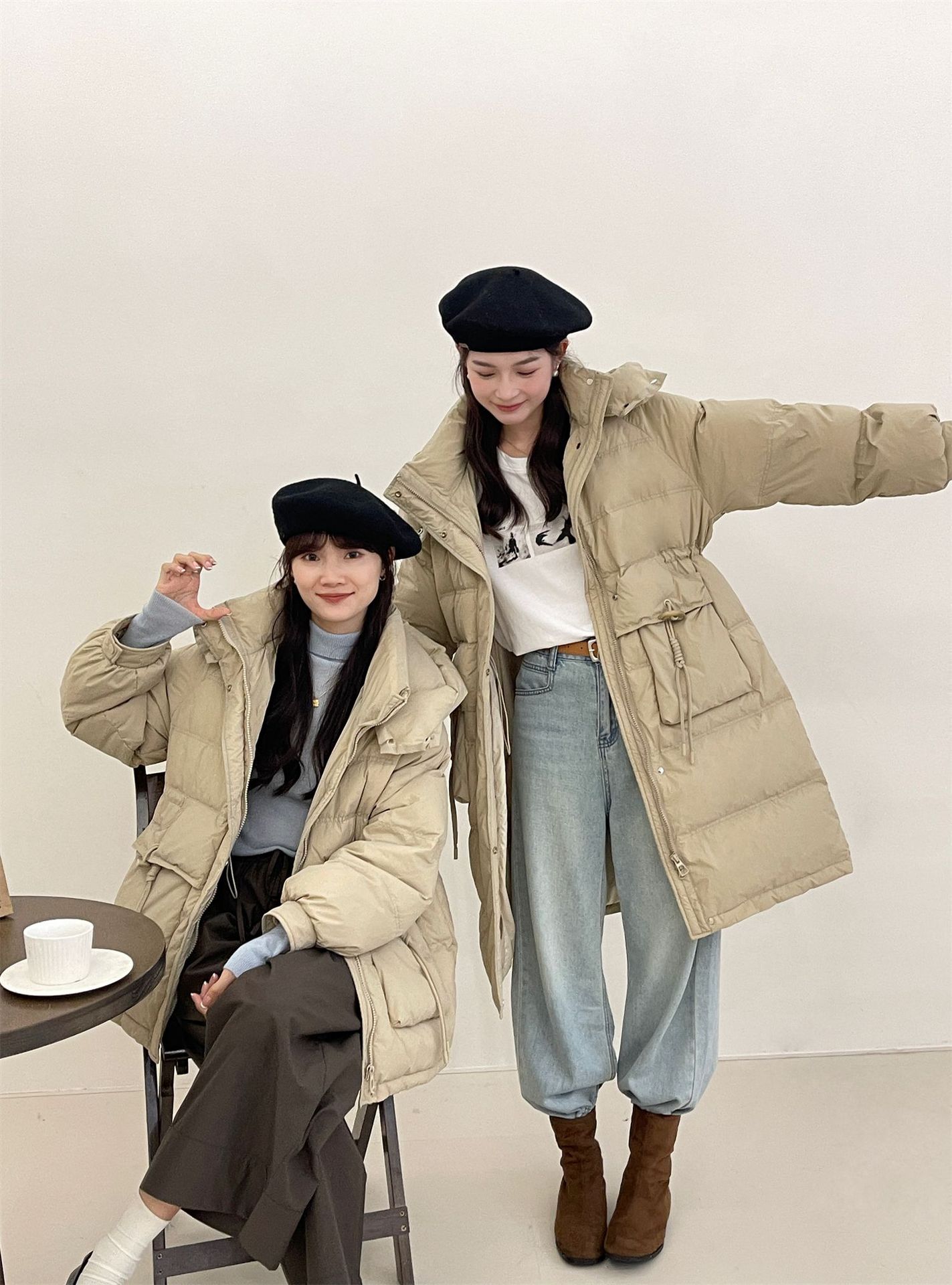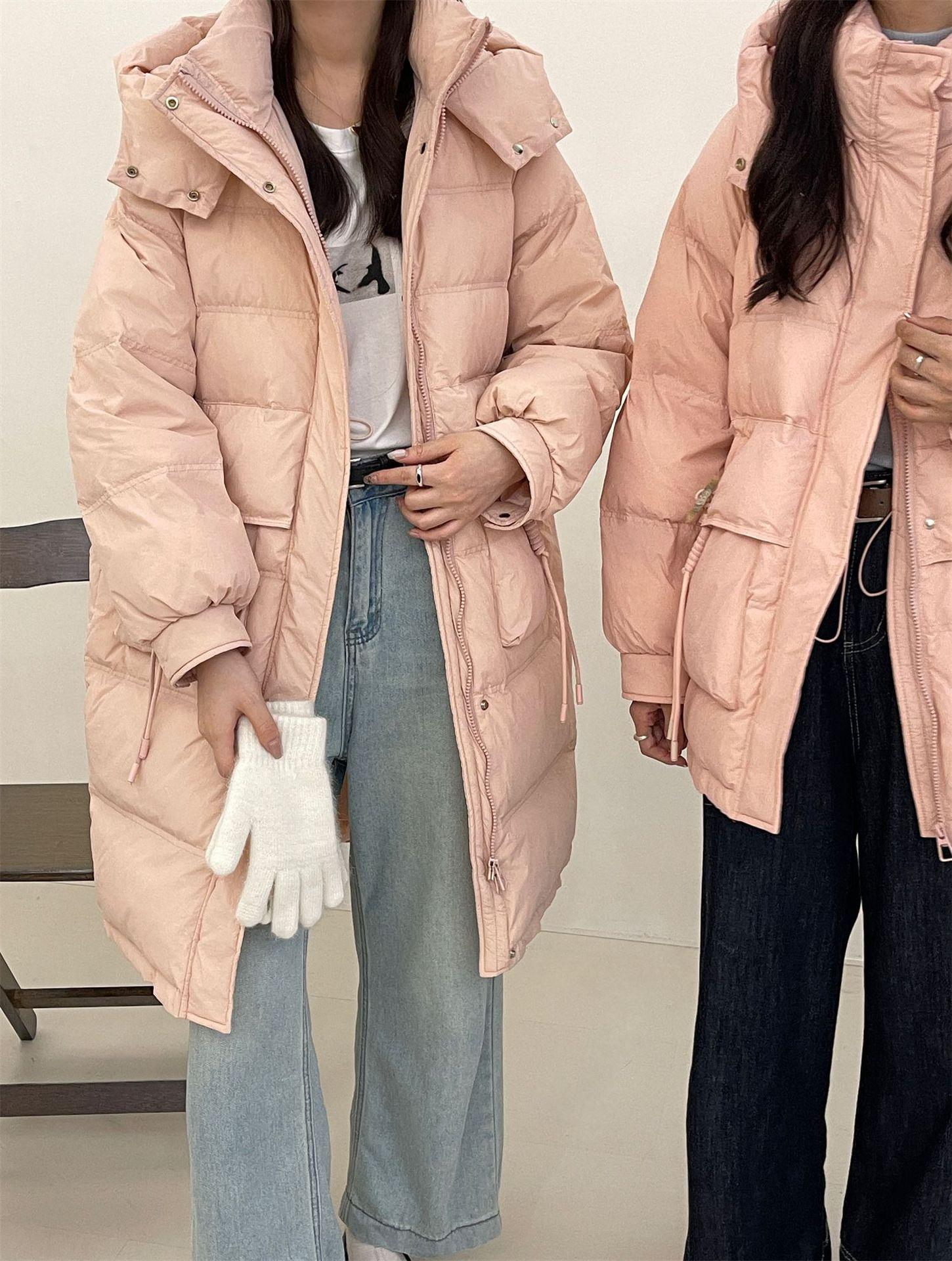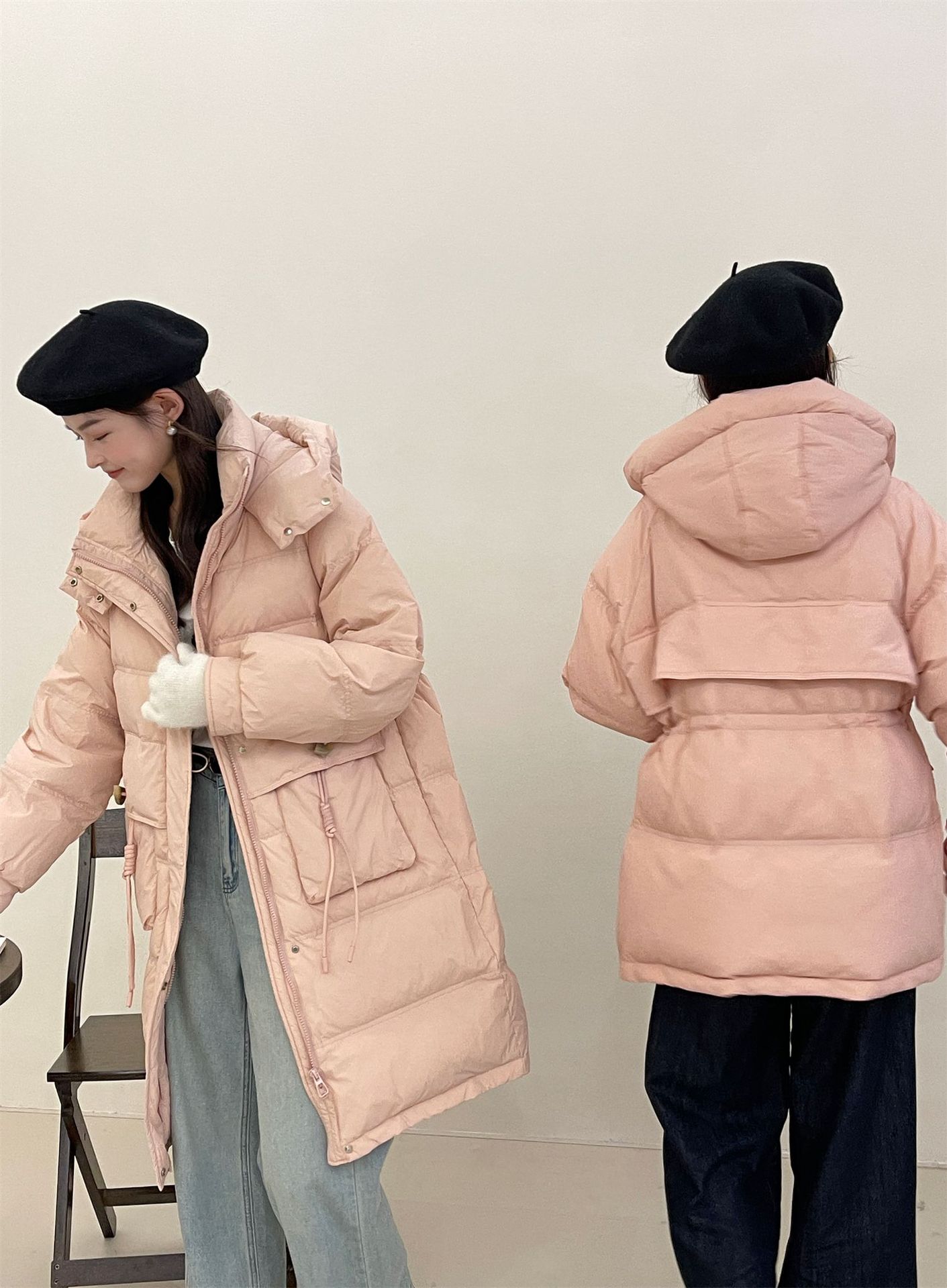 Chamarra corta de plumón con hebilla creciente para mujer Invierno Nuevo Estudiante con capucha Engrosada Cintura Adelgazante Look Plumón de pato blanco Chaqueta cálida